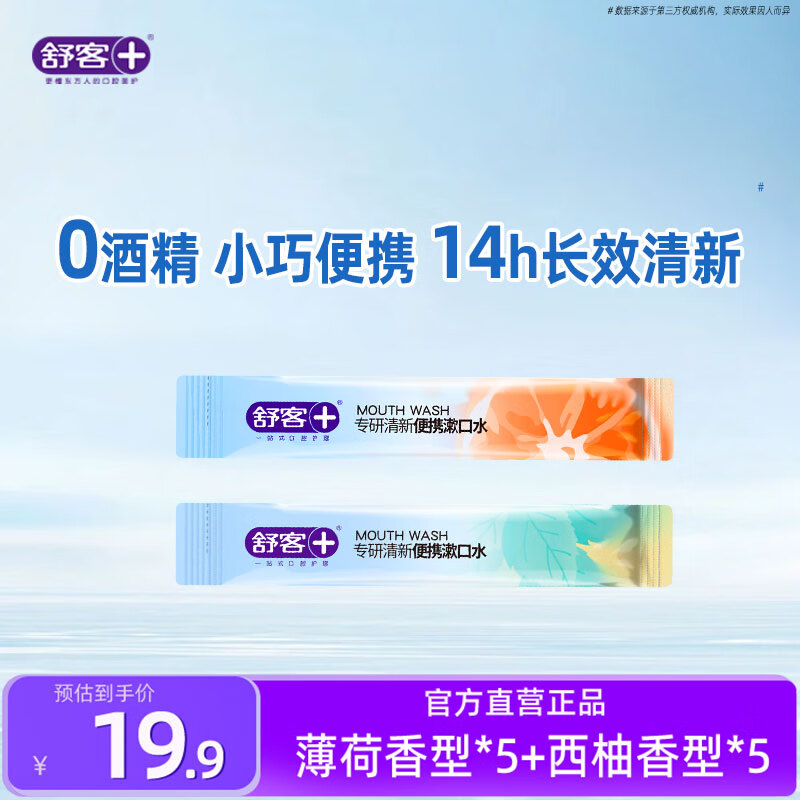 舒客漱口水便捷装一次性小包装清新口气抑菌除口臭约会持久留香无酒精 【尝鲜装】西柚+薄荷12ml*8条
