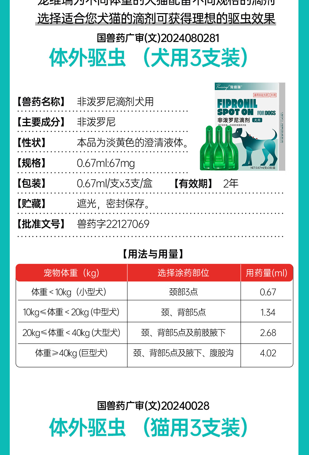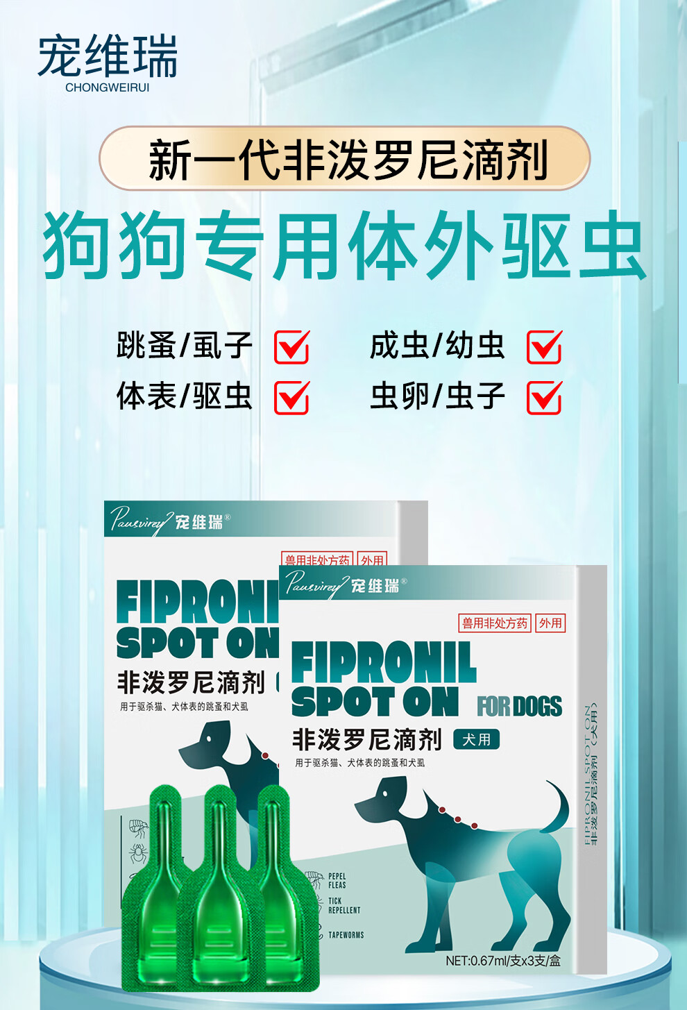 宠维瑞狗狗体外驱虫药除跳蚤虱子蜱虫防虫药宠物犬用打虫药非泼罗尼滴剂 【犬用】丨体外驱虫3支装丨1盒装