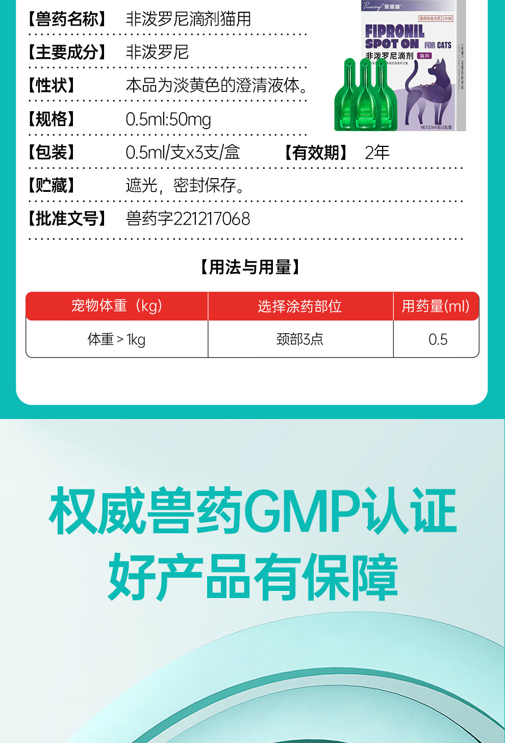 金宇吡虫啉莫昔克丁滴剂猫咪狗狗驱虫药外驱内驱二合一猫猫耳螨驱虫药 小猫用(≤4kg)3支装