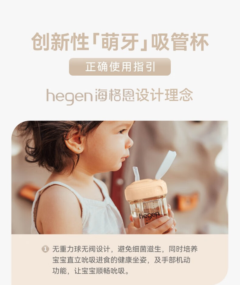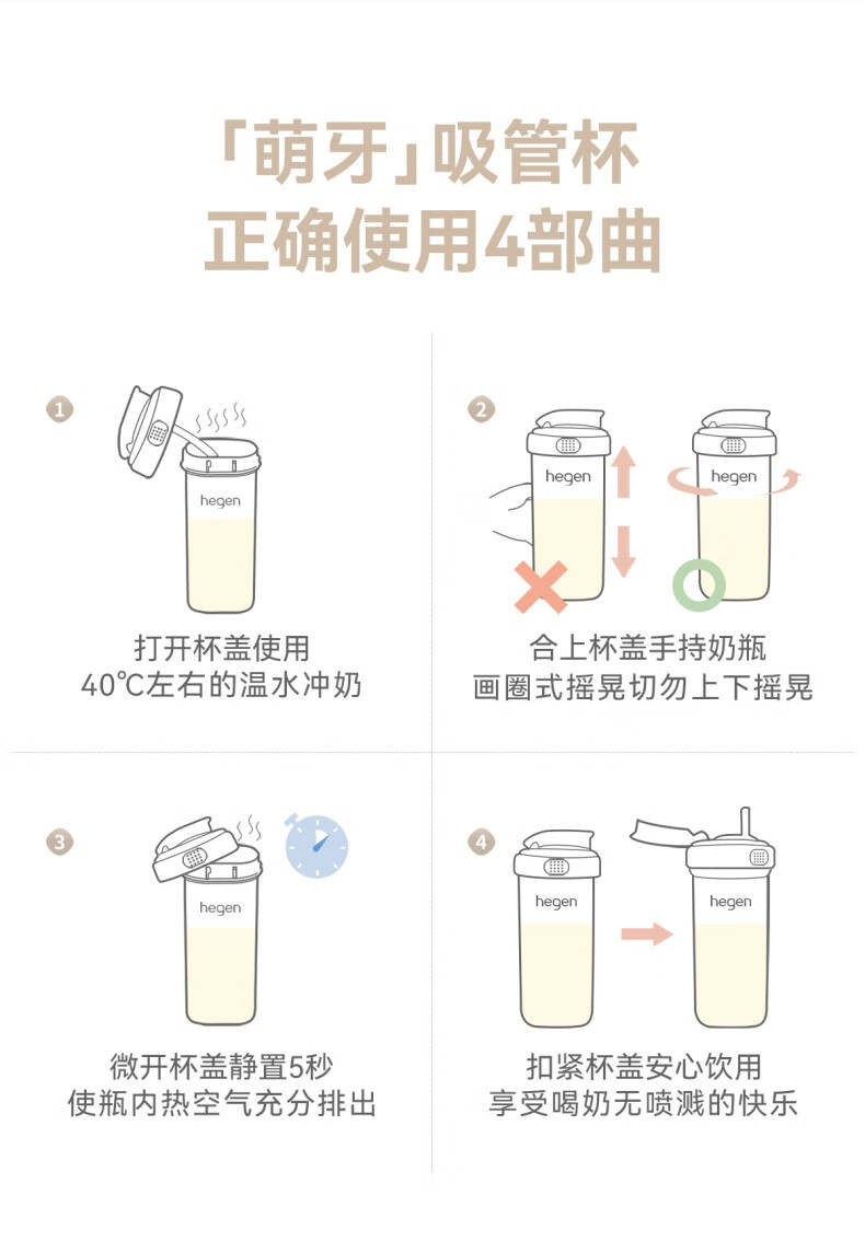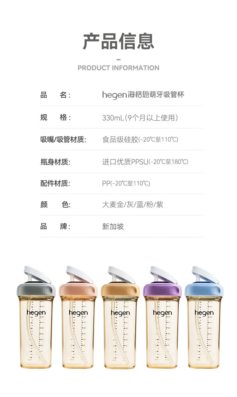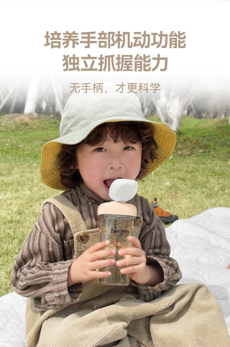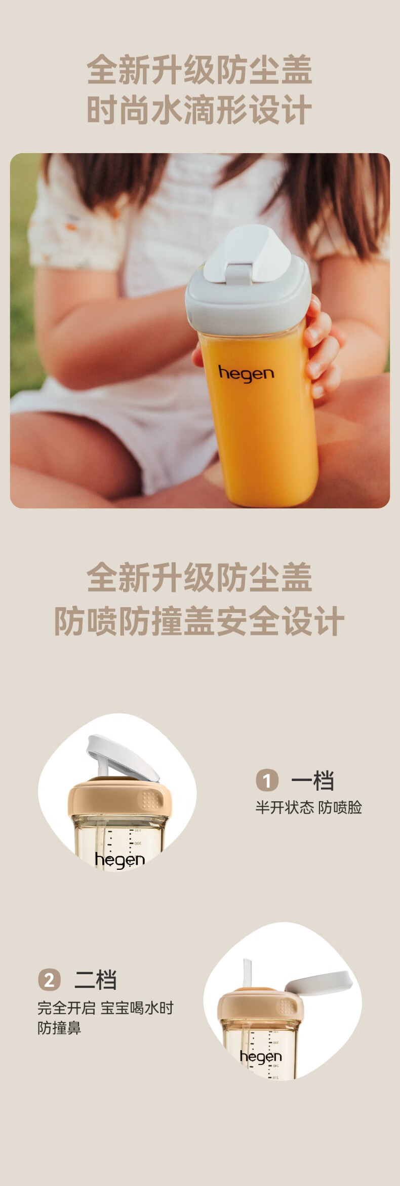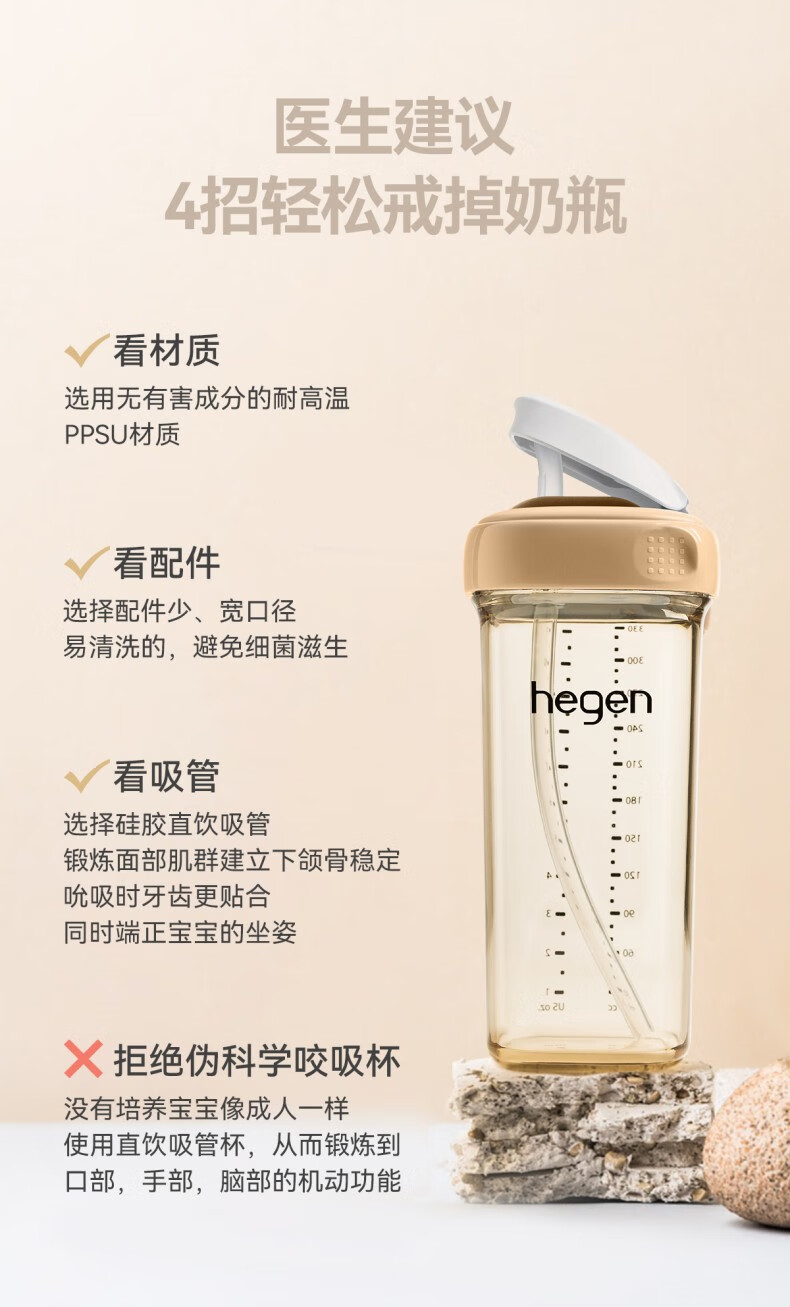 HEGEN海格恩吸管杯1-3岁330ml儿童PPSU多功能学饮杯直饮喝水杯大麦金色