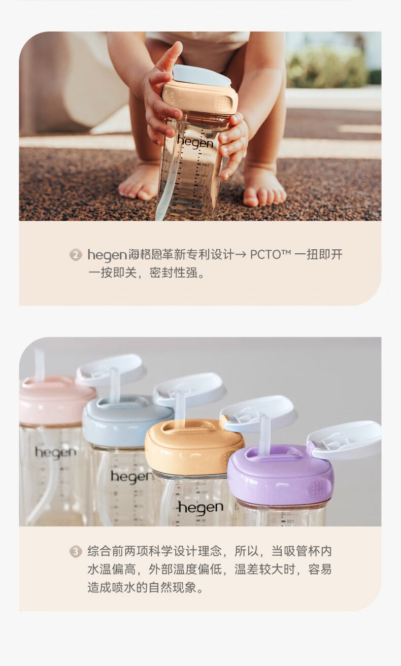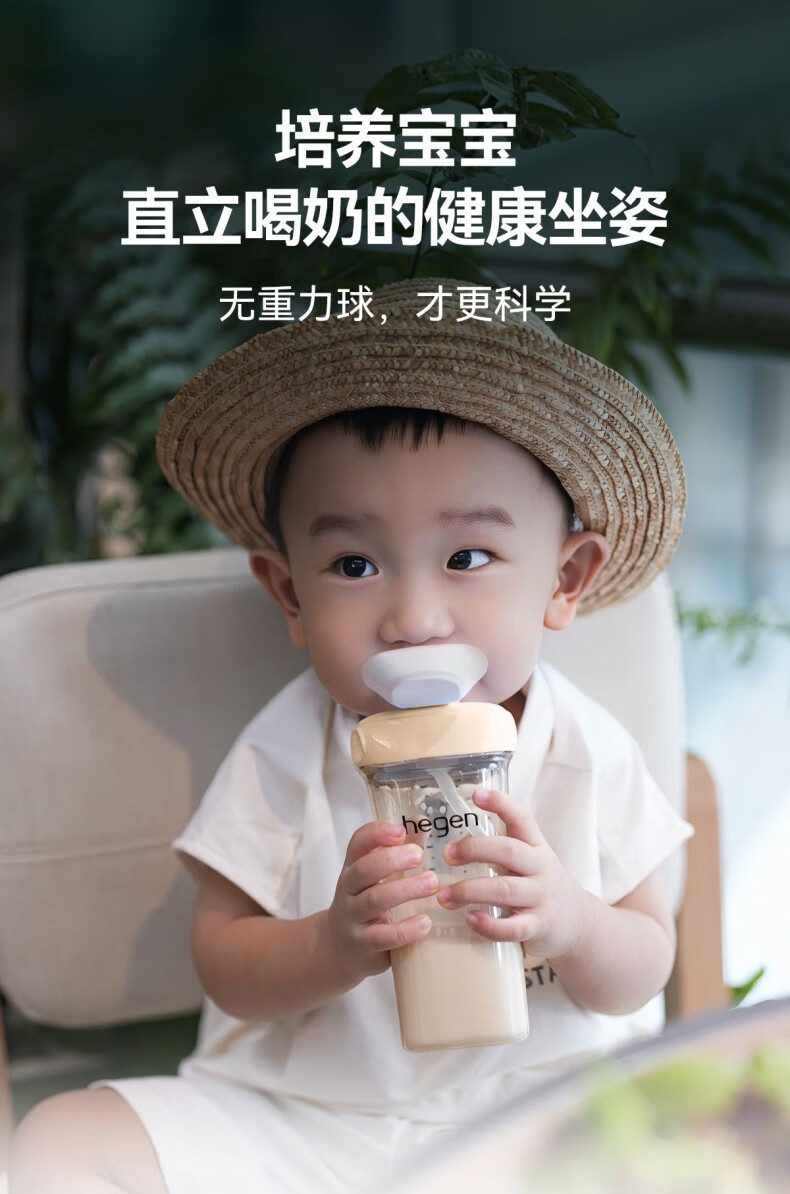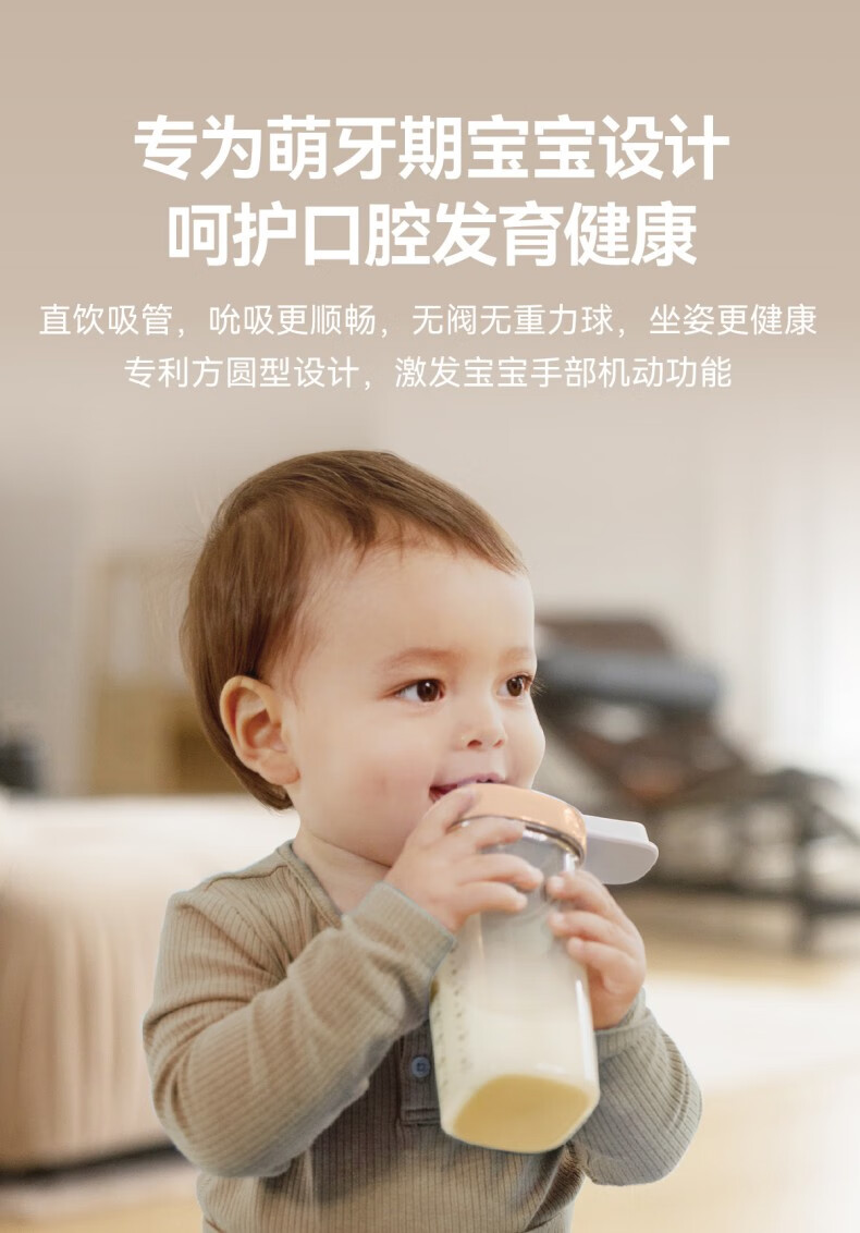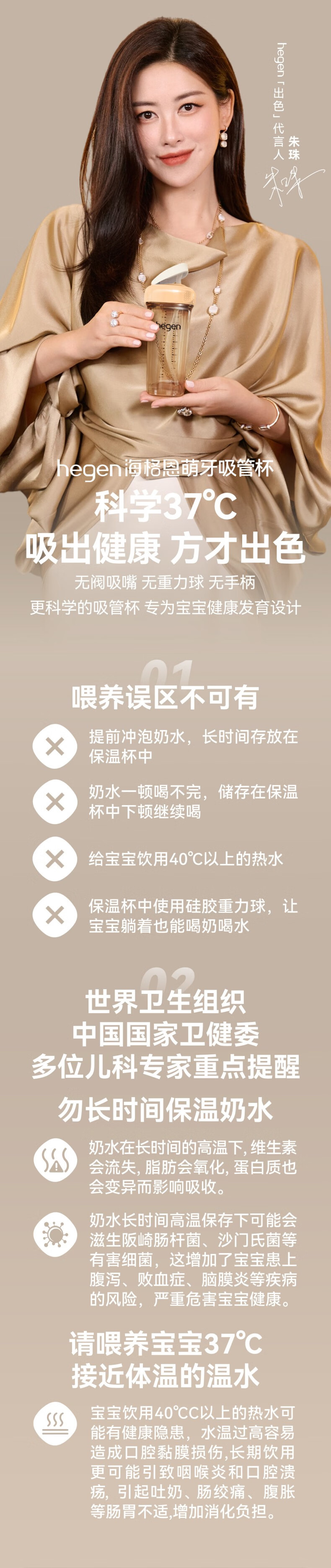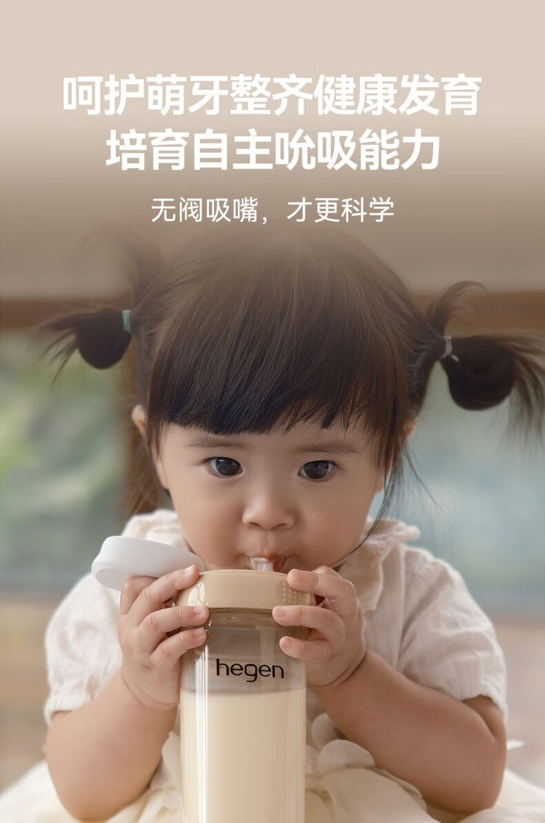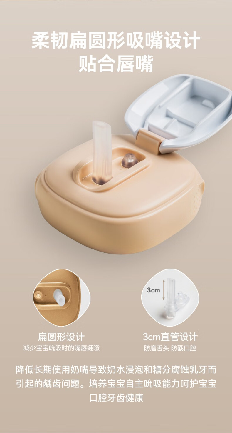 HEGEN海格恩吸管杯1-3岁330ml儿童PPSU多功能学饮杯直饮喝水杯大麦金色