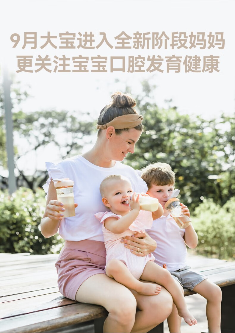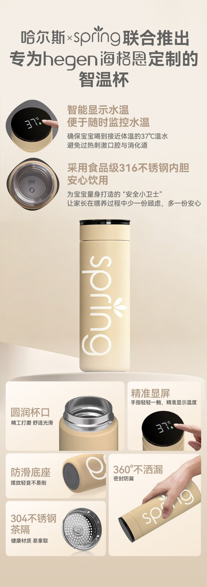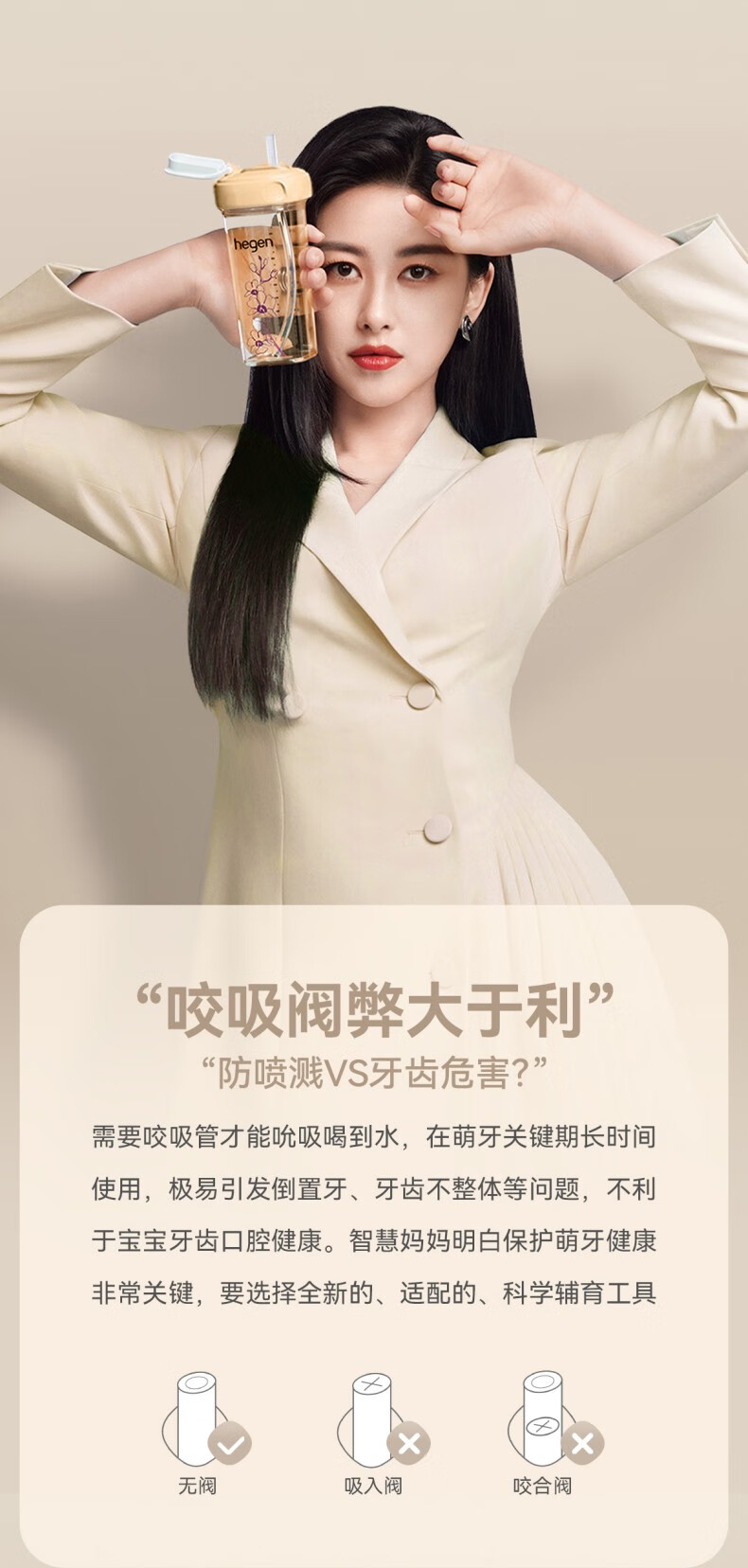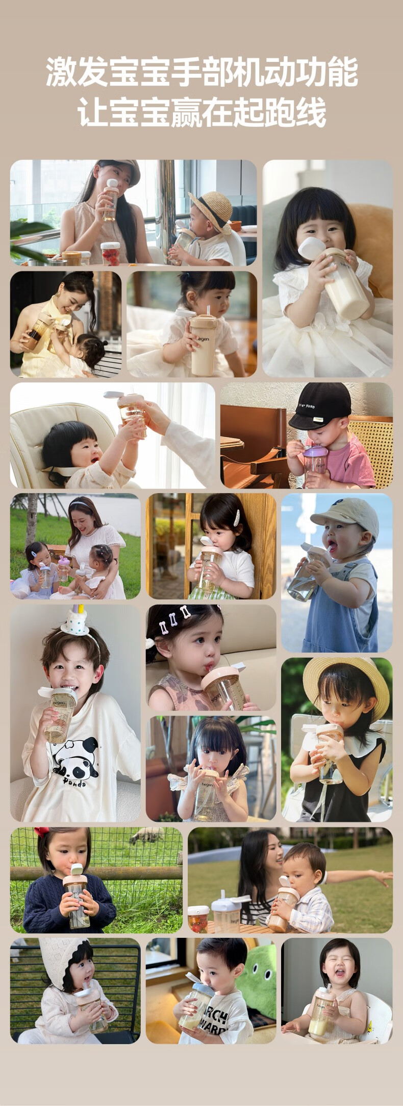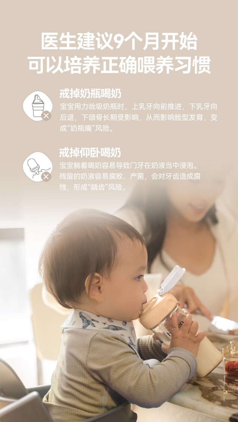 HEGEN海格恩吸管杯1-3岁330ml儿童PPSU多功能学饮杯直饮喝水杯大麦金色