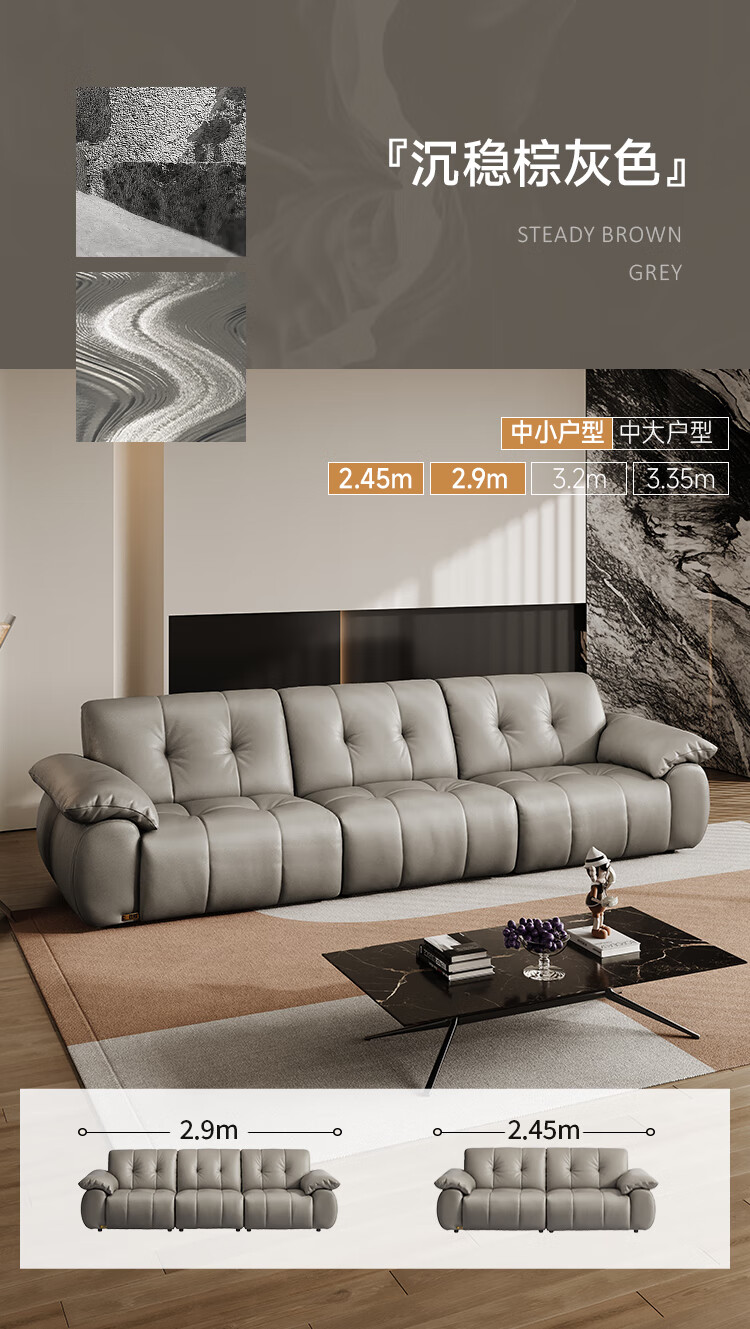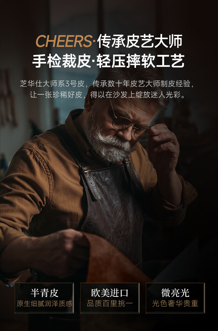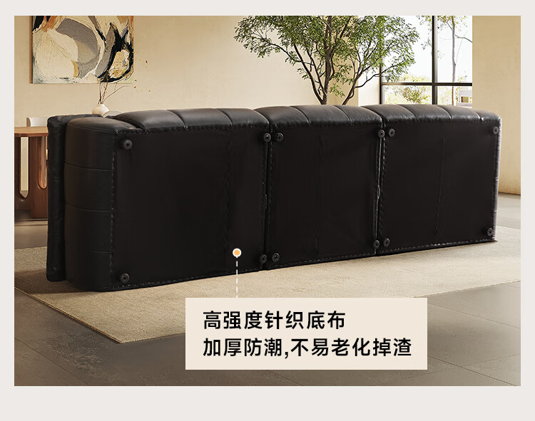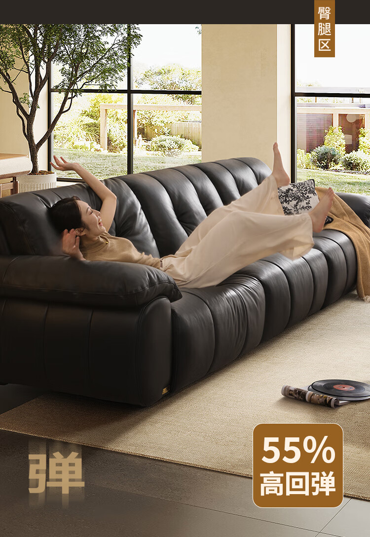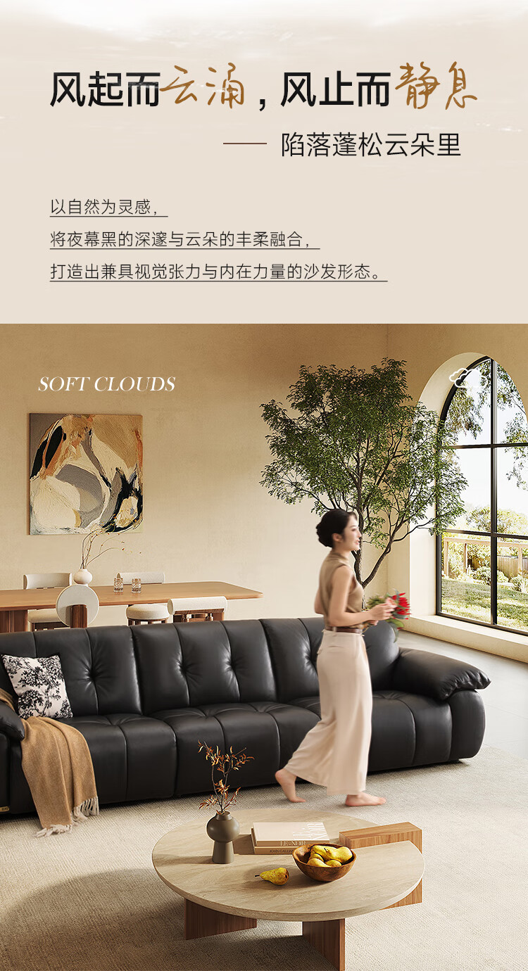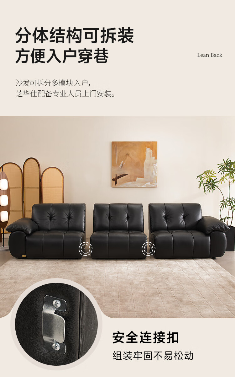 芝华仕大黑牛真皮沙发复古云朵客厅2025新款半青皮沙发3176B 玛瑙黑-2.45M-进口厚实半青皮 延期发货(详询客服)