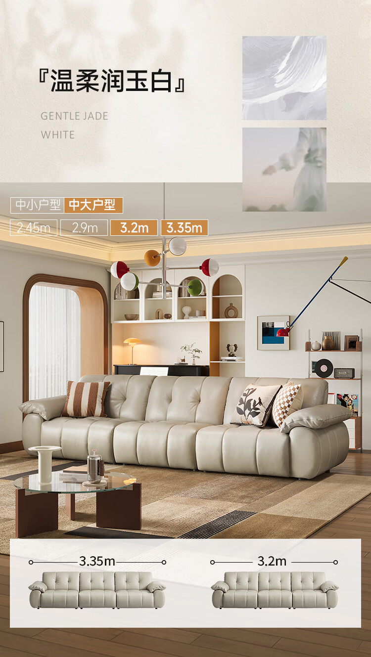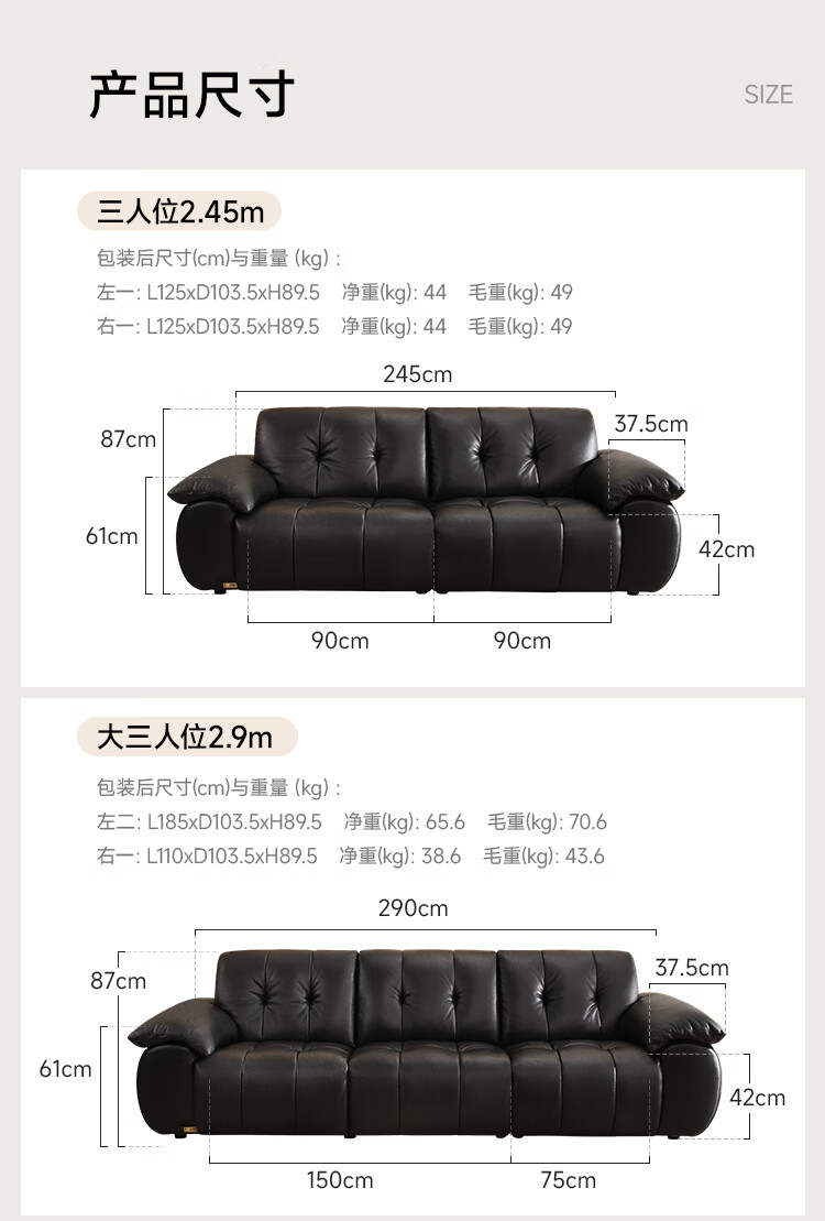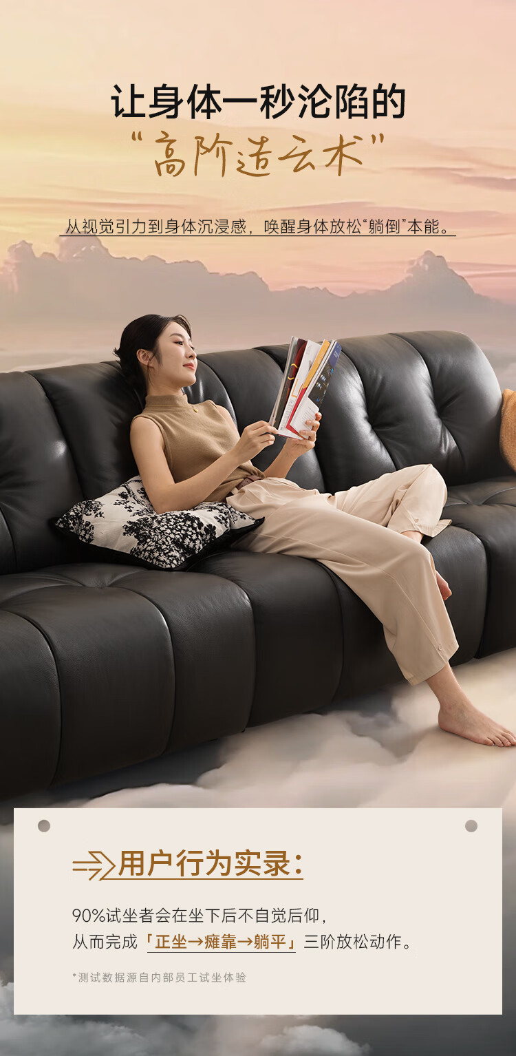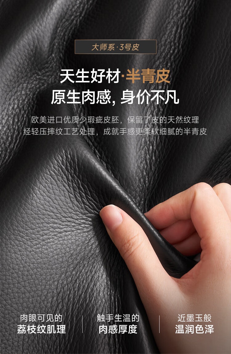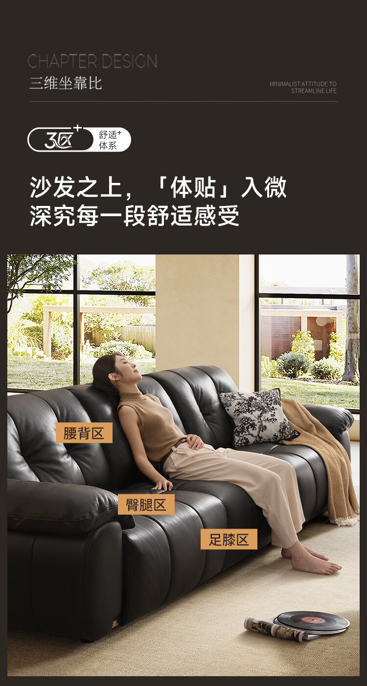 芝华仕大黑牛真皮沙发复古云朵客厅2025新款半青皮沙发3176B 玛瑙黑-2.45M-进口厚实半青皮 延期发货(详询客服)