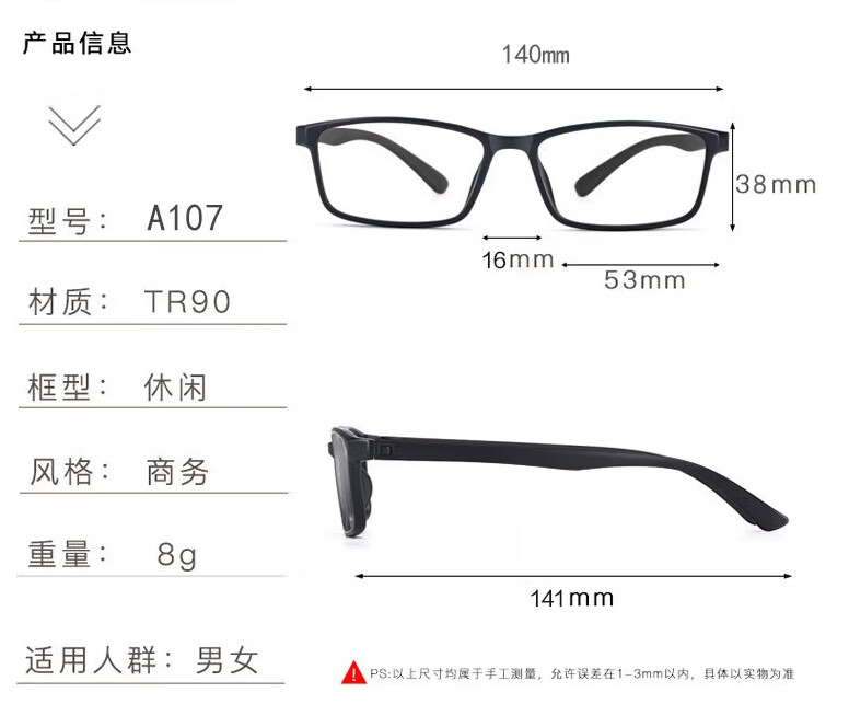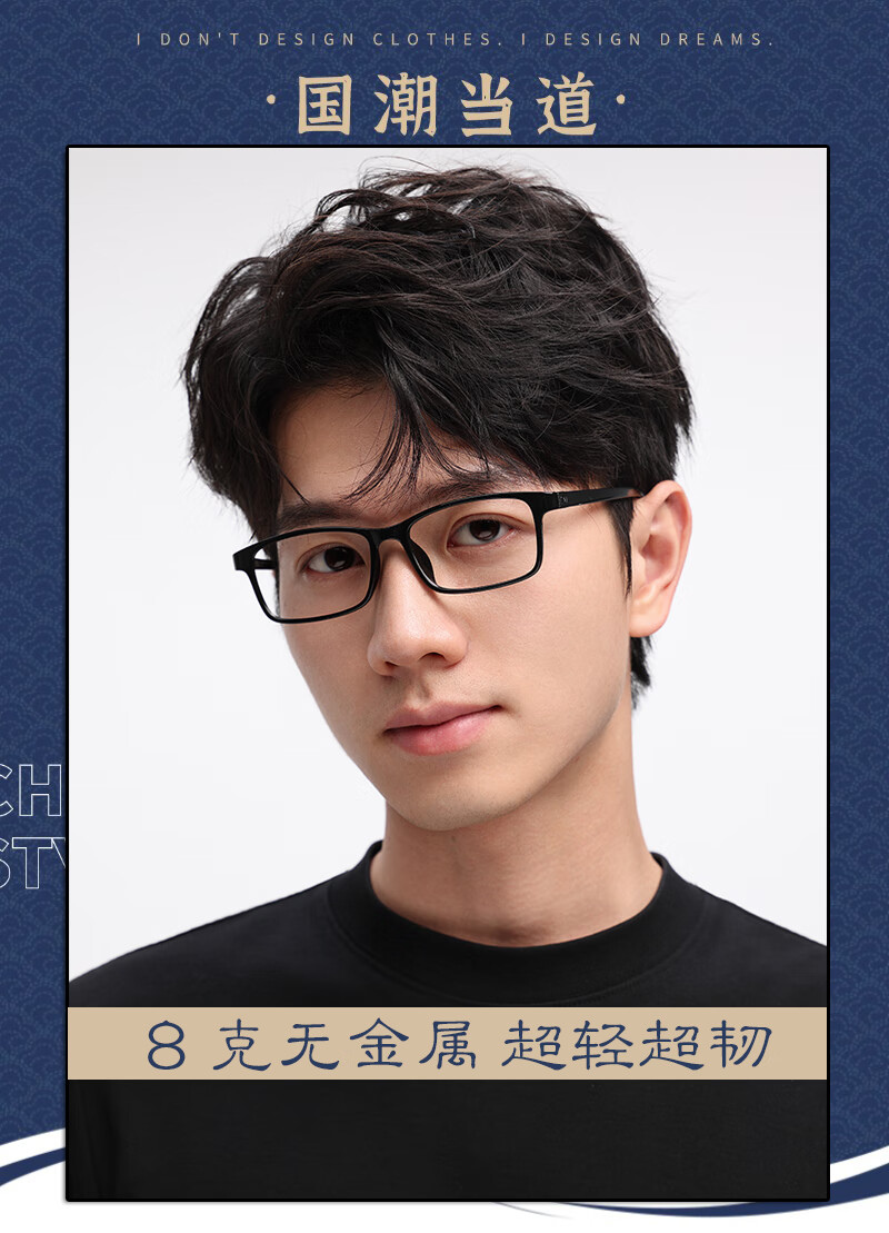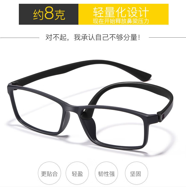 陌朋 近视眼镜框男女 tr90超轻运动防滑光学防蓝光电脑眼镜8克方镜框 质感砂黑 防蓝光1.56非球面0-400丨免费配