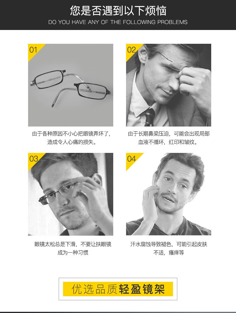米奇啵啵折叠老花镜 S97-110 便携老花镜 高清防蓝光男女款PC镜架 C4050金属折叠款-银色 150度
