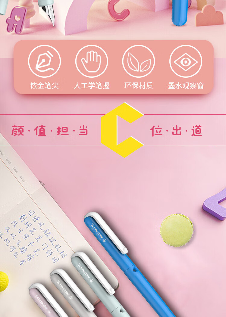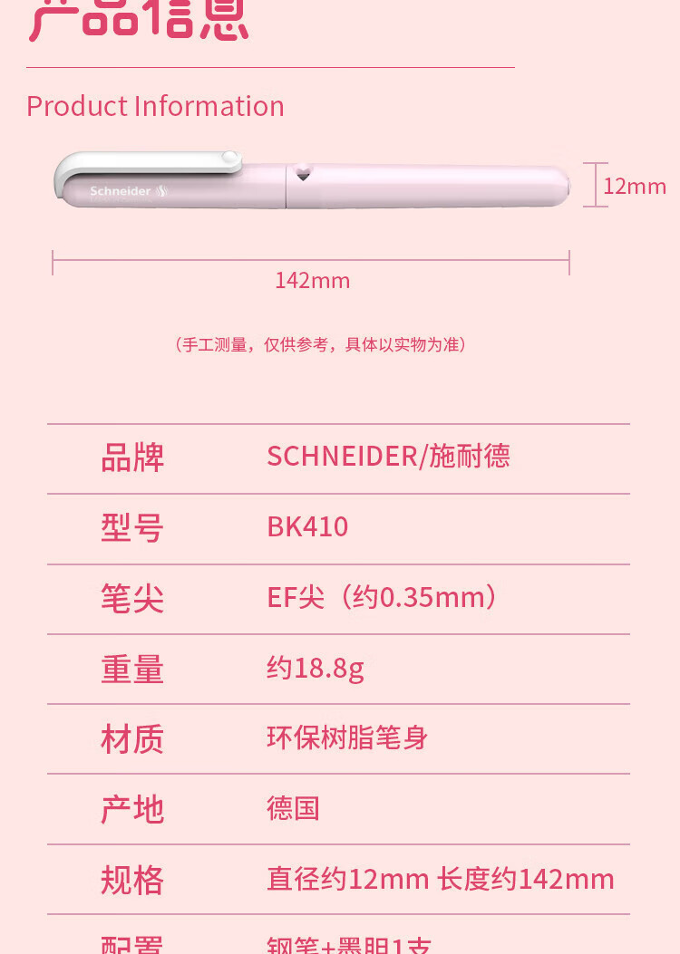 施耐德(Schneider) 德国进口三四年级中小学生用日常书写考试用成人书法练字办公钢笔EF尖 BK410(带笔盒)0.38MM 浅黄单支装(带笔盒)