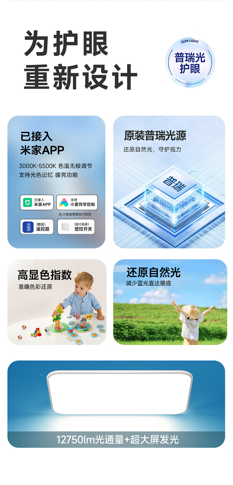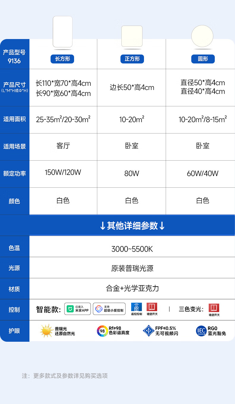 三雄极光led吸顶灯全光谱护眼客厅灯餐厅灯防蓝光书房灯具 128W 30㎡内适用 6800lm P3智控·接入米家app