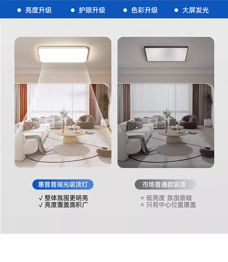 惠普吸顶灯超薄客厅吸顶灯现代简约大厅主灯餐厅卧室书房全屋灯具套餐 原装普瑞-大客厅灯150W-调光