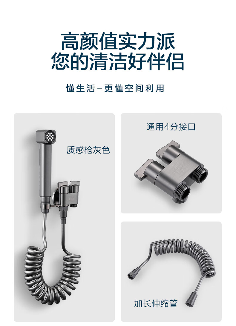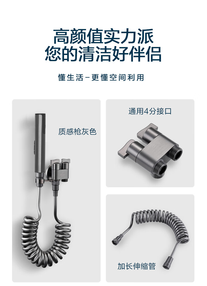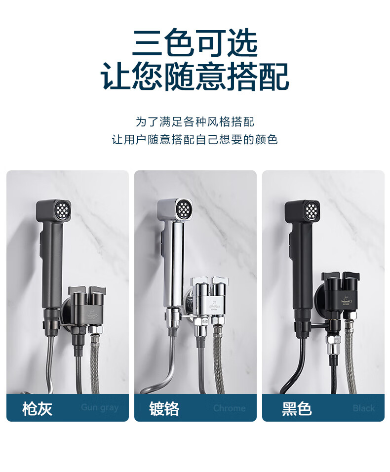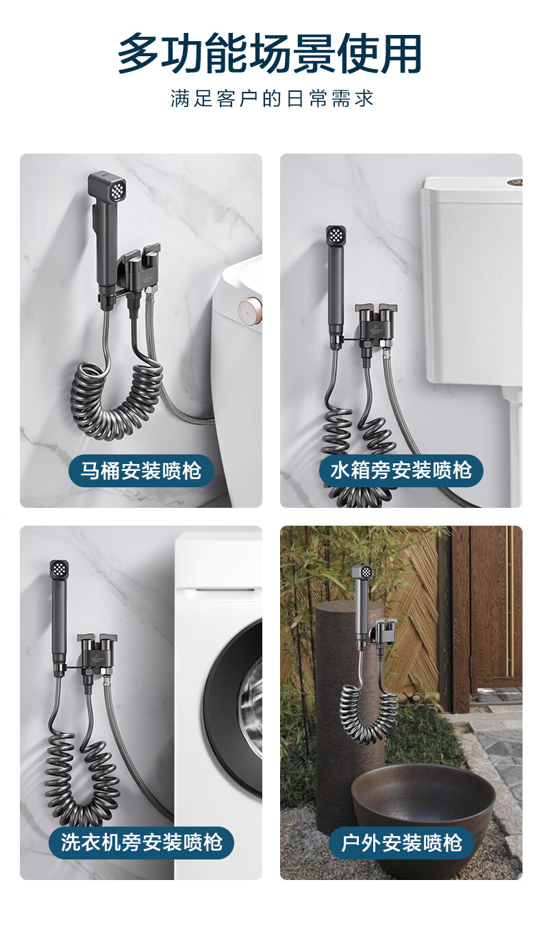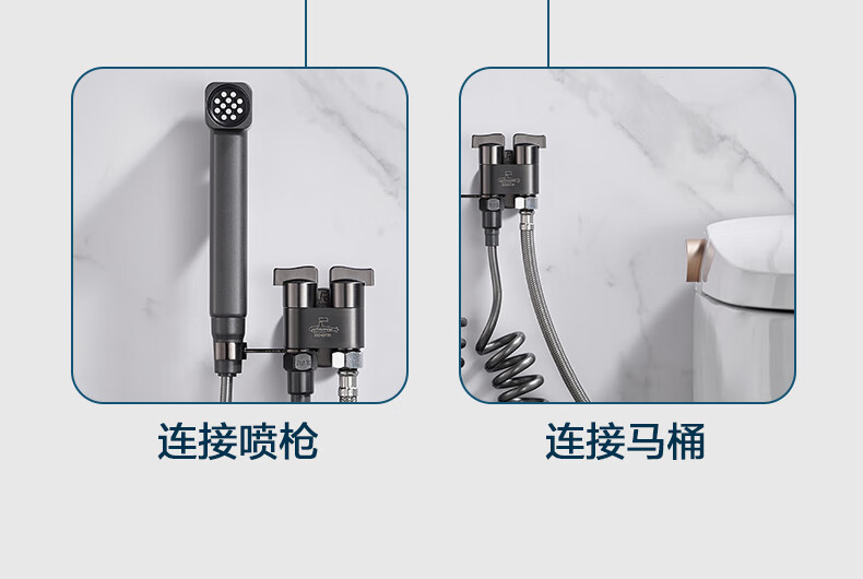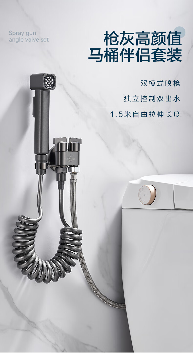 潜水艇(Submarine)三角阀套装一进二出角阀马桶冲水喷枪增压 喷水喷枪水龙头套餐京 【ABS枪灰】一进二出套装(通用接头)
