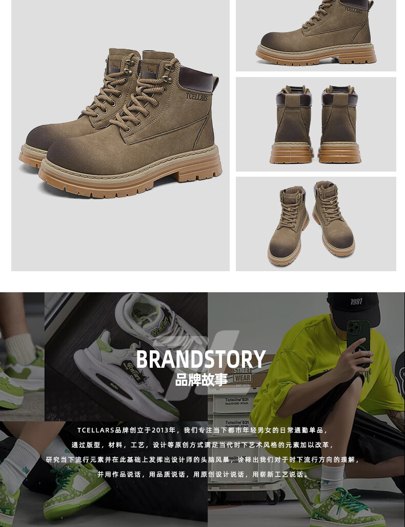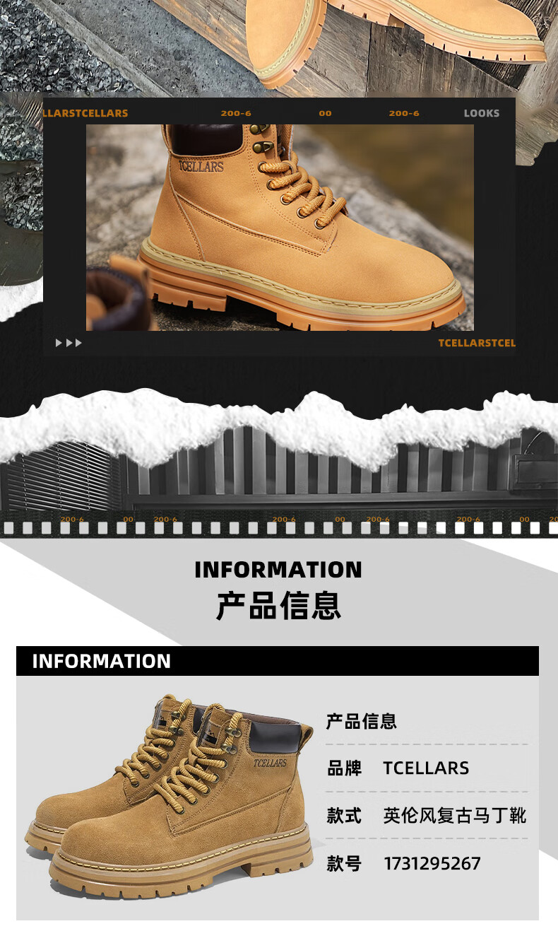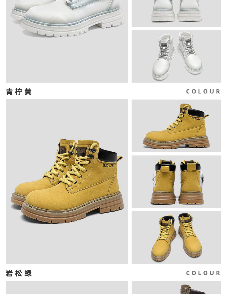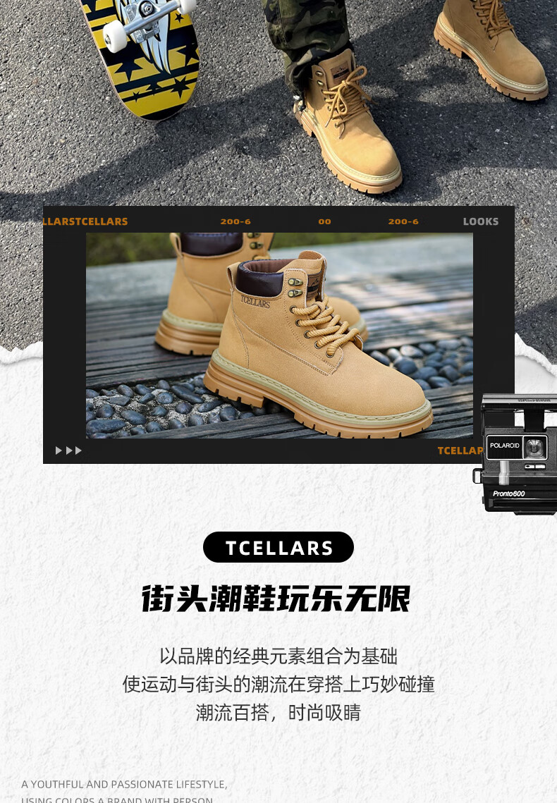 Tcellars马丁靴男鞋秋冬新款英伦复古风大黄靴厚底防滑户外工装靴子男士 枫叶黄 43