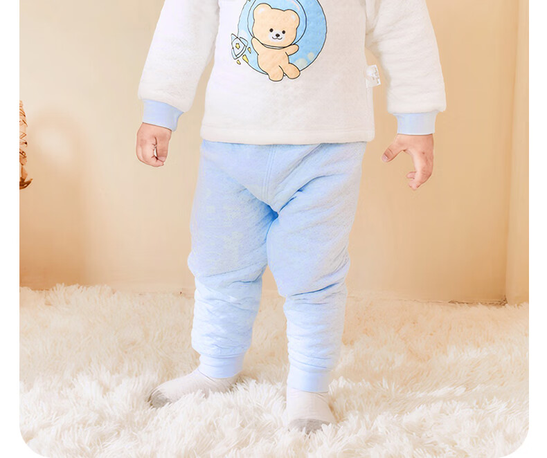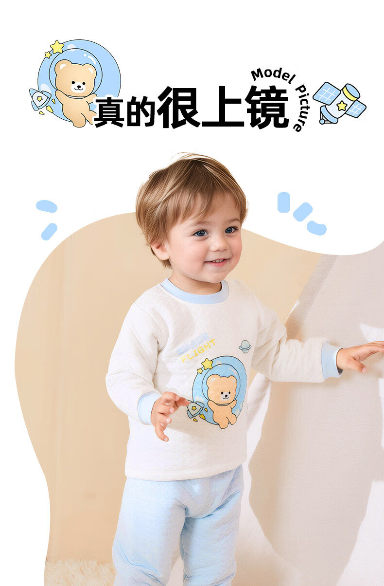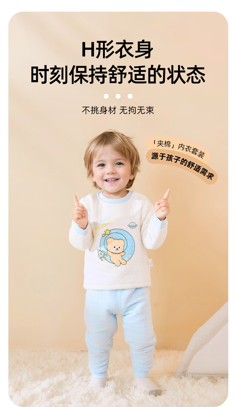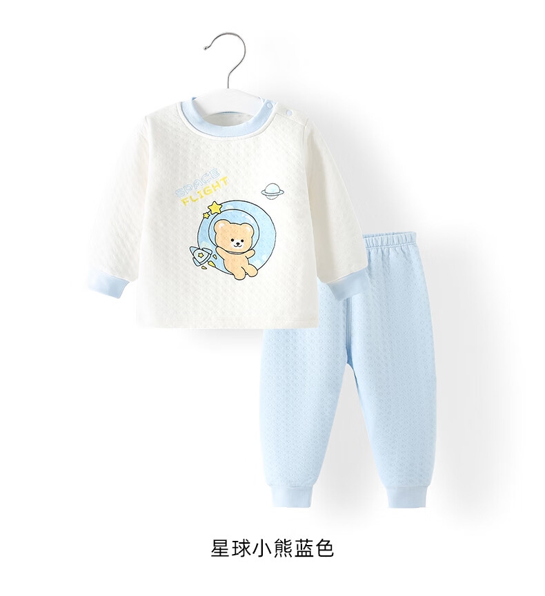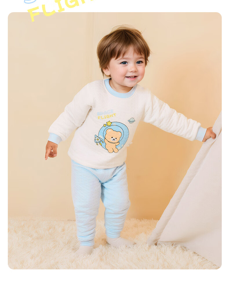 舒贝怡儿童内衣套装保暖夹棉男女宝宝秋衣秋裤婴儿衣服家居服小熊90