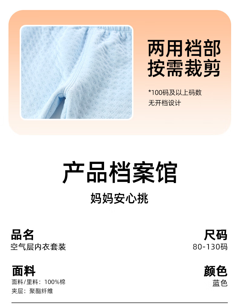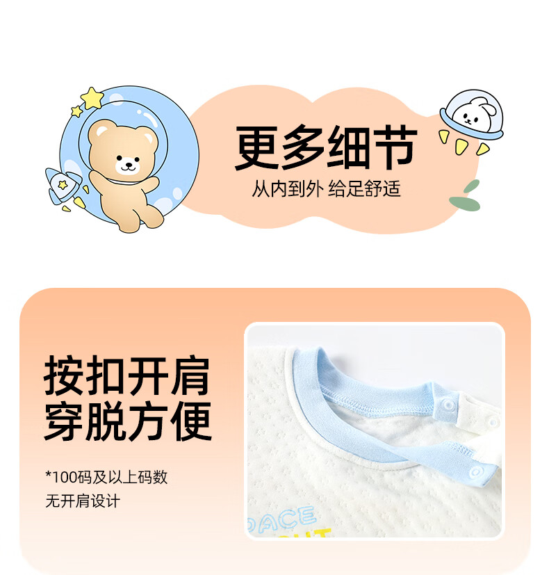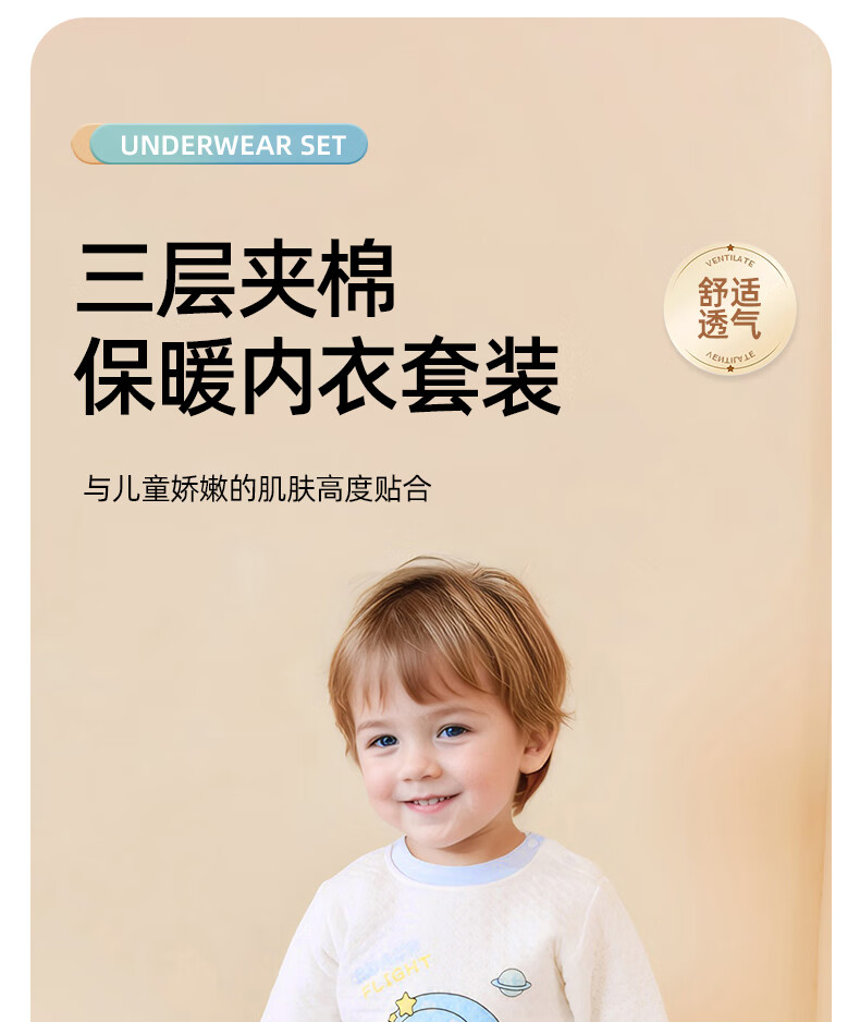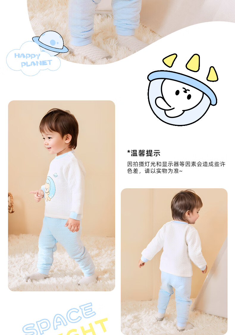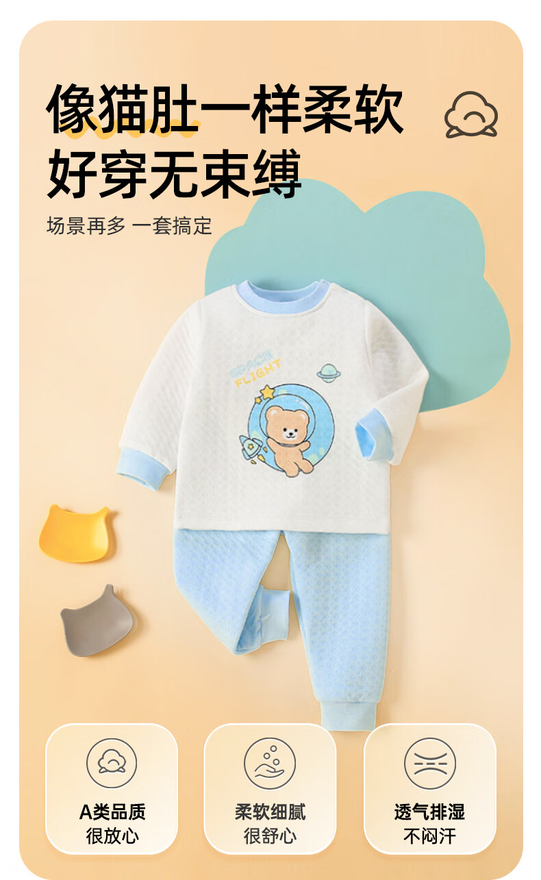 舒贝怡儿童内衣套装保暖夹棉男女宝宝秋衣秋裤婴儿衣服家居服小熊90