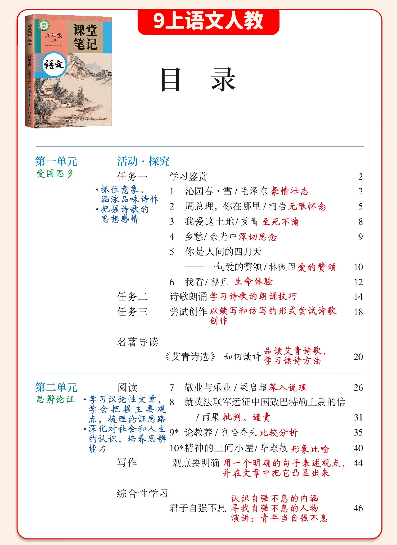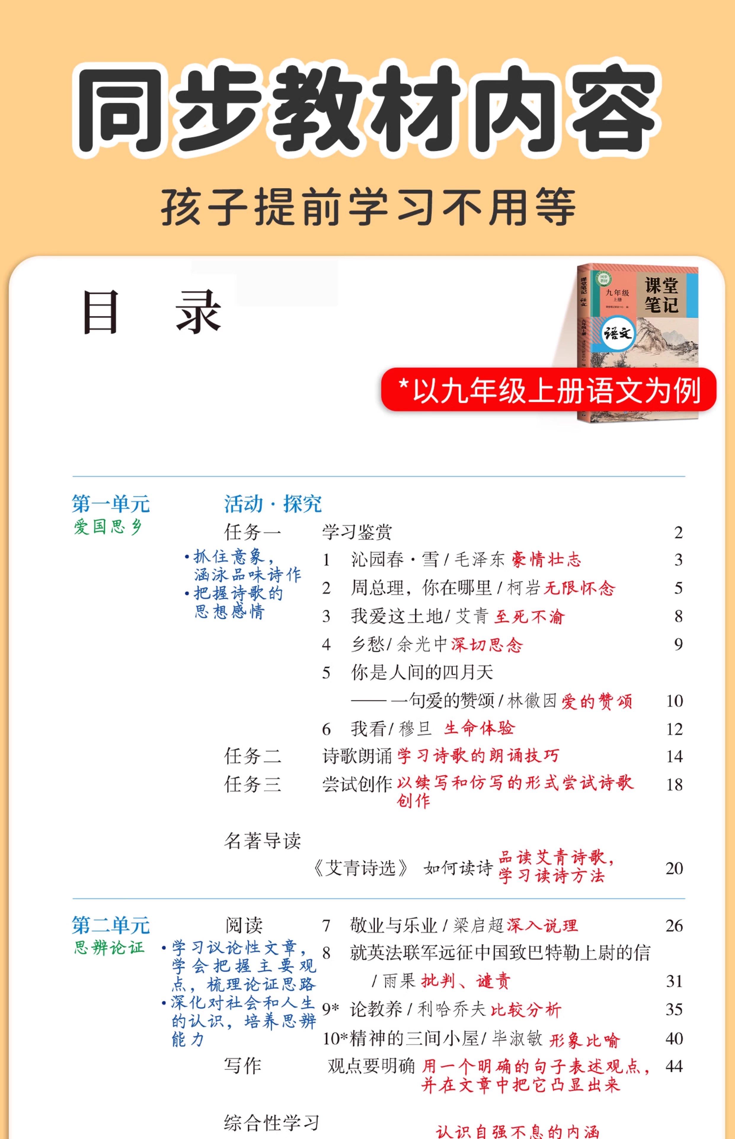 斗半匠语文课堂笔记九年级上册人教版初三同步教材初中学霸随堂笔记初中三年级课堂笔记语文预习复习辅导书