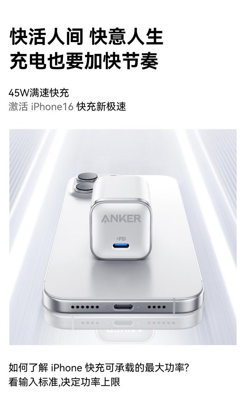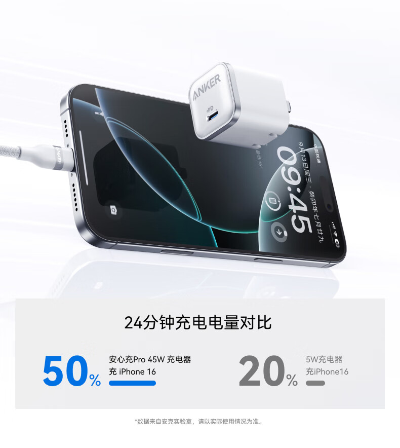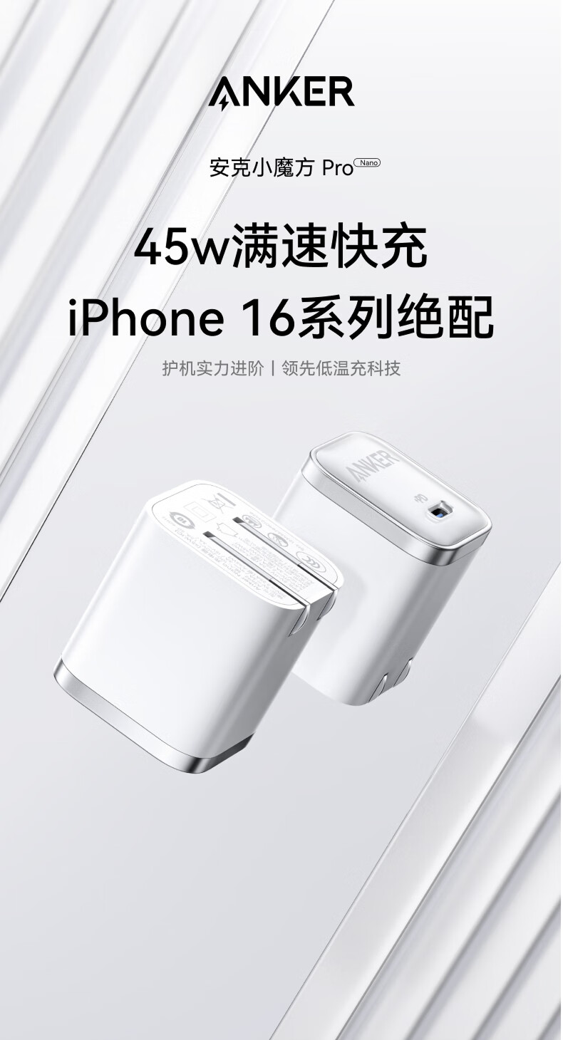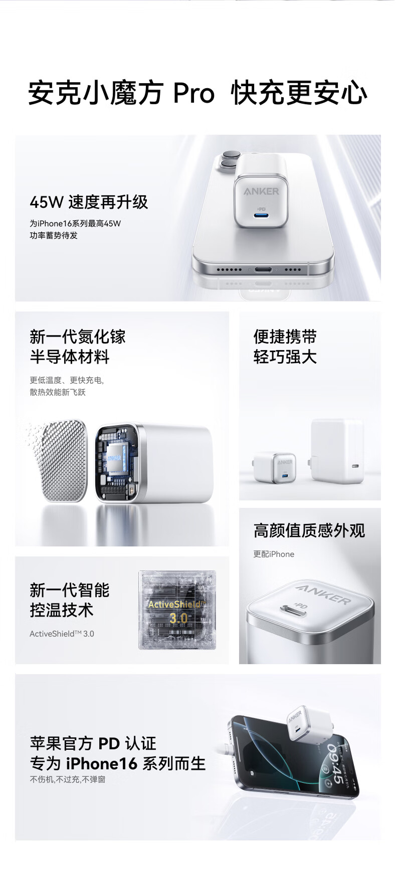 ANKER安克【安克小魔方Pro45W】充电器适用苹果17iPhone16快充华为PD协议氮化镓iPhone手机17 【白色-45W氮化镓】小魔方Pro苹果15-16