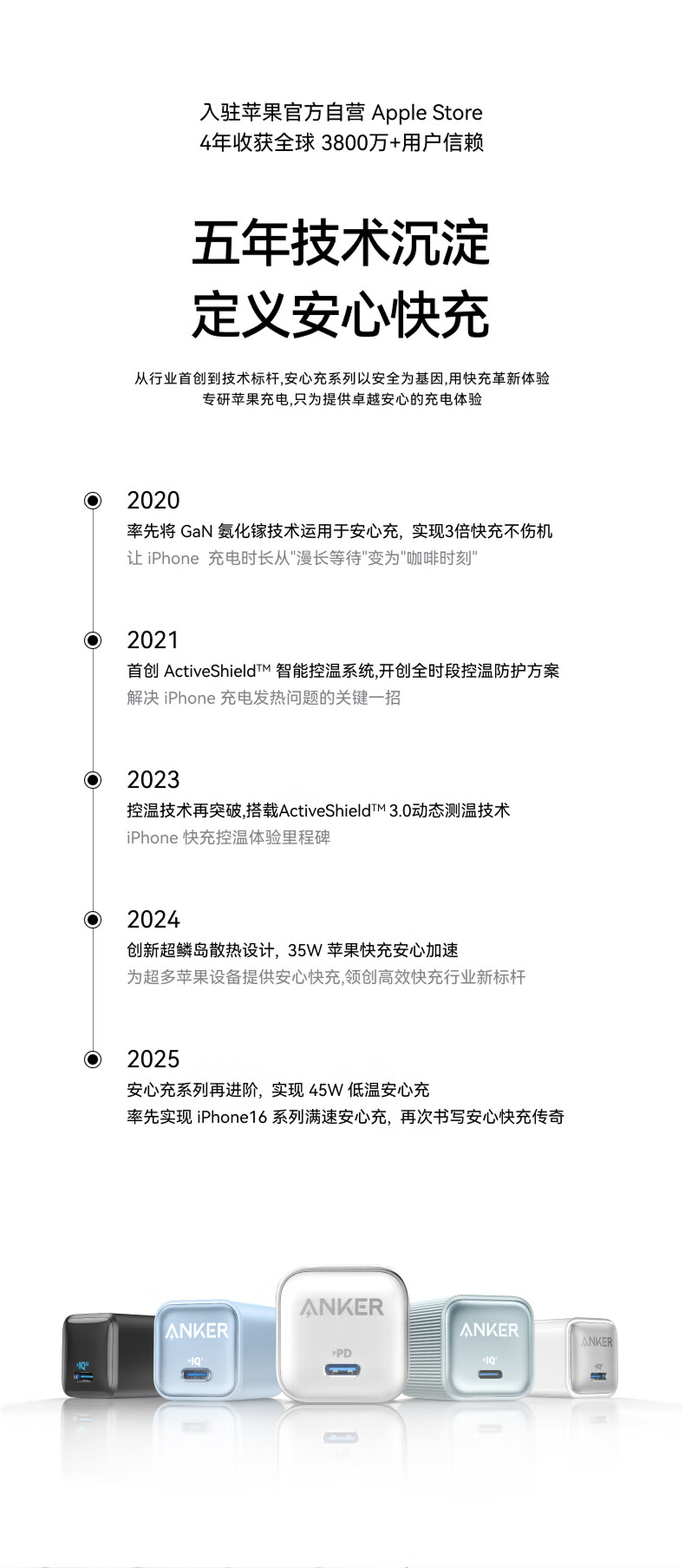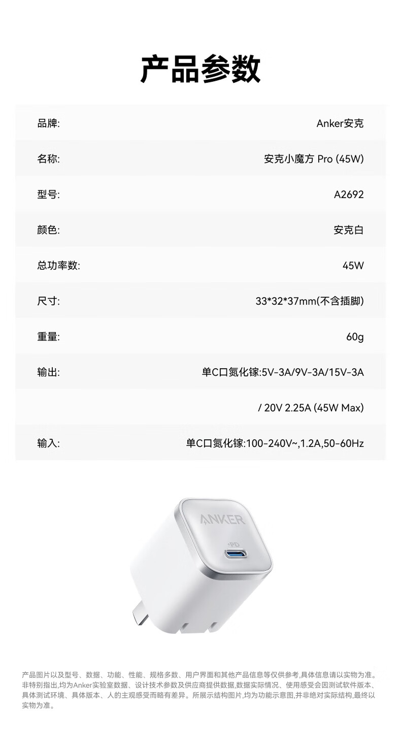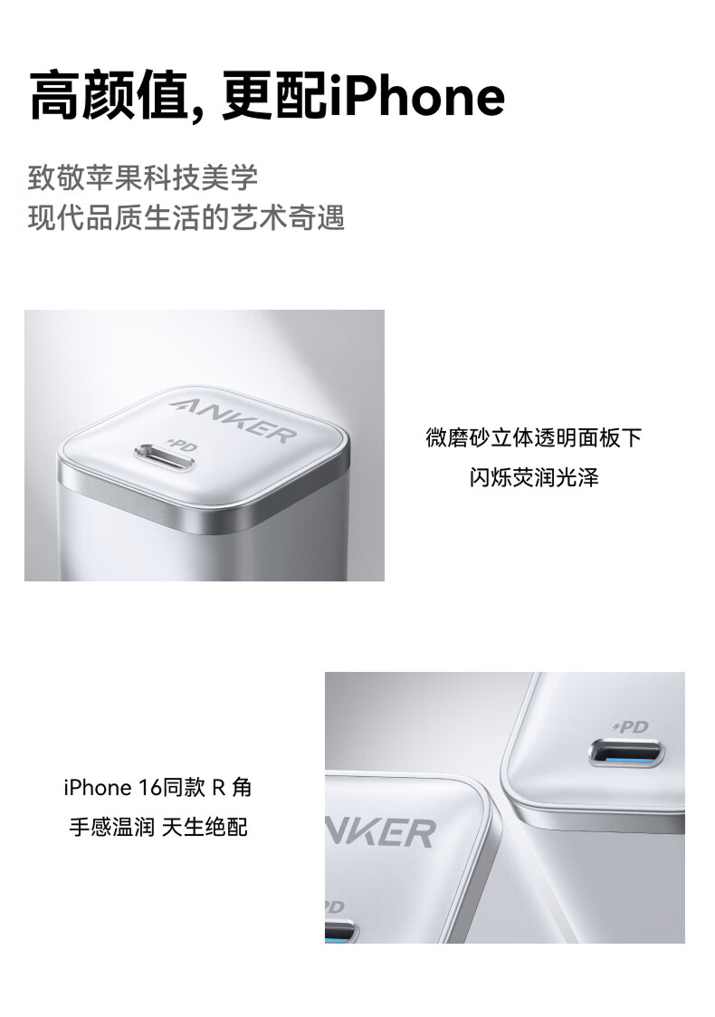 ANKER安克【安克小魔方Pro45W】充电器适用苹果17iPhone16快充华为PD协议氮化镓iPhone手机17 【白色-45W氮化镓】小魔方Pro苹果15-16