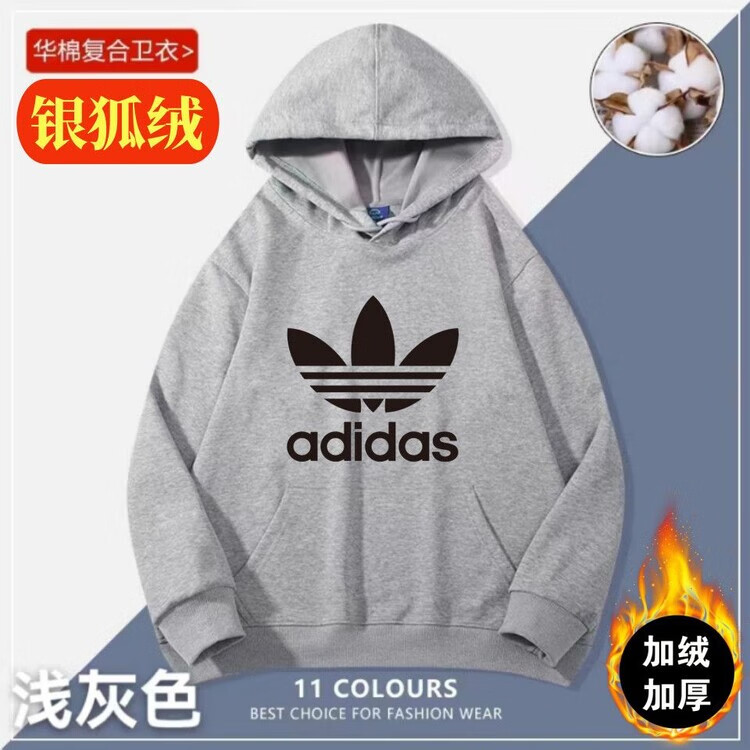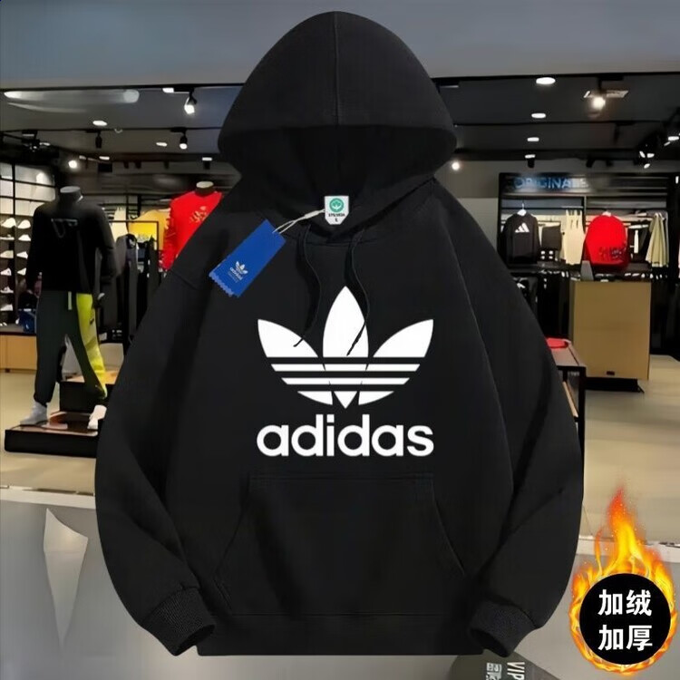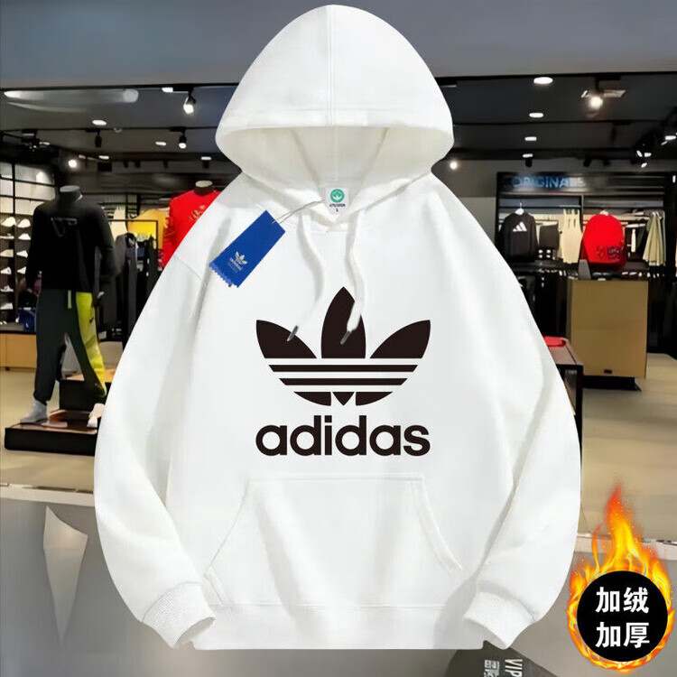 ADIDAS TECHFIT阿迪达斯秋冬季三叶草卫衣男帅气校园加厚爆款长袖打底宽松加绒带 阿迪达斯白色【加绒款】 M 建议【80-100斤】