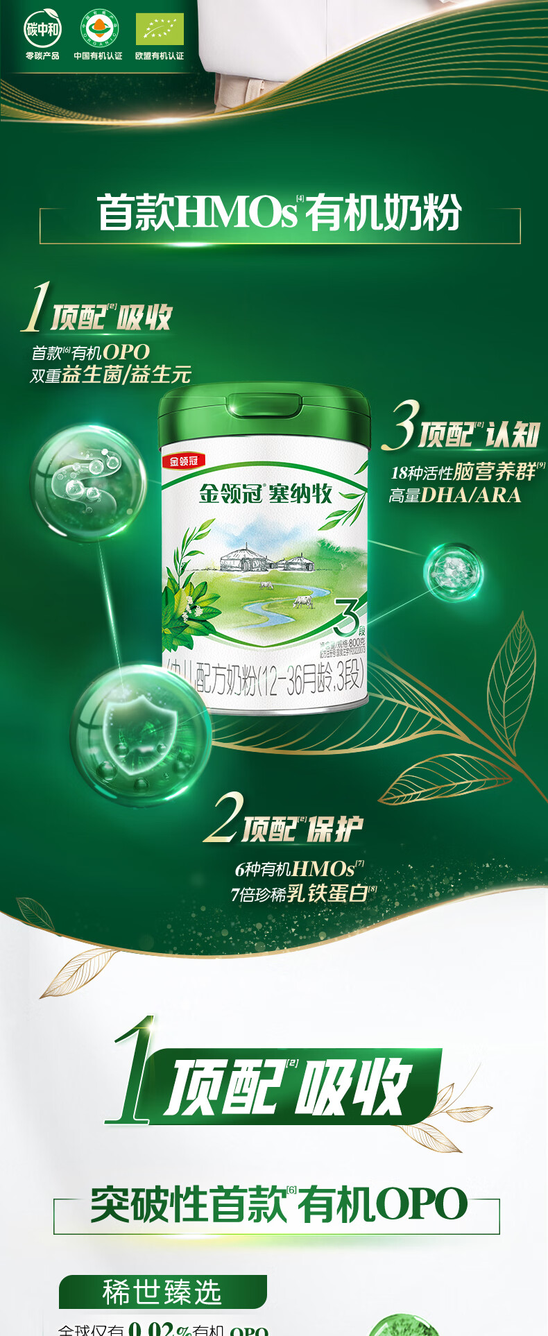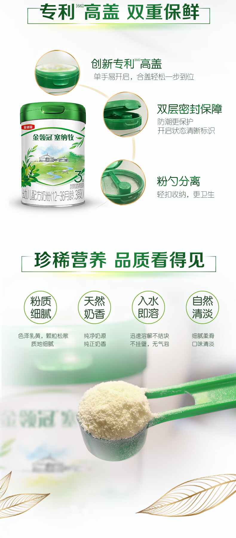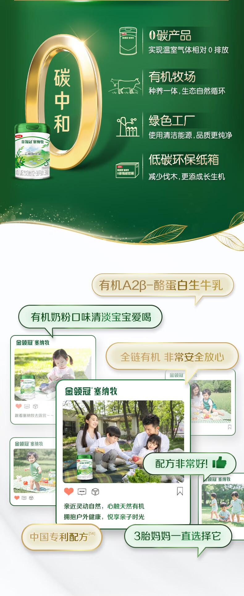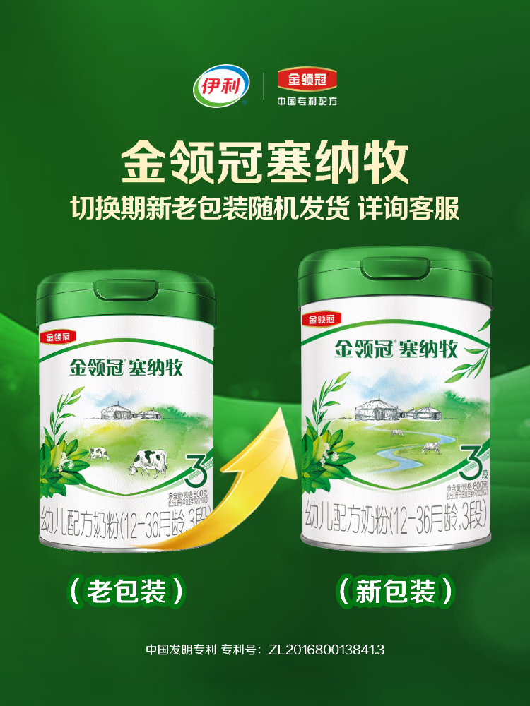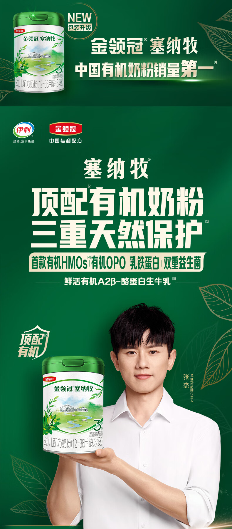 伊利金领冠塞纳牧有机A2β-酪蛋白奶粉3段(1-3岁)800g