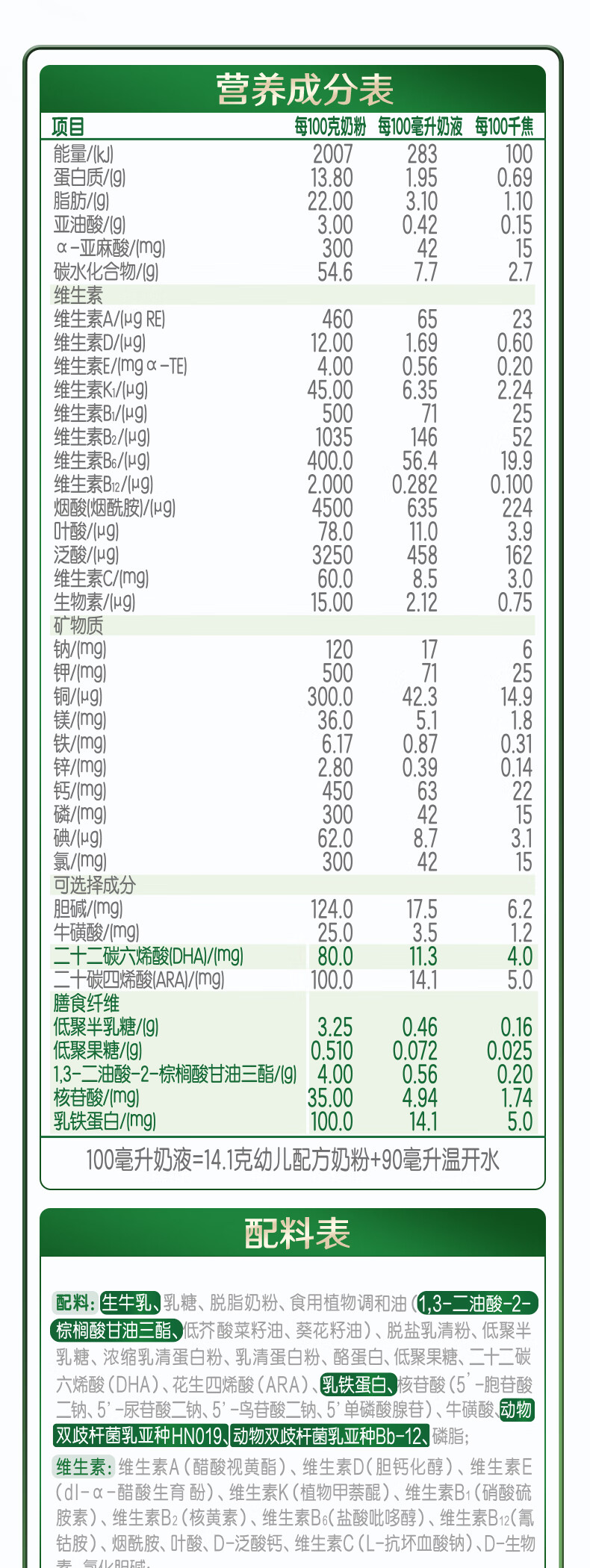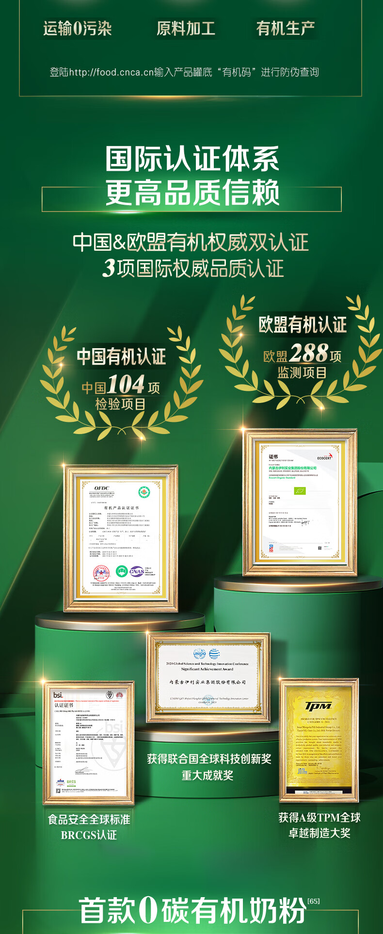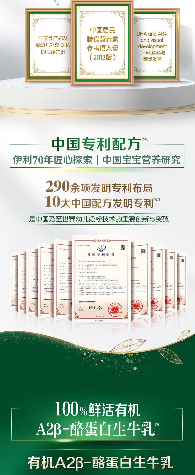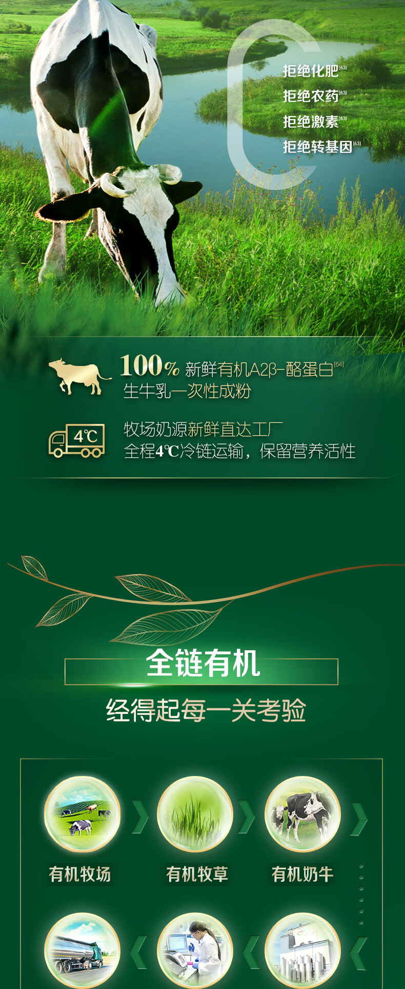 伊利金领冠塞纳牧有机A2β-酪蛋白奶粉3段(1-3岁)800g