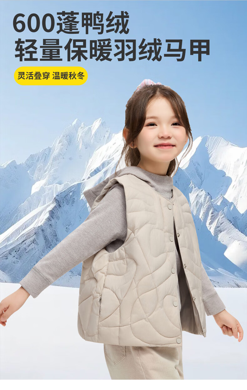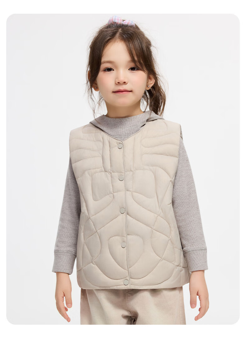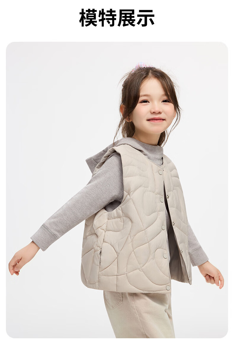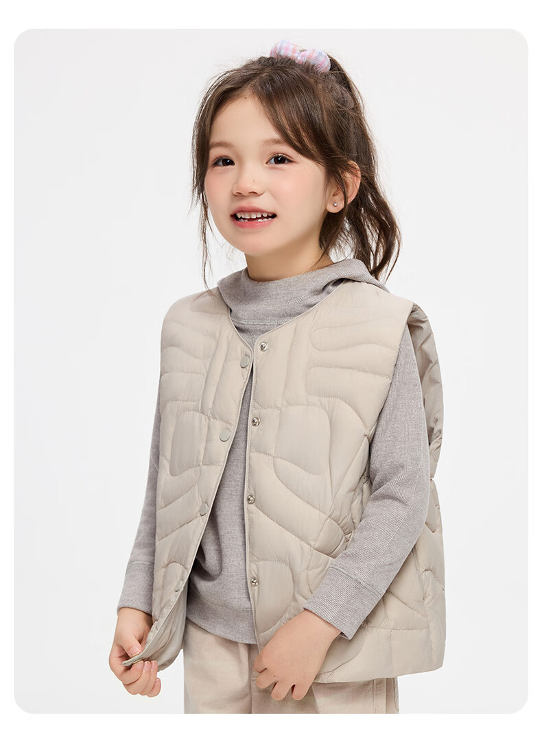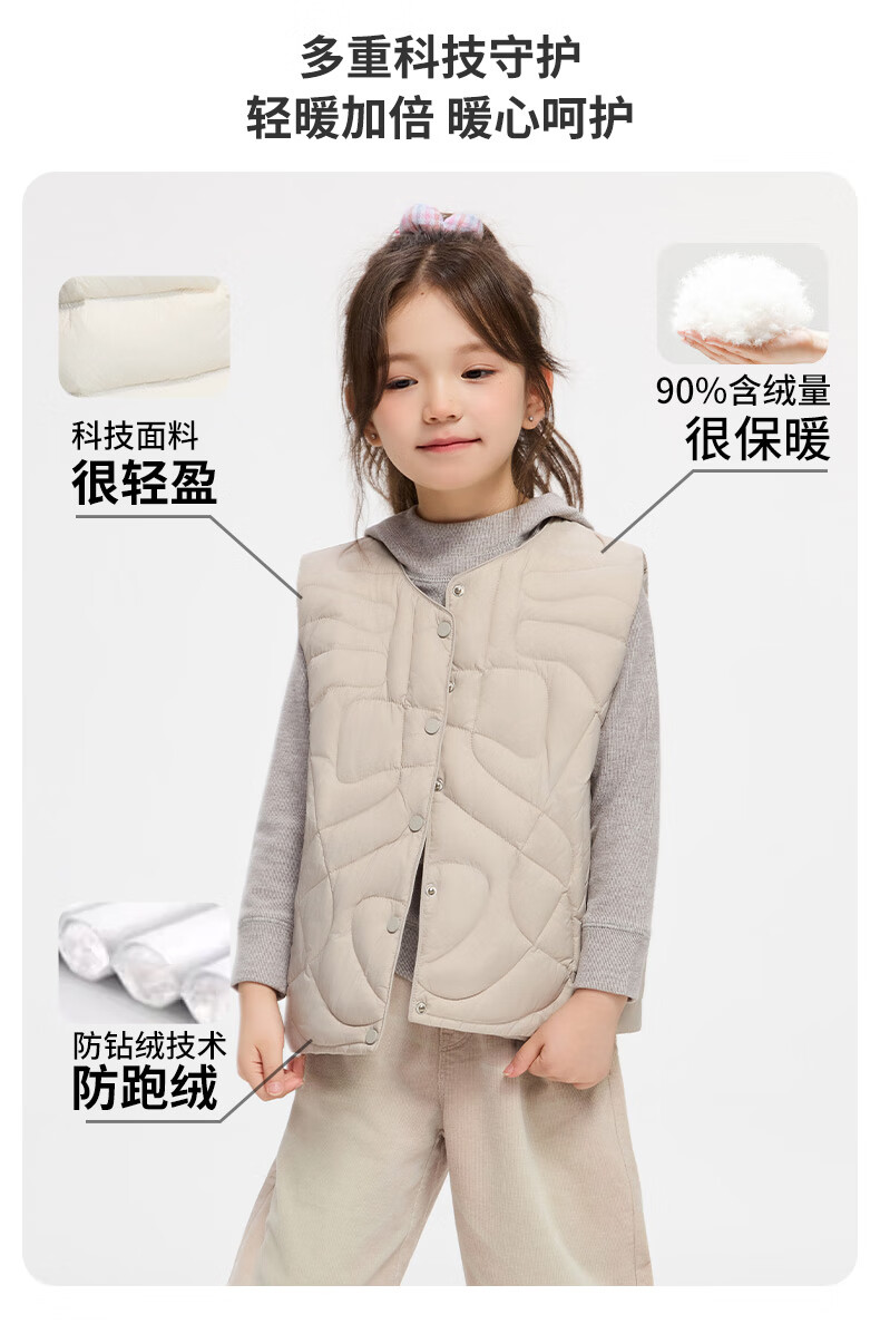 鸭鸭【反季】女童羽绒马甲鸭鸭童装外套2025新款冬季保暖上衣 燕麦色 150