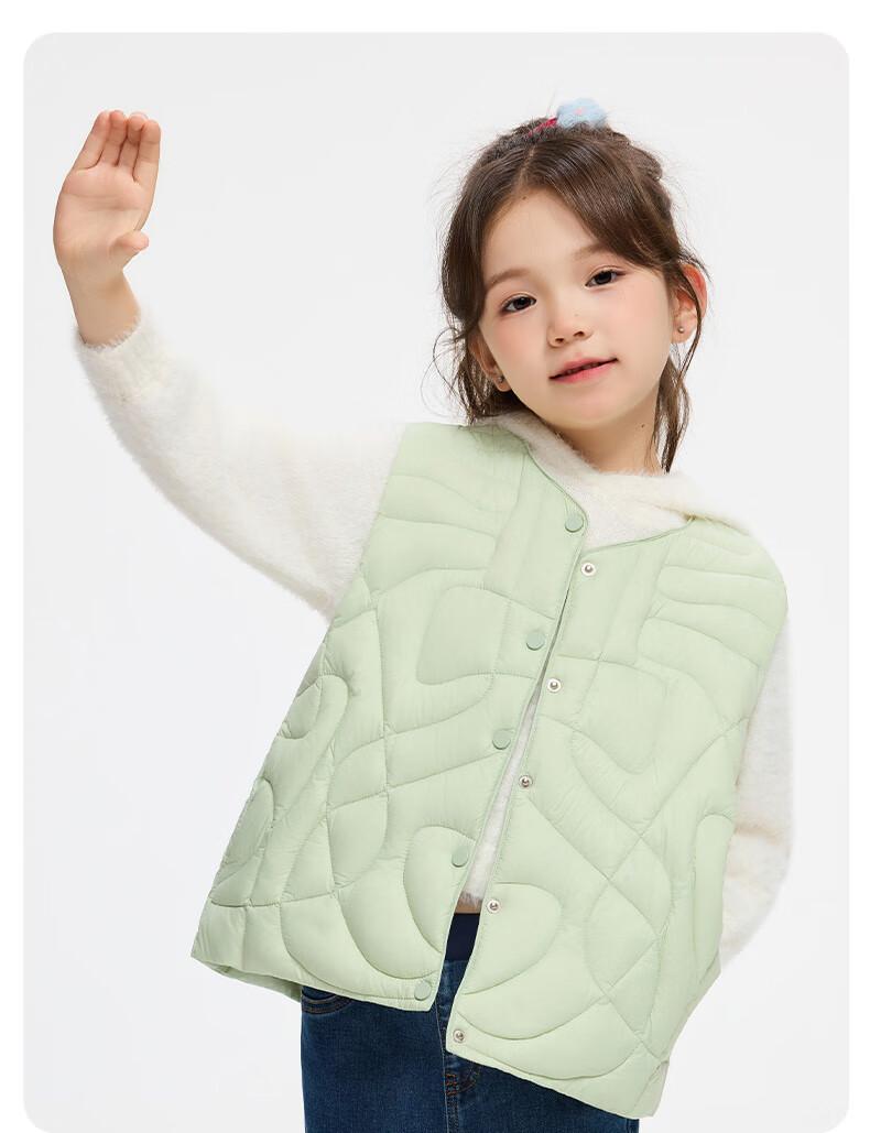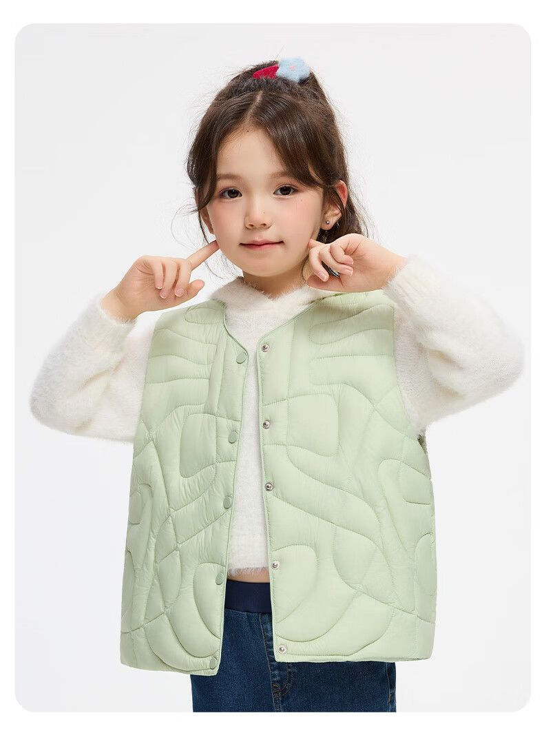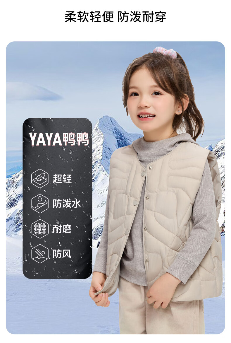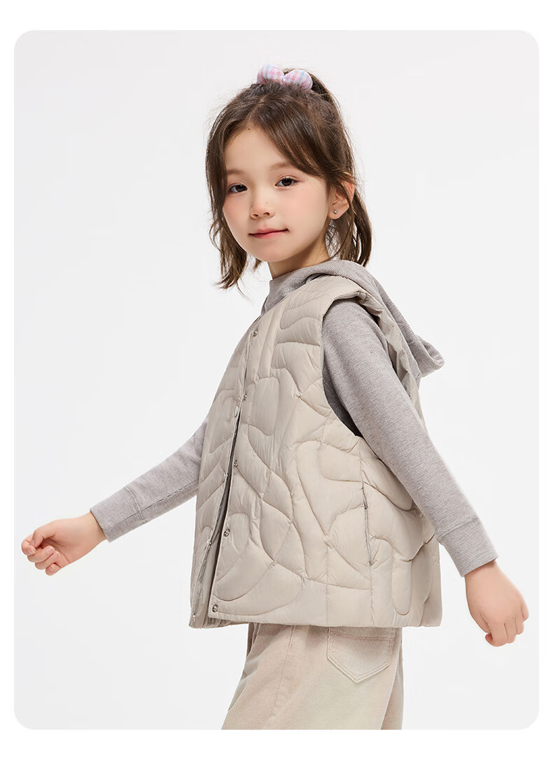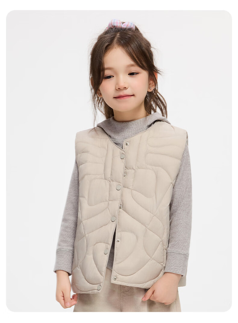 鸭鸭【反季】女童羽绒马甲鸭鸭童装外套2025新款冬季保暖上衣 燕麦色 150
