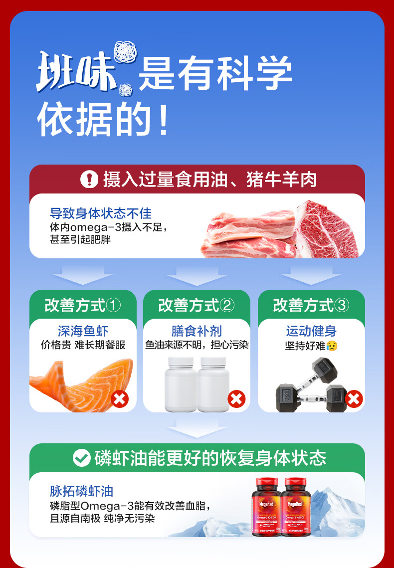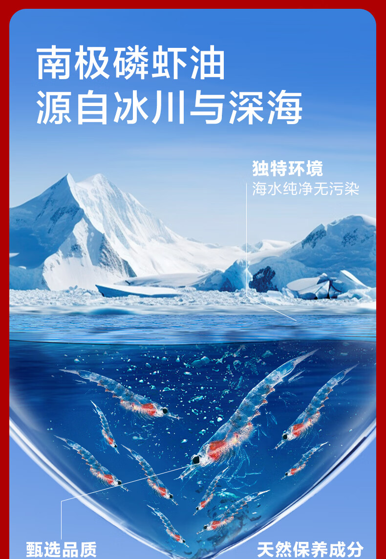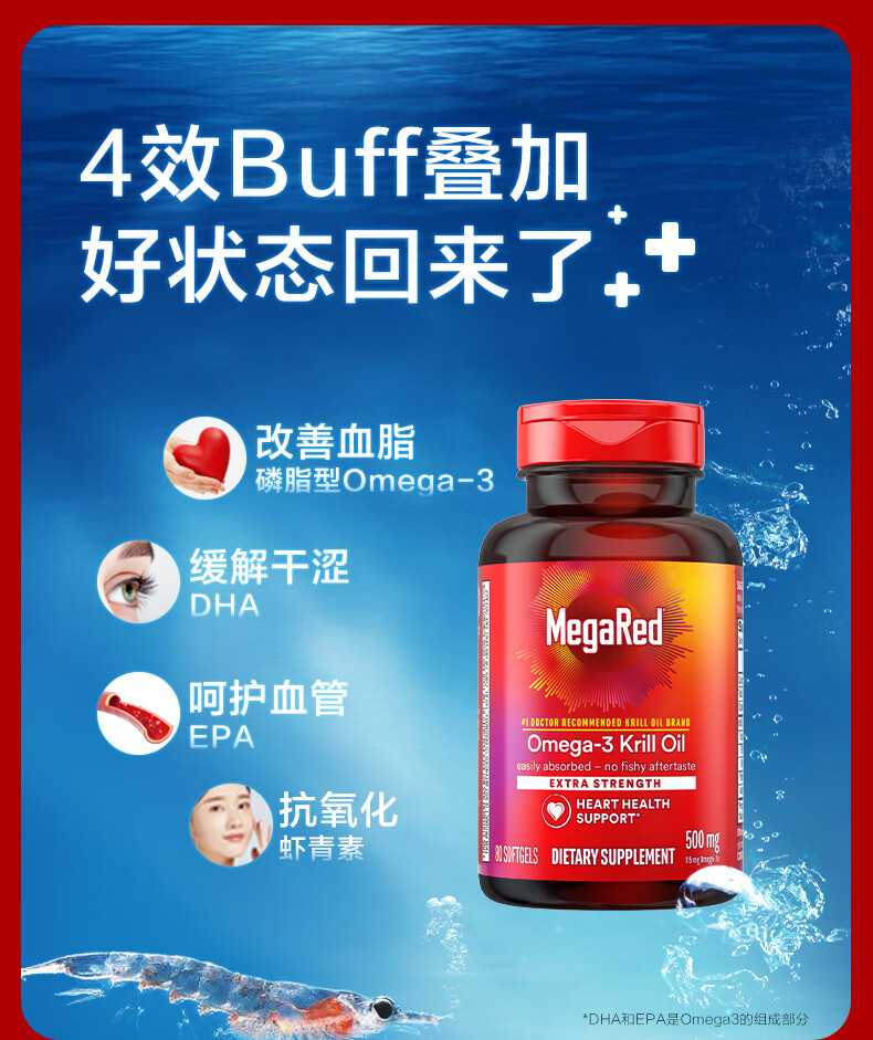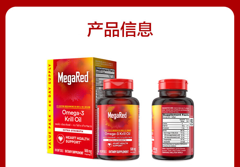 MegaRed脉拓南极磷虾油软胶囊 深海鱼油升级日常养护omega-3 美国进口高纯度500mg 80粒