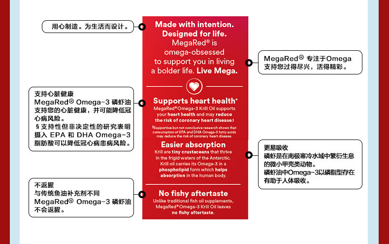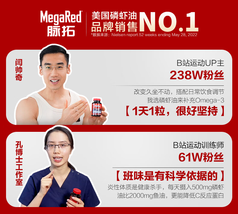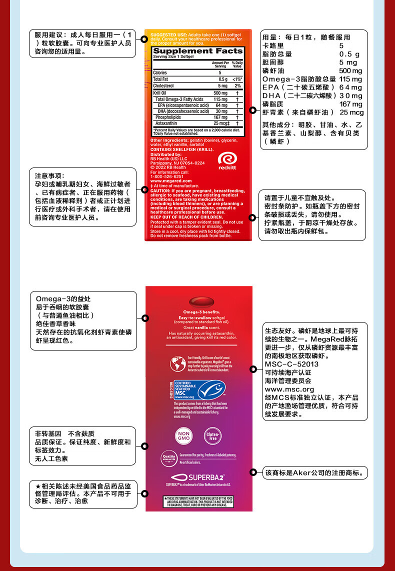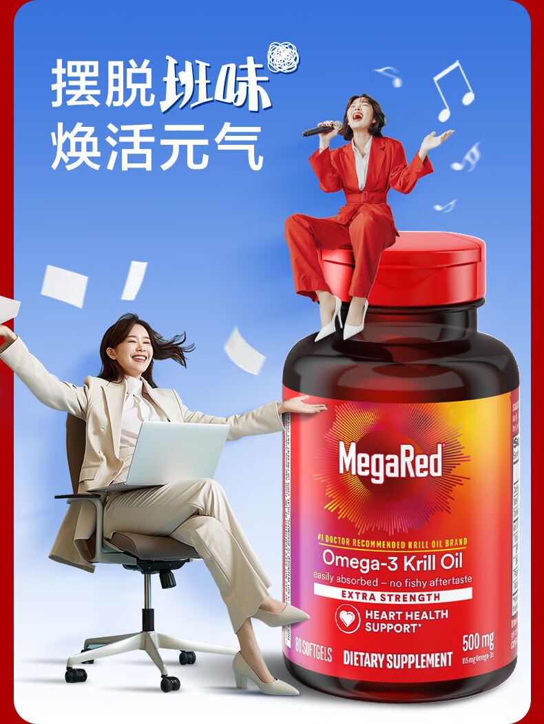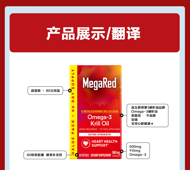 MegaRed脉拓南极磷虾油软胶囊 深海鱼油升级日常养护omega-3 美国进口高纯度500mg 80粒