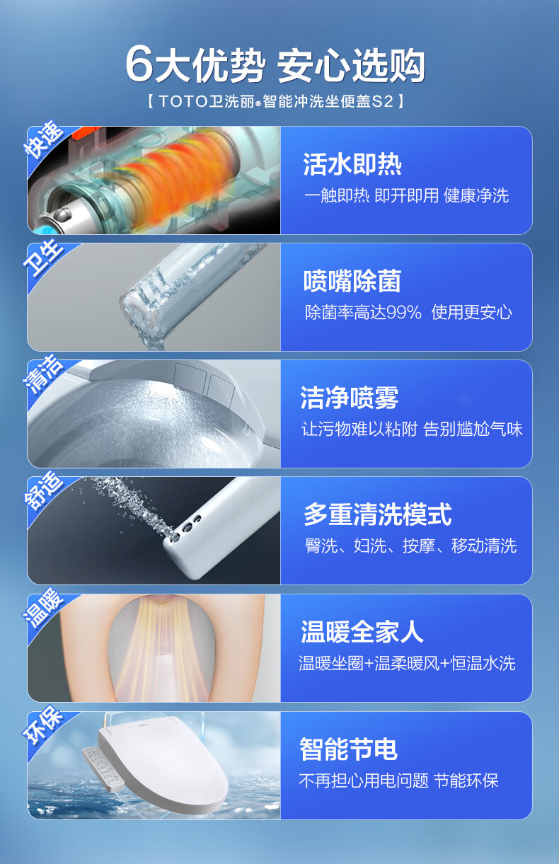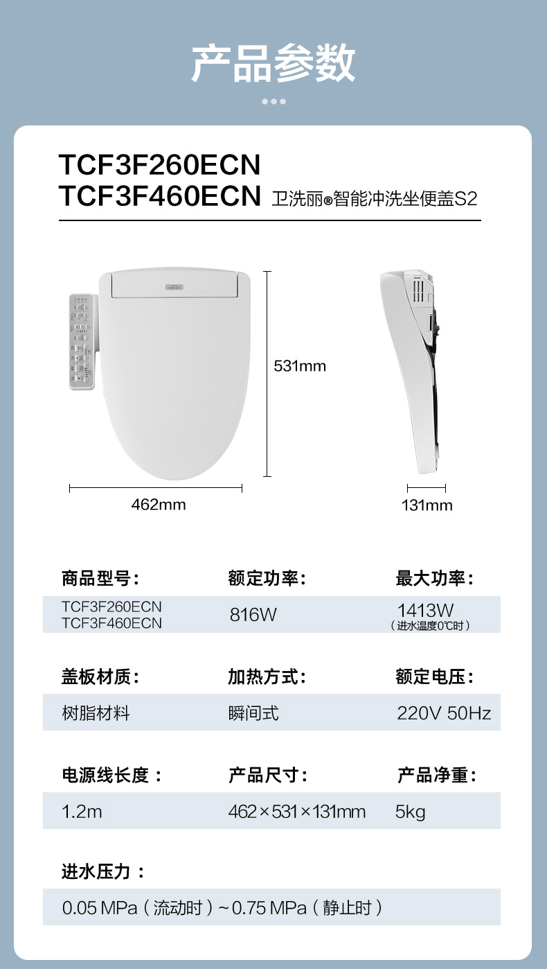 TOTO即热式智能马桶盖卫洗丽电动坐便盖TCF3F460ECN#W国家补贴(03-A)