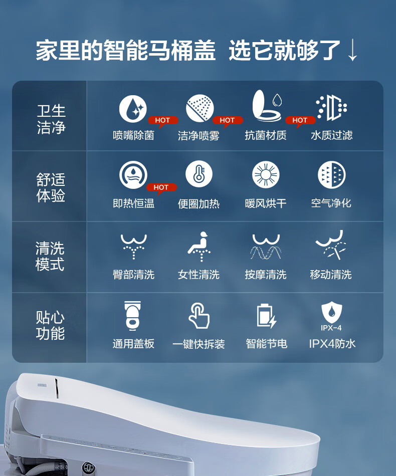 恒洁(HEGII)智能马桶H5Pro 感应自动翻盖泡沫盾无水压限制DCE717B -305