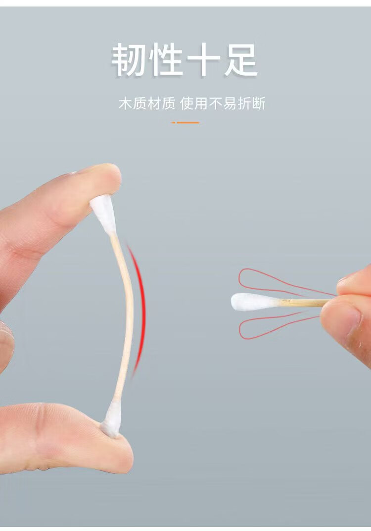LIFUSHA双头多用棉签掏耳朵棉棒清洁多功能不掉毛化妆棉签棒600头/300枚 双头多用棉签(300枚) -3盒