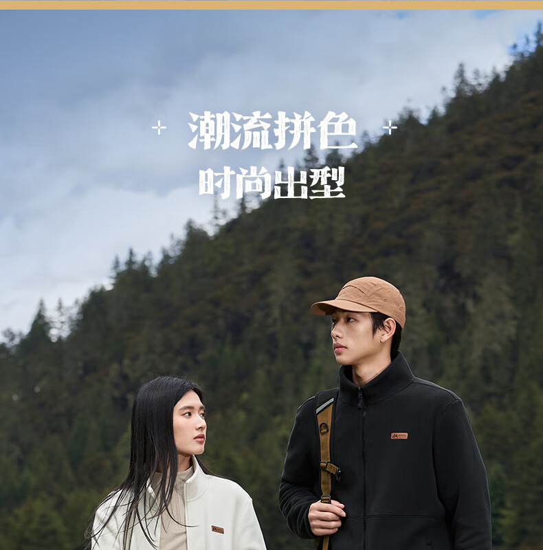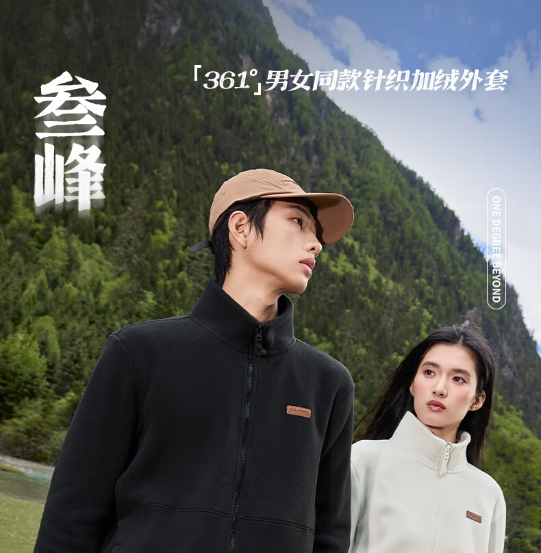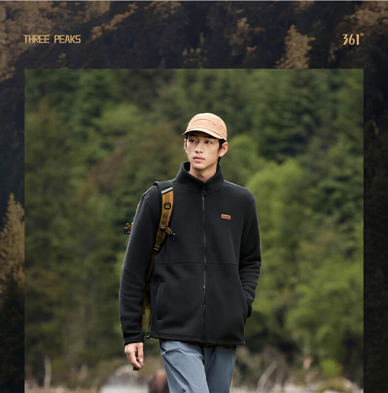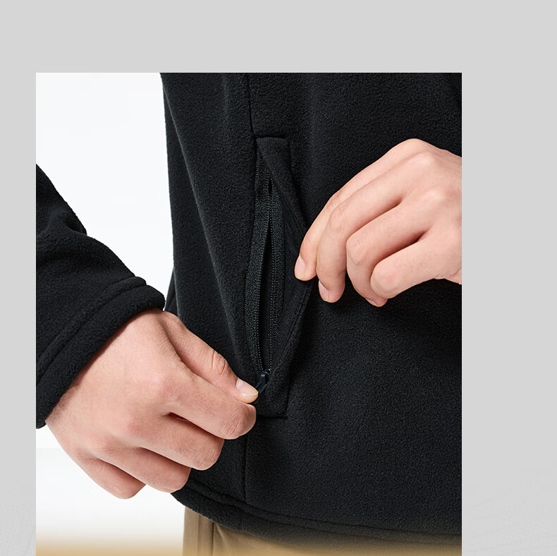 361°运动外套男Polartec冲锋衣内胆摇粒绒保暖立领上衣冬季登山服女 黑色/黑色 L