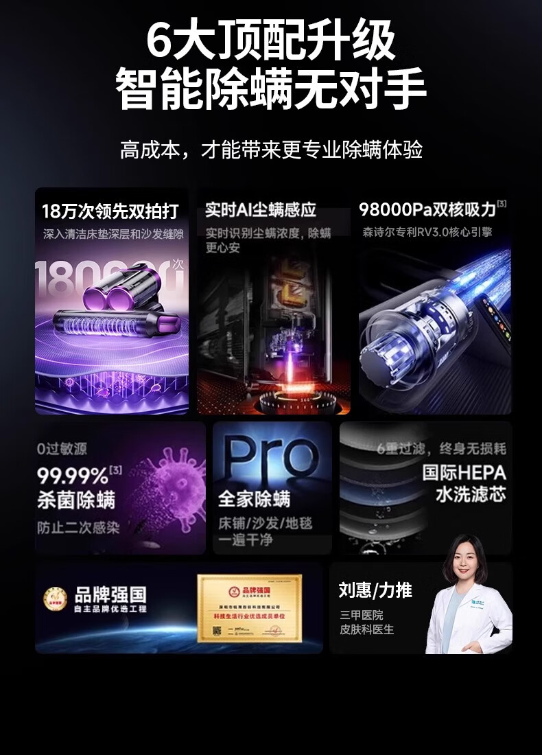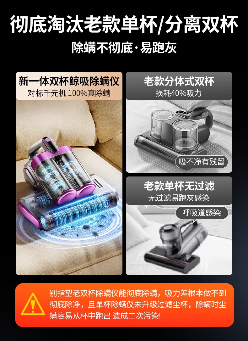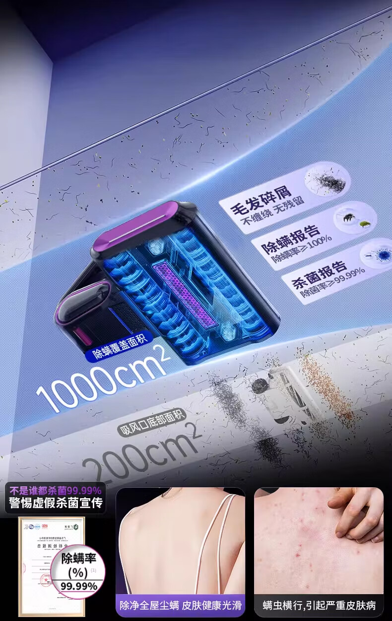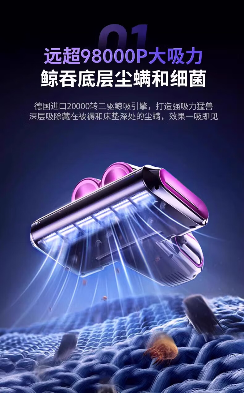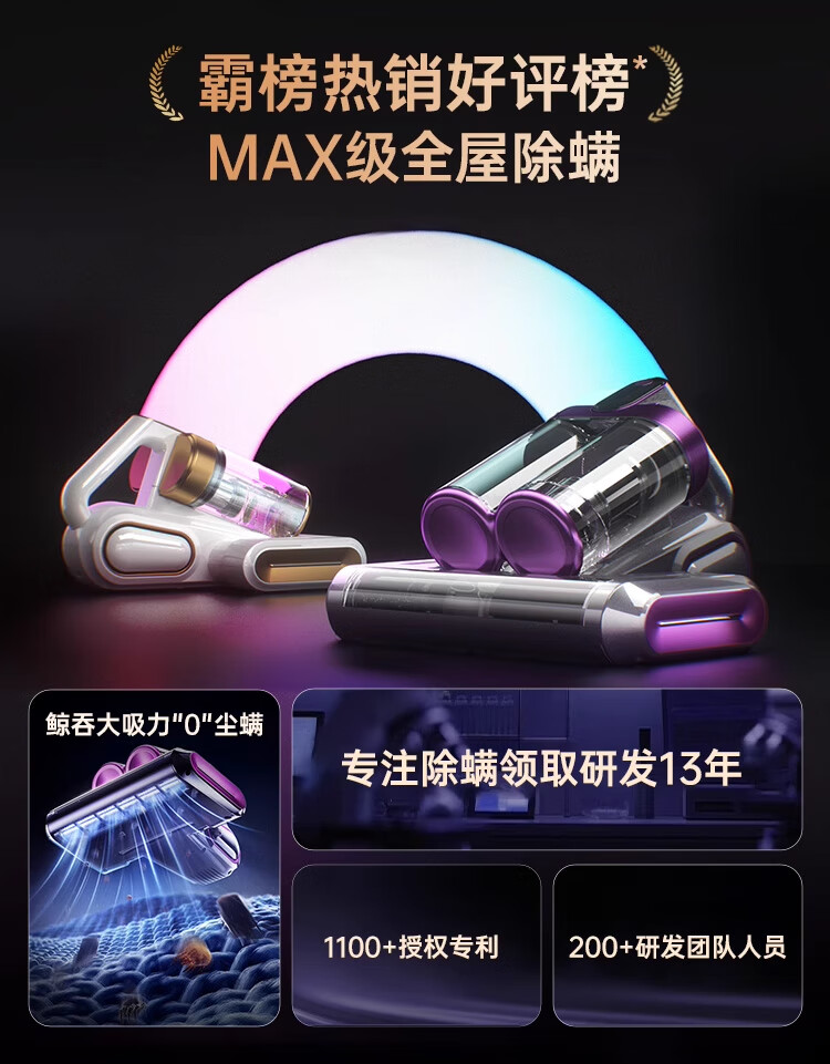 OQD德国除螨仪家用床上吸尘器猫毛除螨虫神器无线紫外线杀菌机专用二合一母婴热烘高温除猫毛大吸力 【MAX尊享款香槟金】 AI智控过滤净化-大吸力提升80%搭载2.0降噪