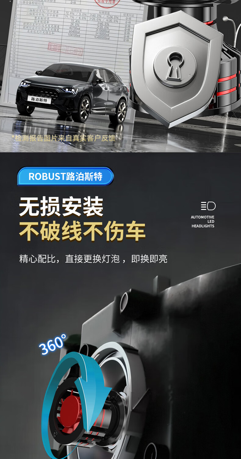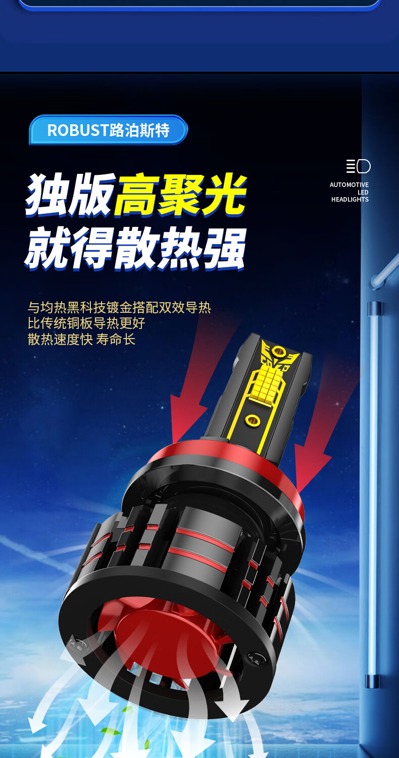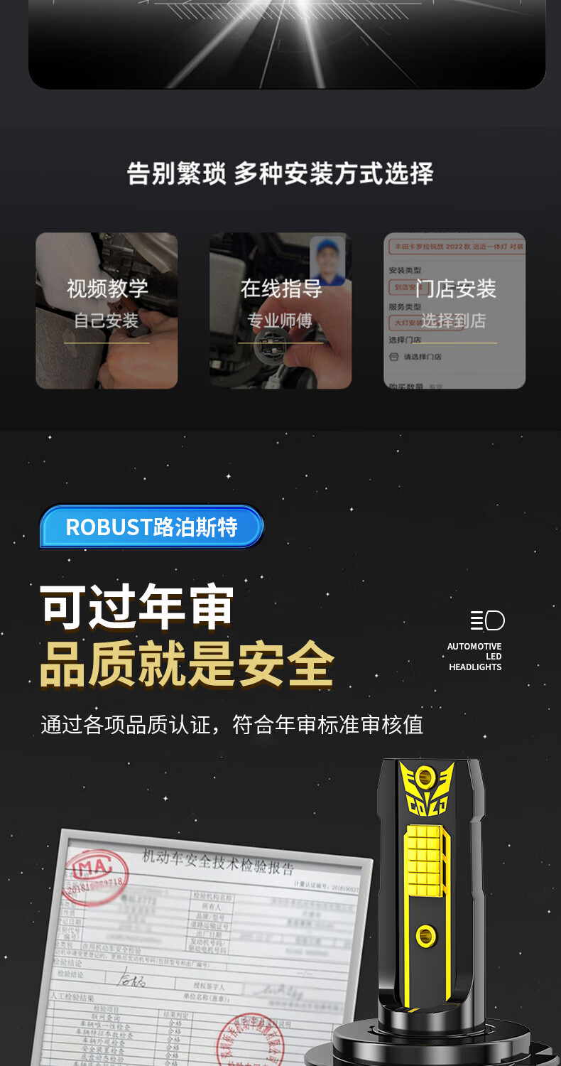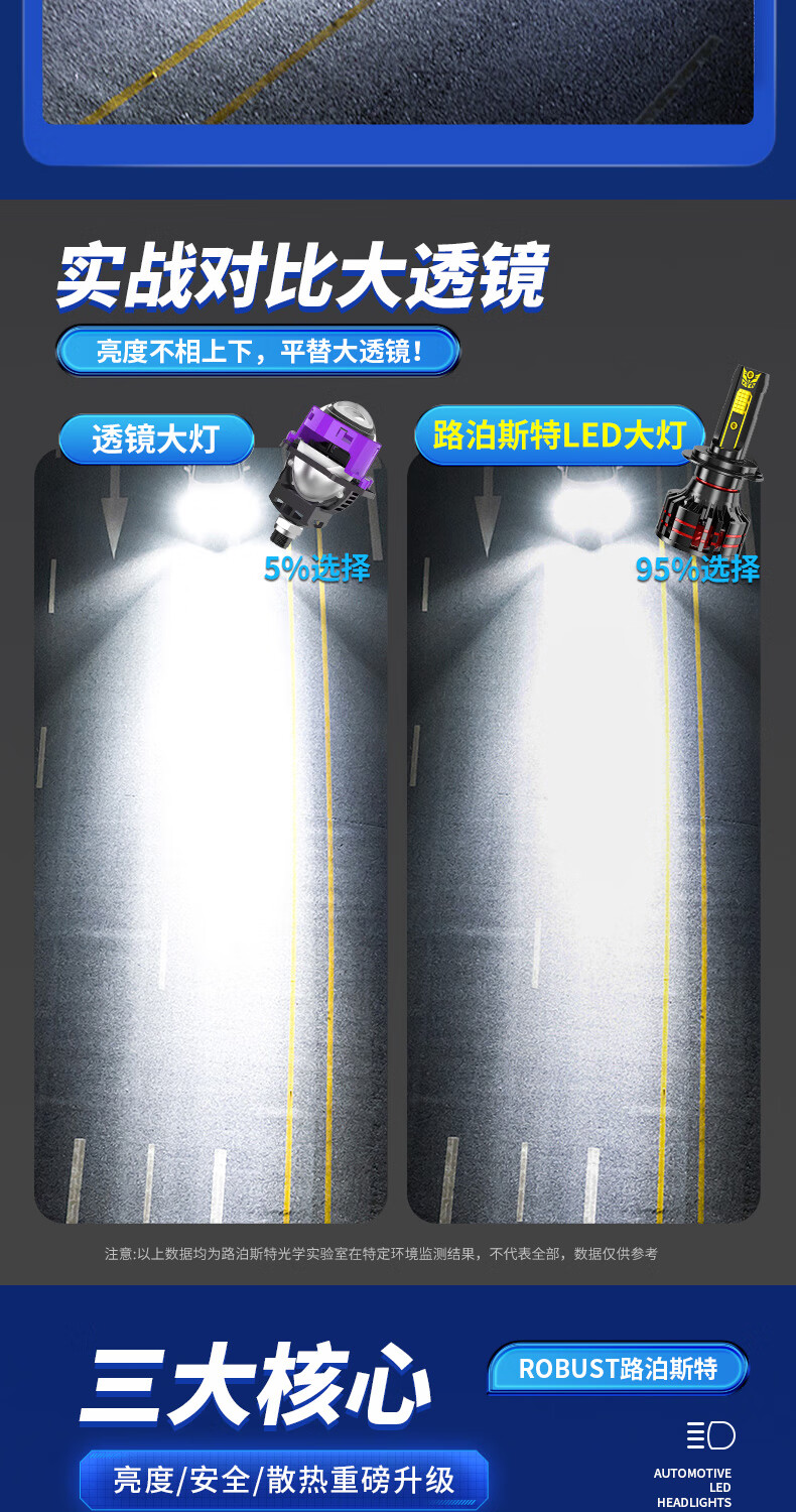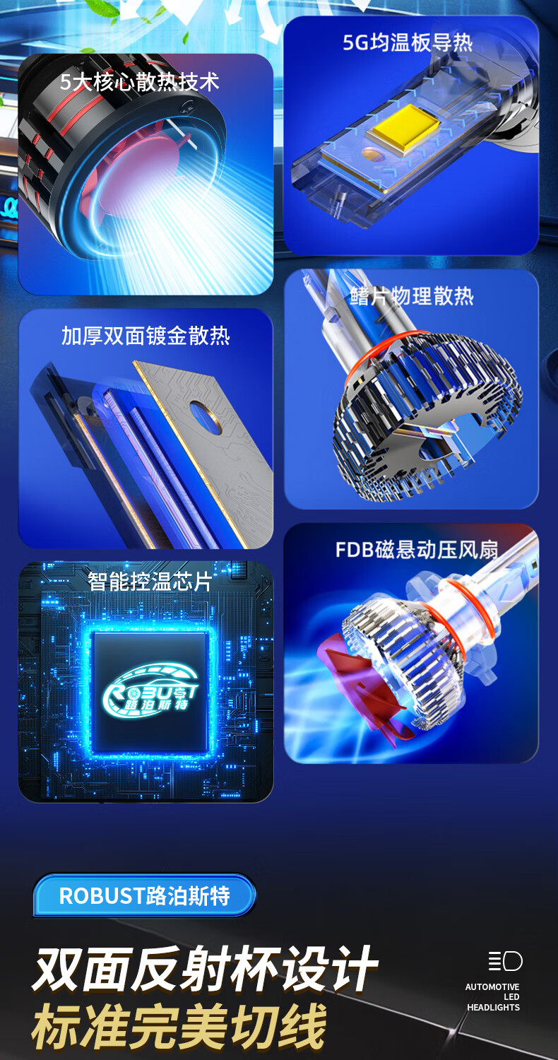 路泊斯特(ROBUST)适用汽车h8h9h11led大灯强光灯泡亮远近一体无损改安装led车灯泡