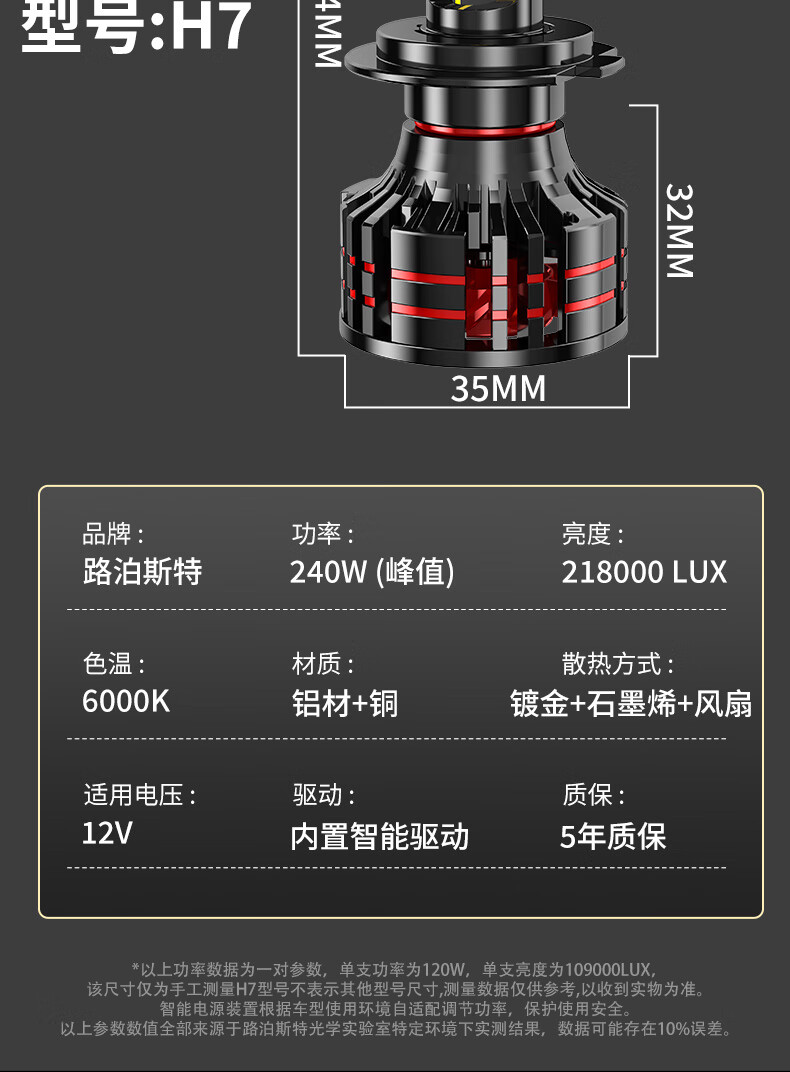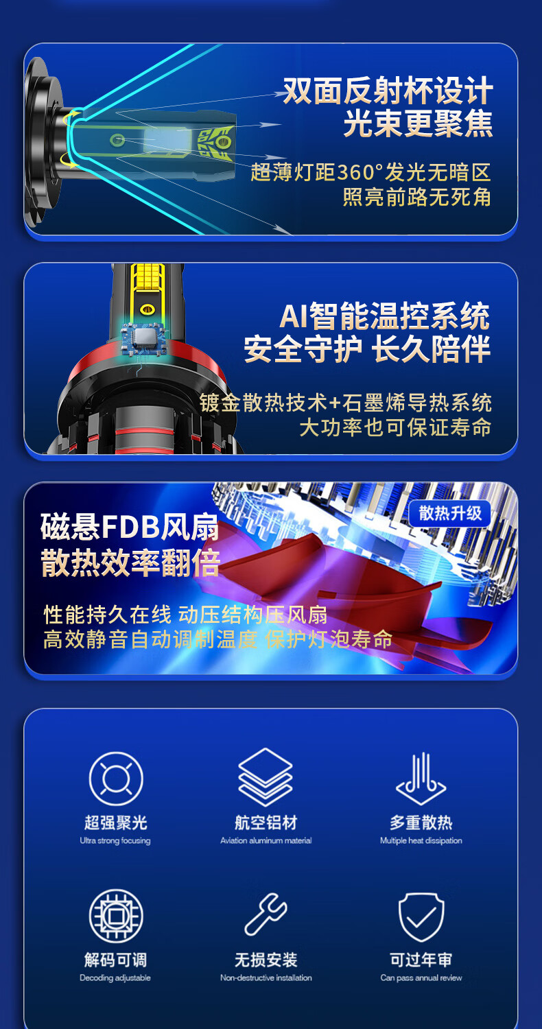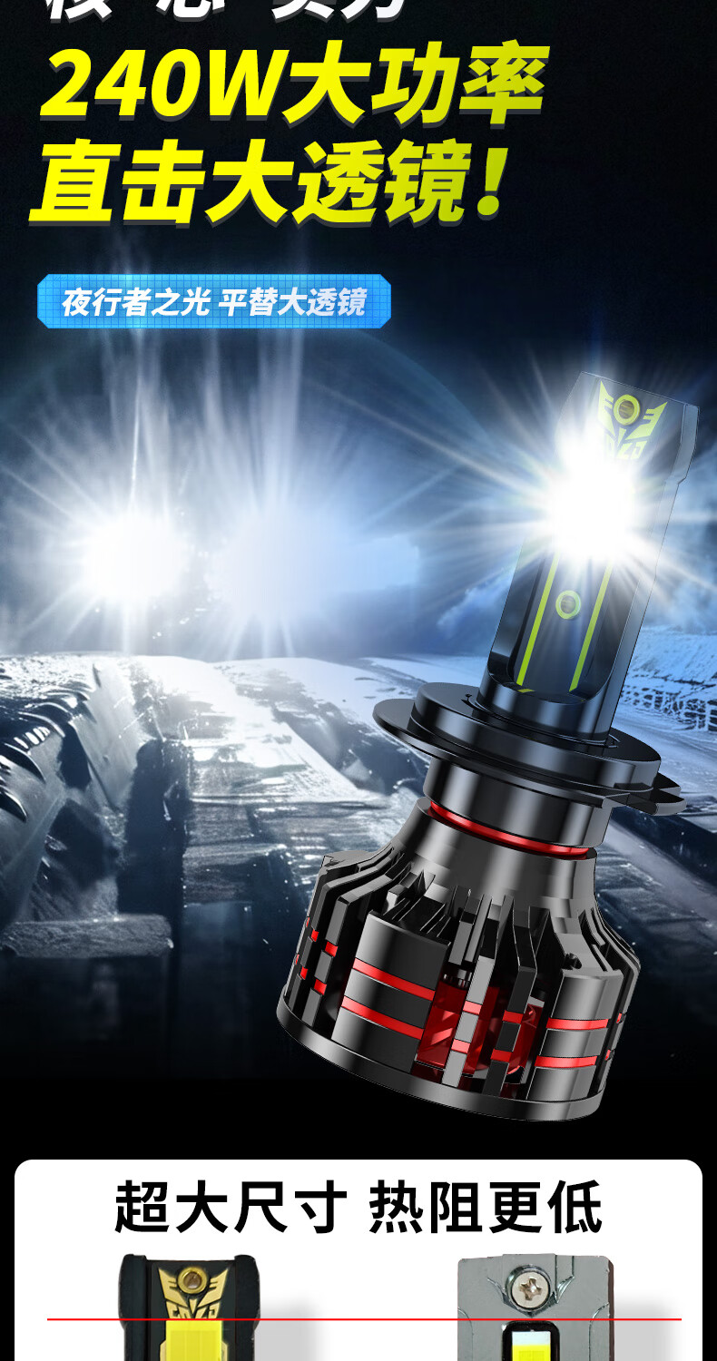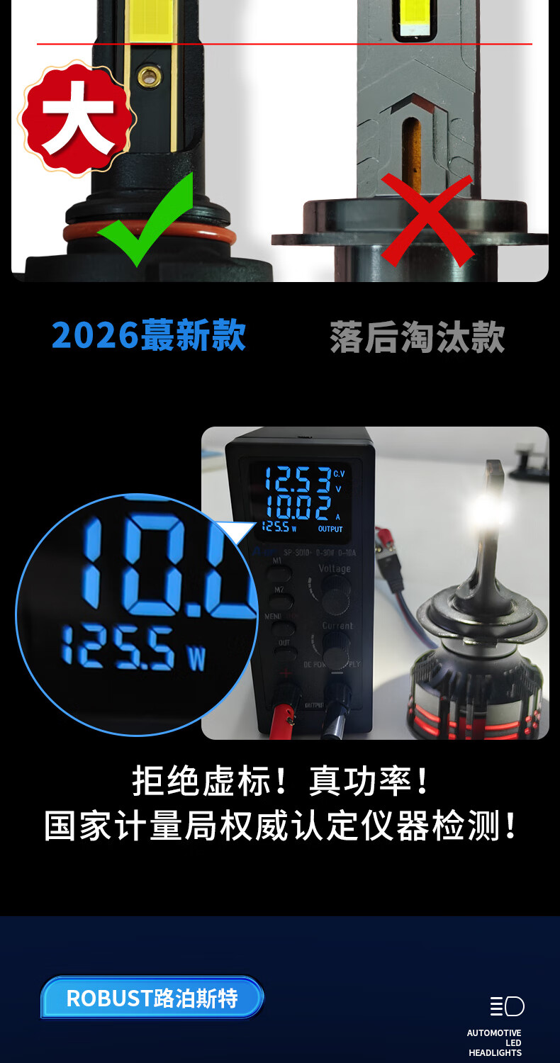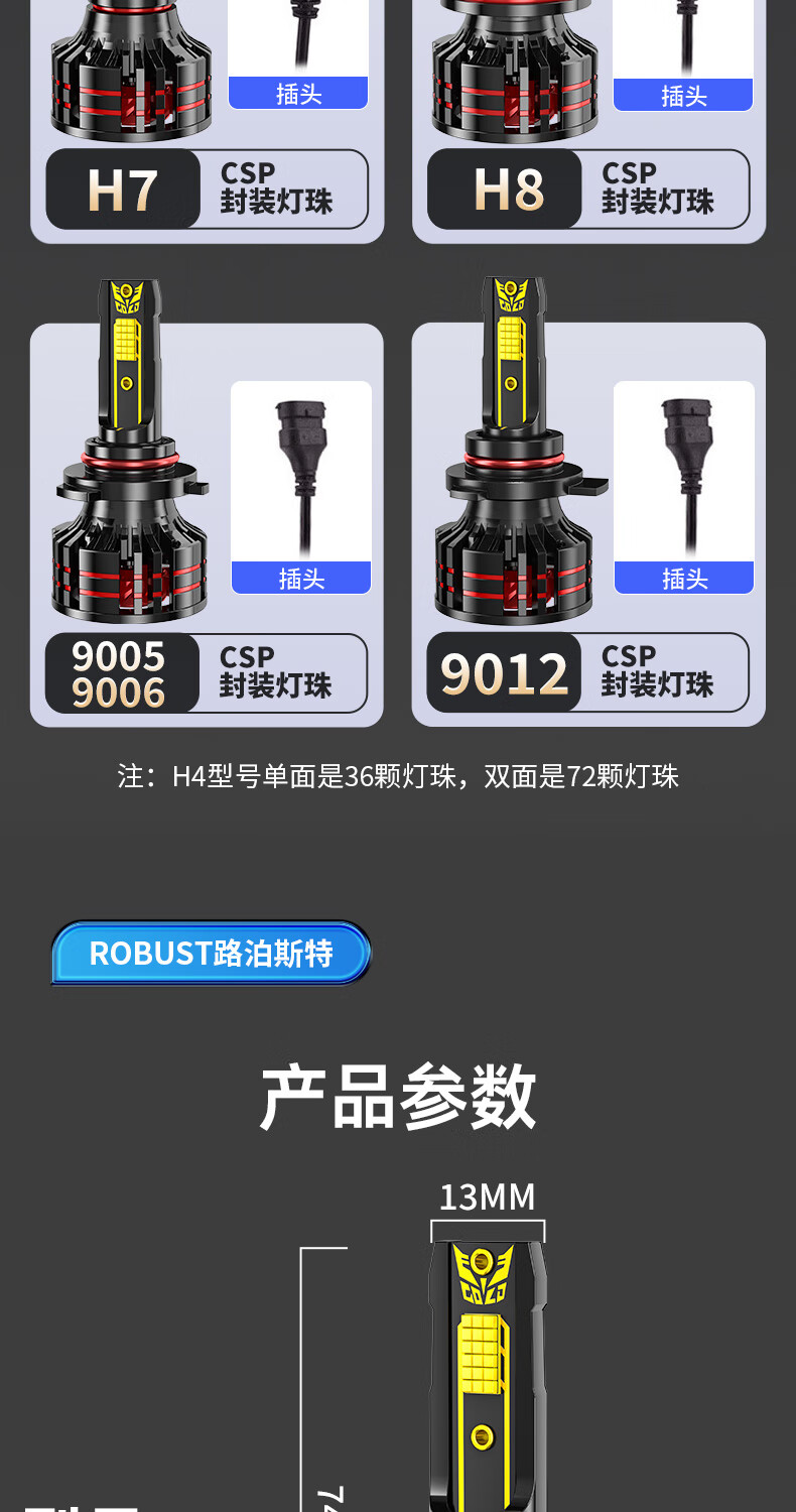 路泊斯特(ROBUST)适用汽车h8h9h11led大灯强光灯泡亮远近一体无损改安装led车灯泡