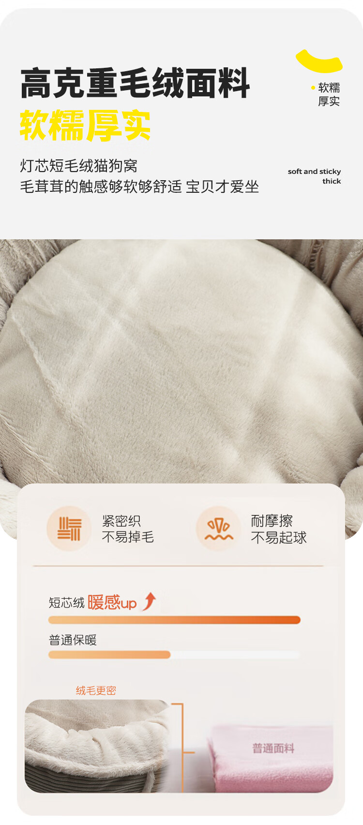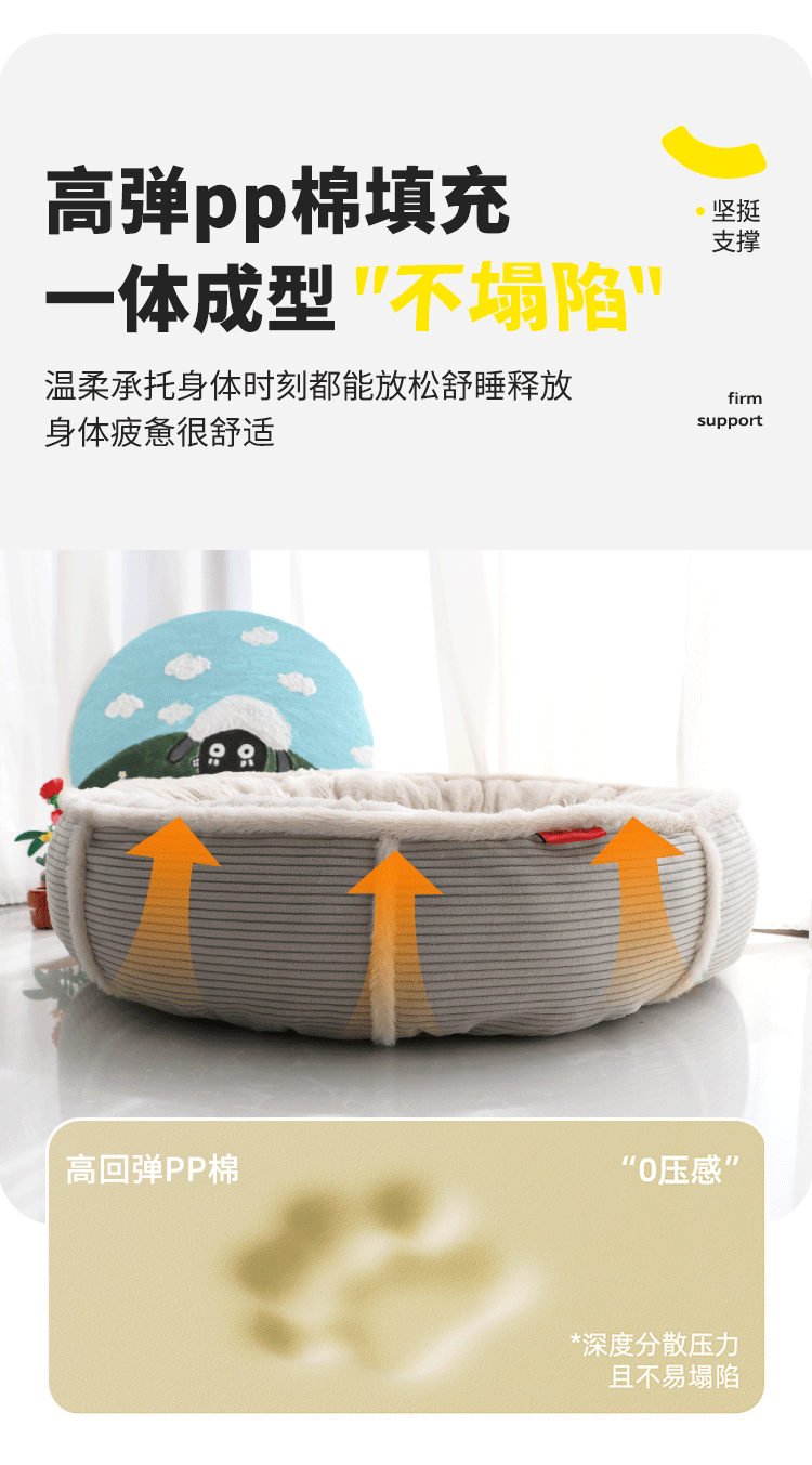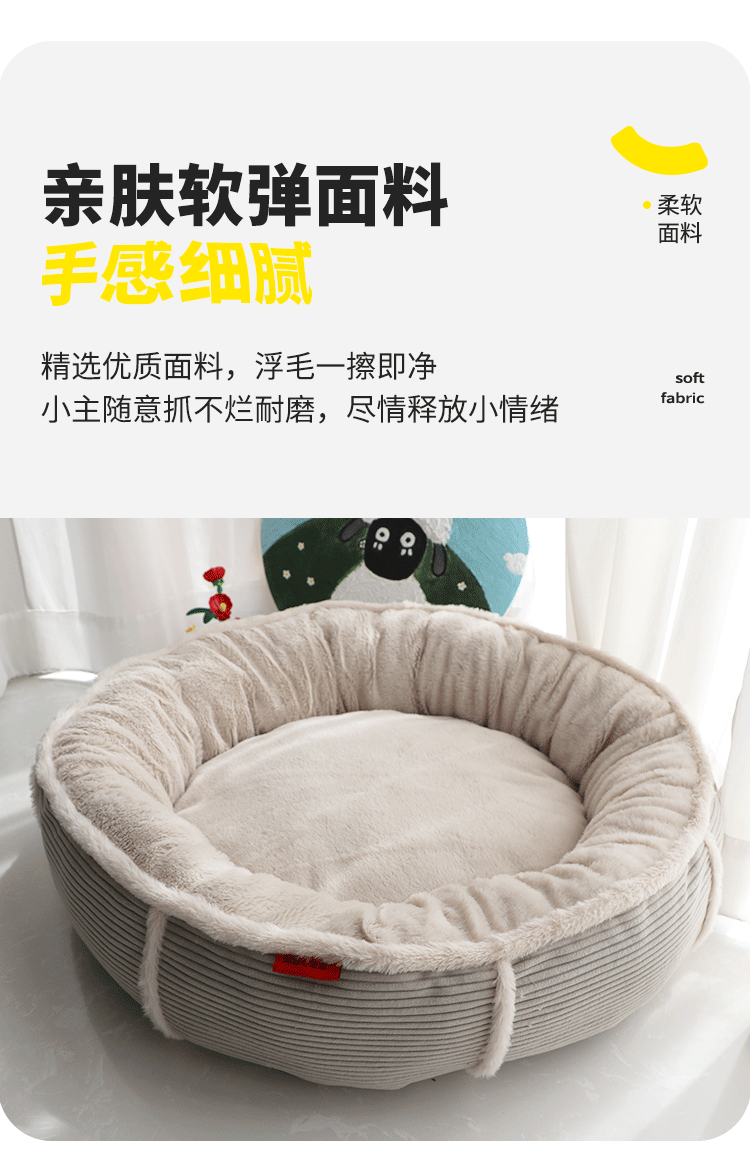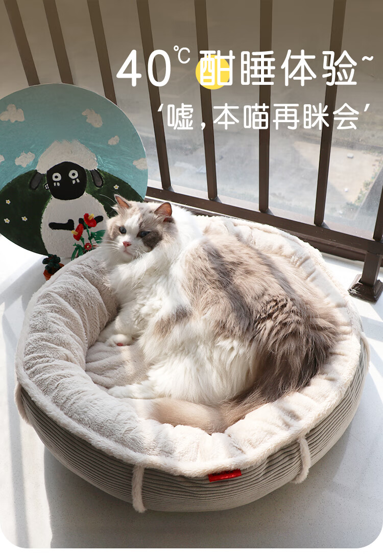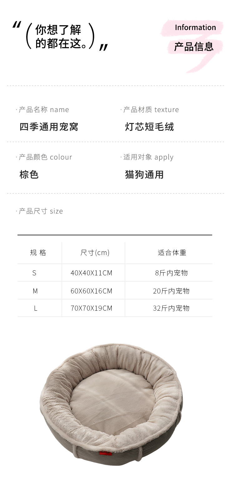 知慧心宠屋四季保暖防寒猫狗灯芯绒兔绒拼块圆窝泰迪中小犬狗床猫狗垫子 M码