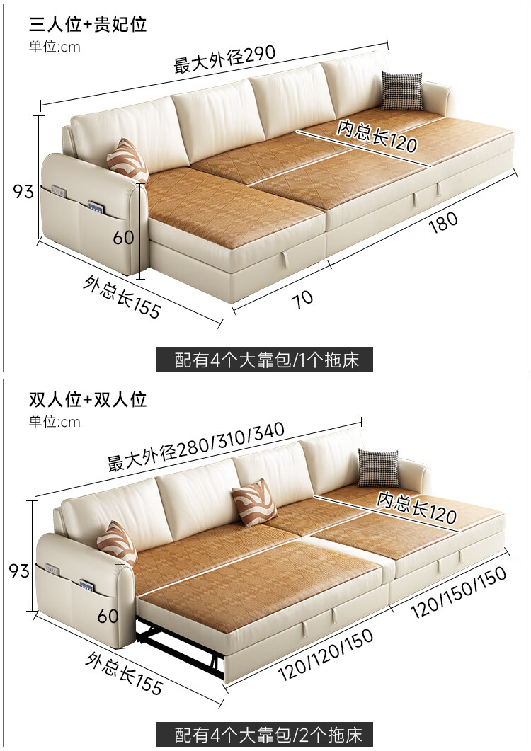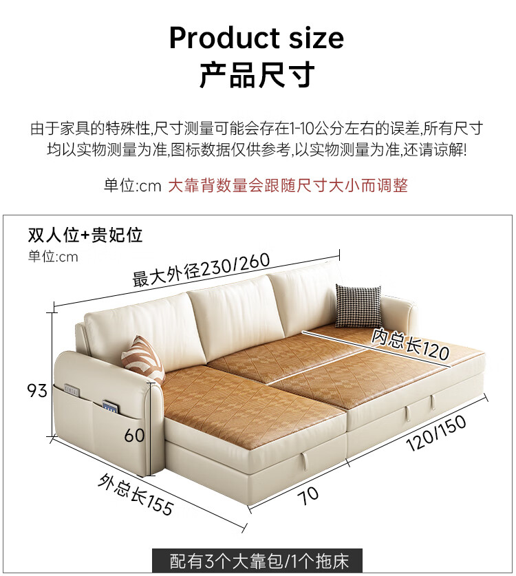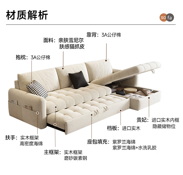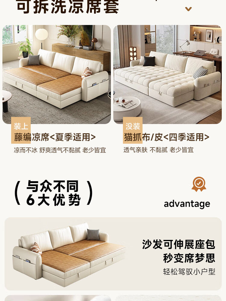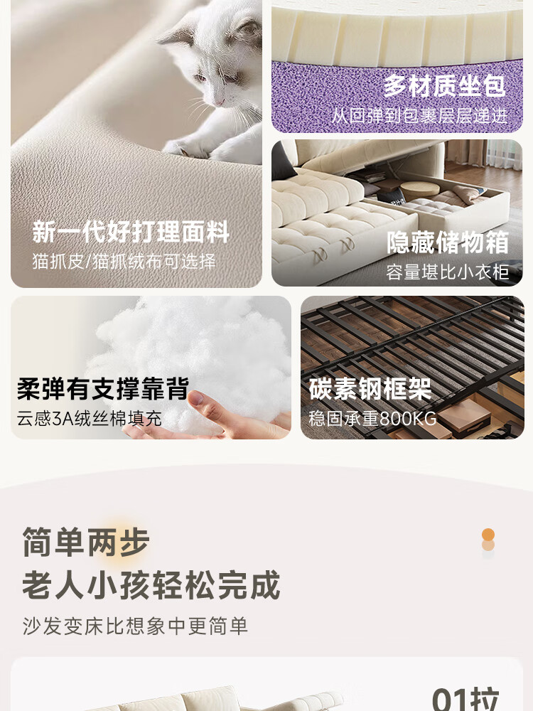 松南雪尼尔贵妃沙发客厅新款多功能现代简约大小户型可折叠直排沙发床 总长1.7m直排:双人位 高弹海绵款(加厚雪尼尔)