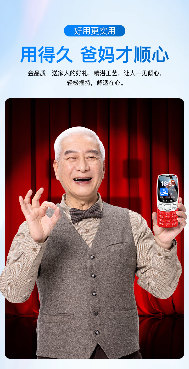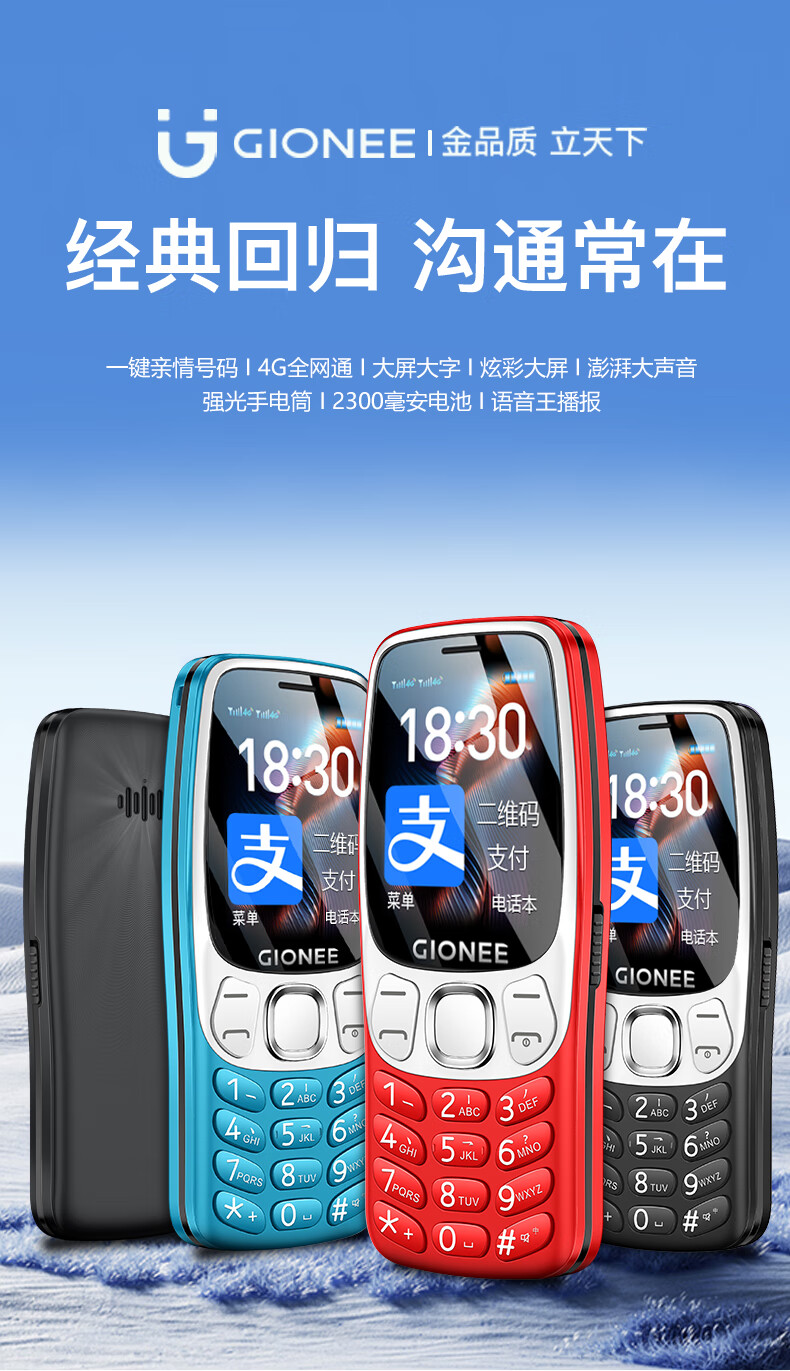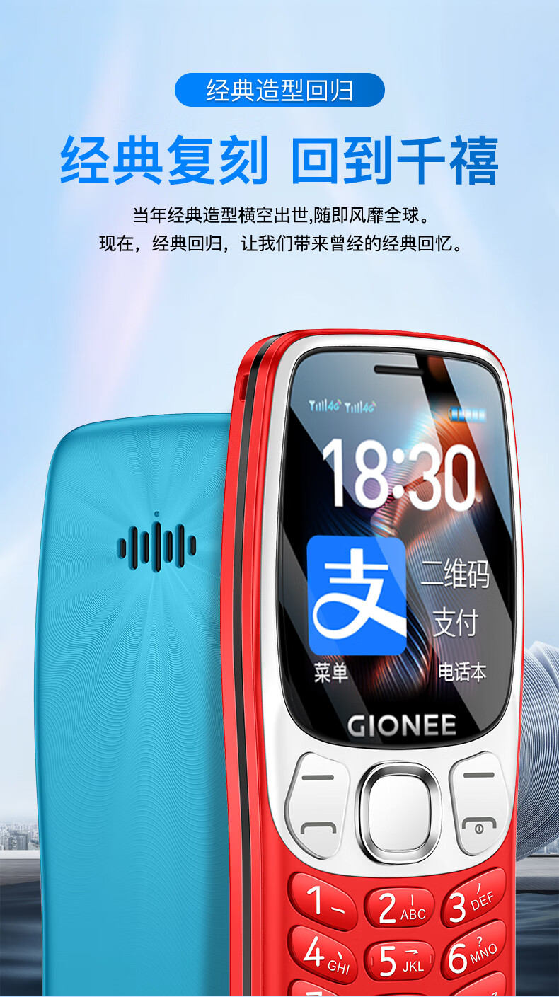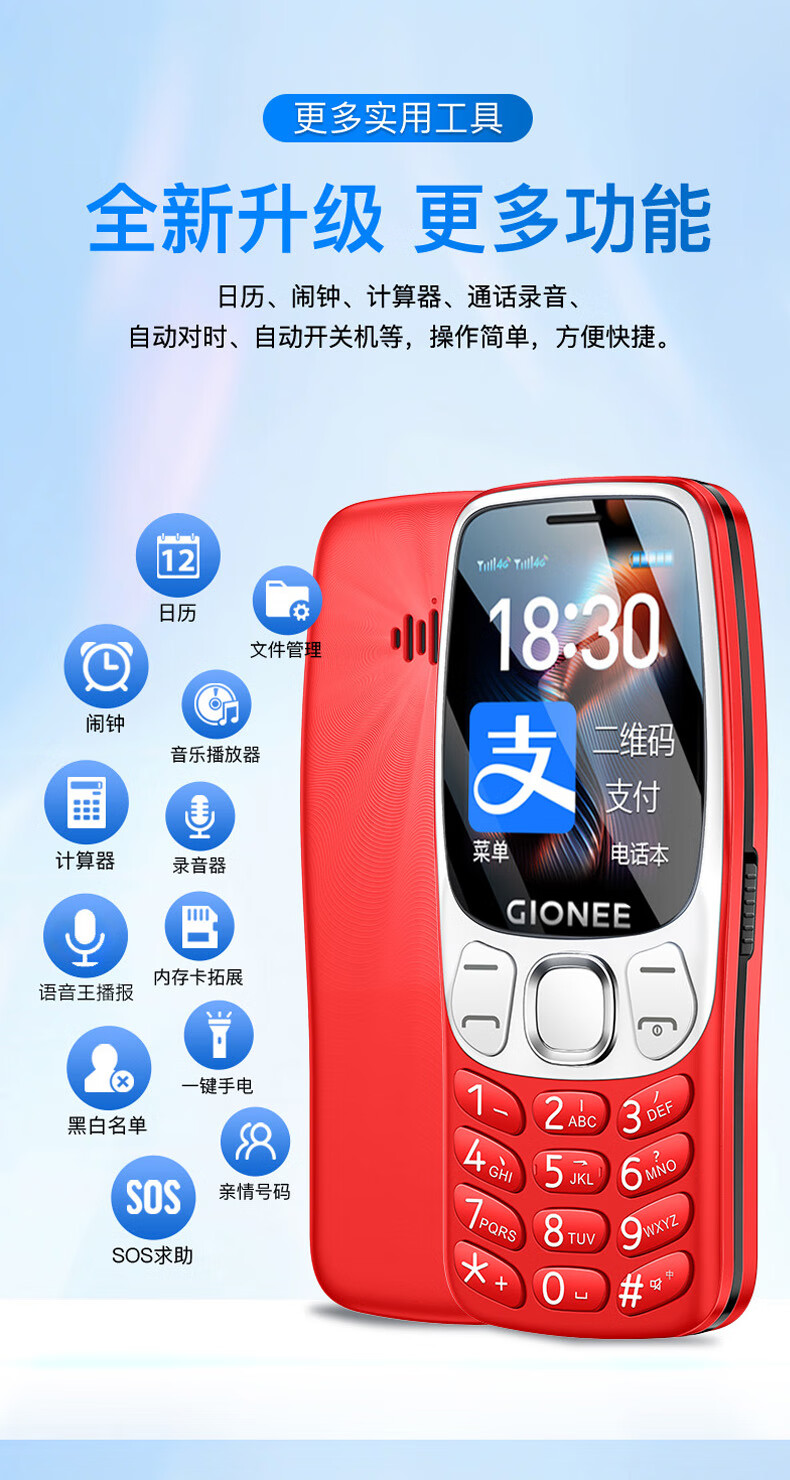 金立(Gionee)老年机4G全网通老年人手机超长待机2025新款大字体大声音移动支付学生老人专用按键功能机G99 红色