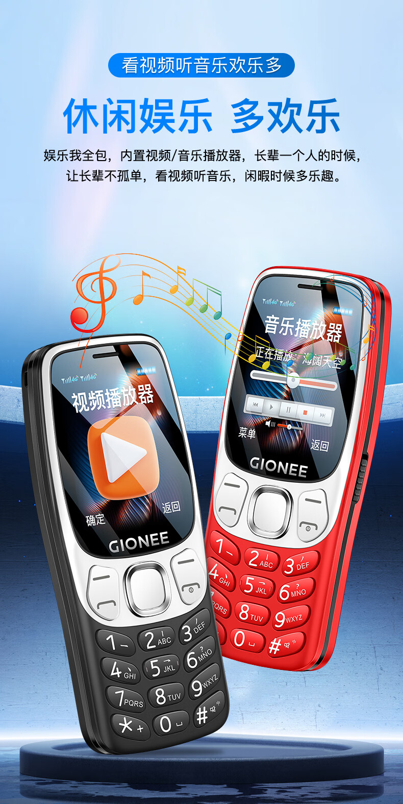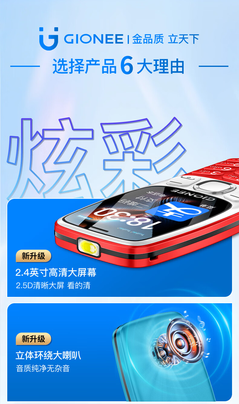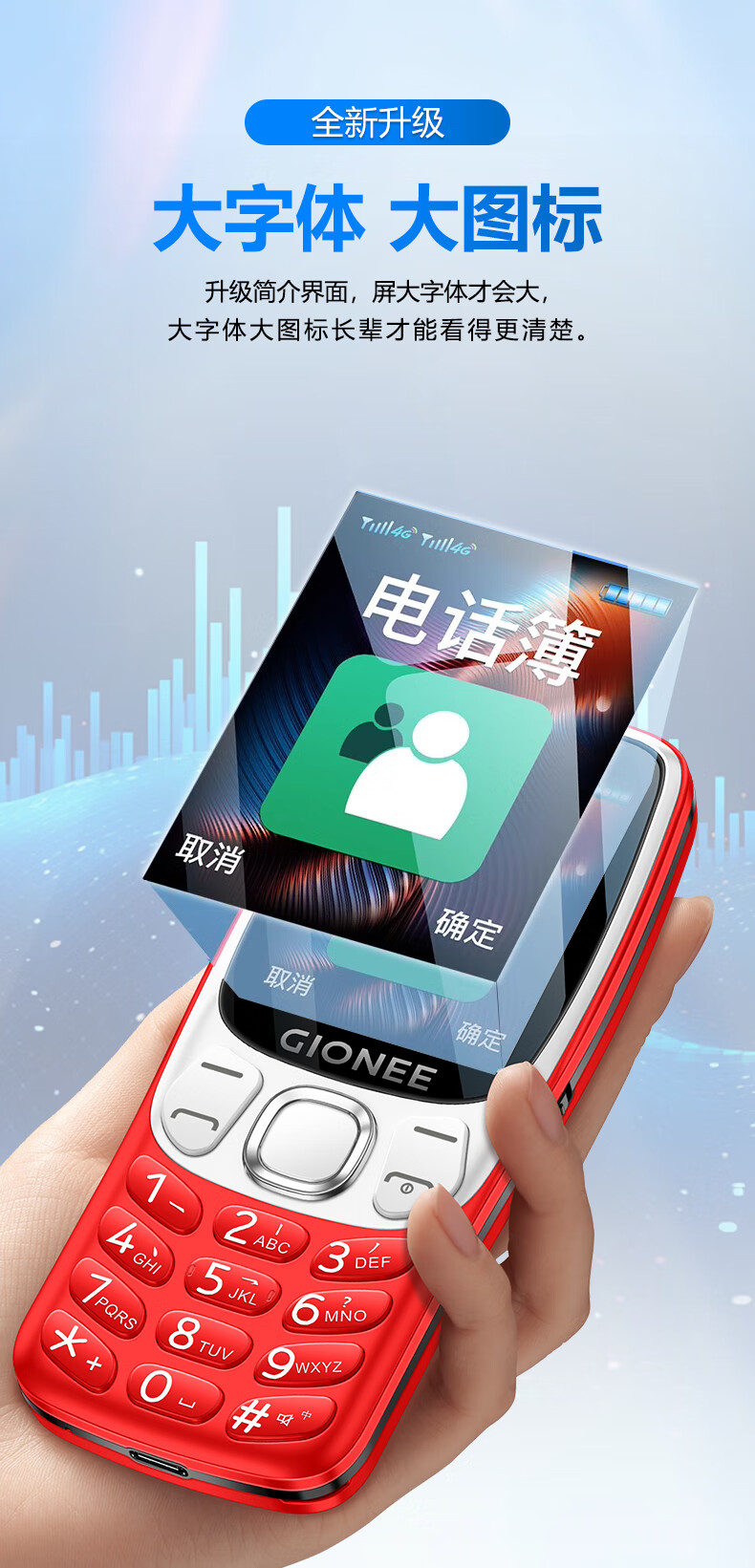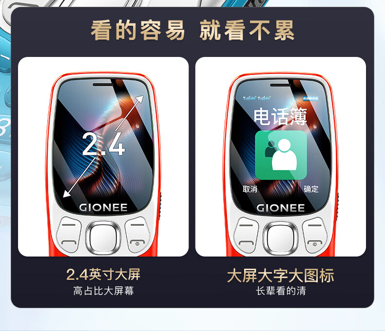 金立(Gionee)老年机4G全网通老年人手机超长待机2025新款大字体大声音移动支付学生老人专用按键功能机G99 红色