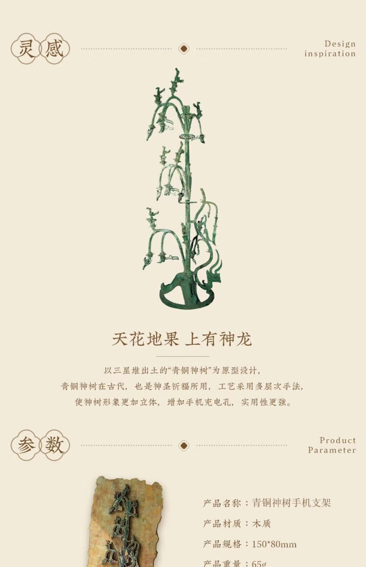 三星堆博物馆文创周边青铜神树简易手机支架懒人专用桌面防抖客厅桌面摆件玄关摆件伴手礼男生礼物女生生日礼物 青铜神树手机支架