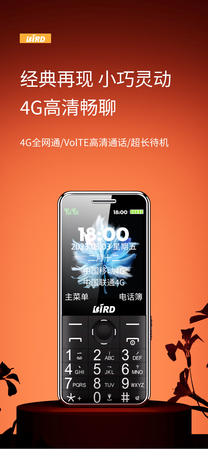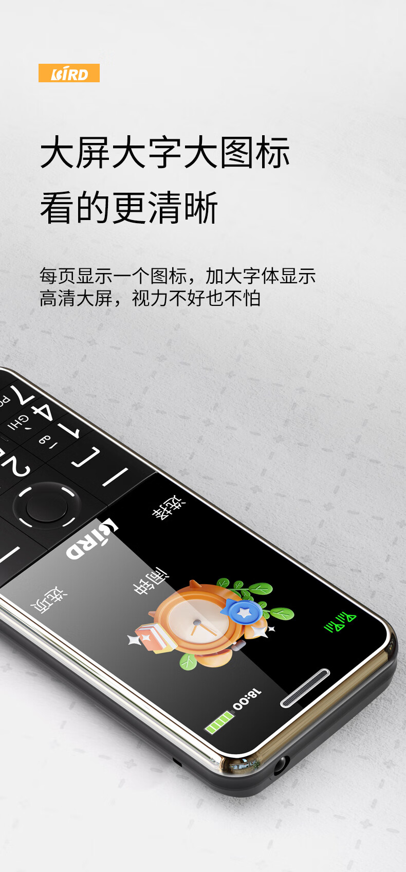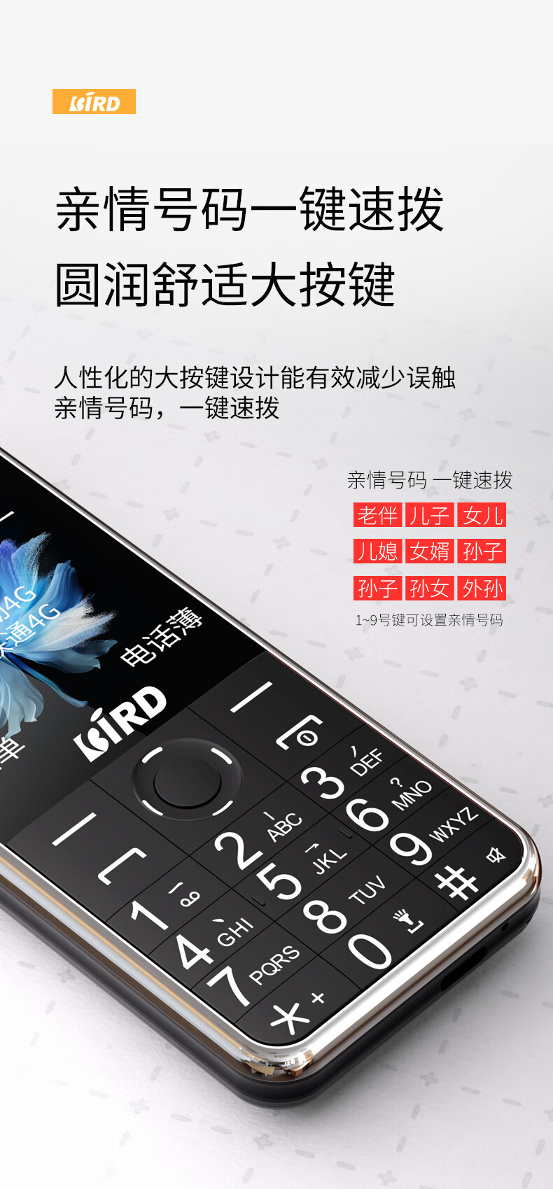 波导(BiRD)D1 老人机学生移动联通电信4G全网通功能机超长待机2025新款老年手机大屏大音量大字体大按键 黑色