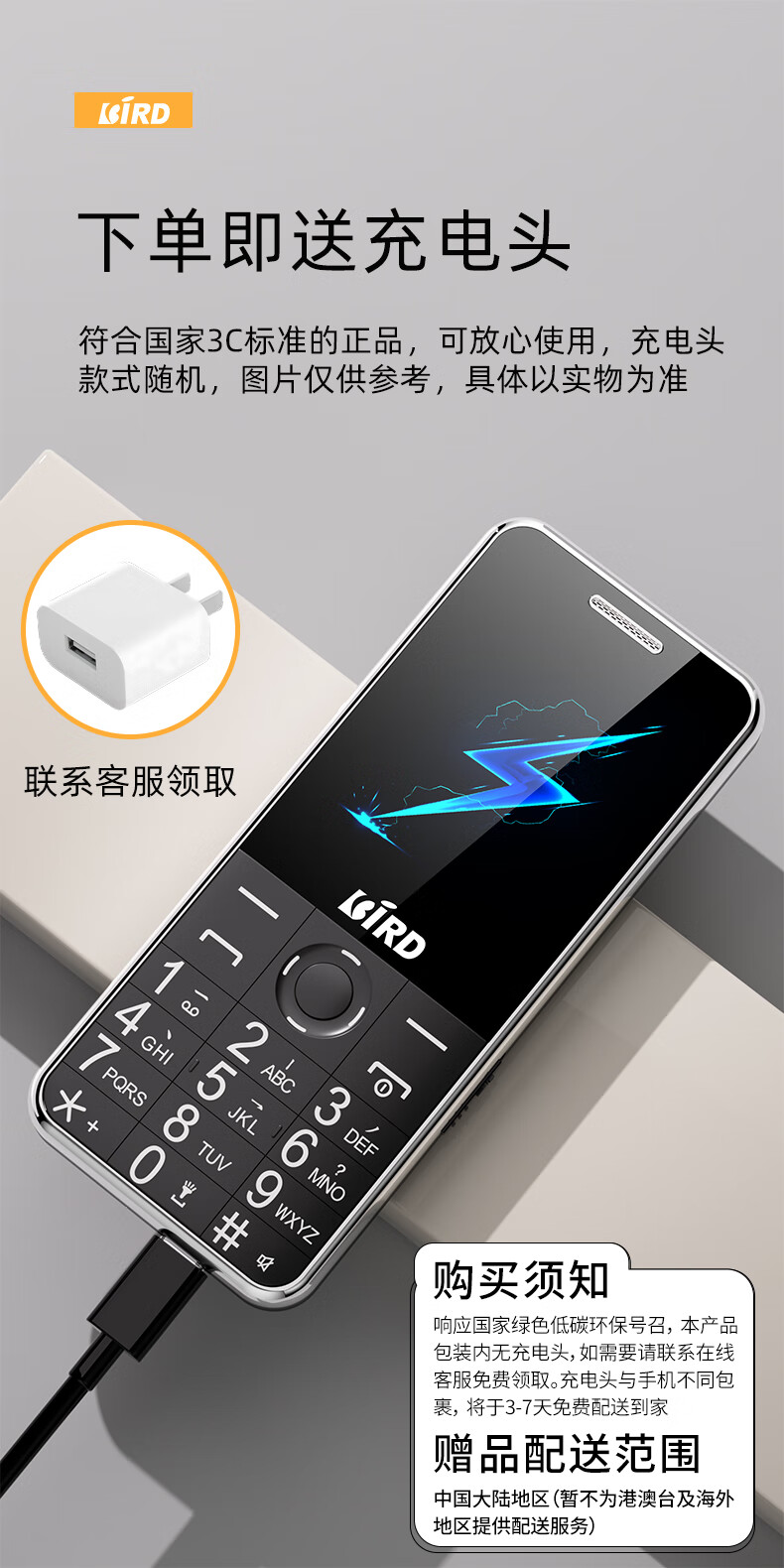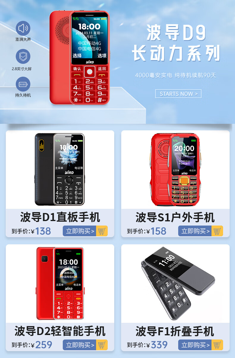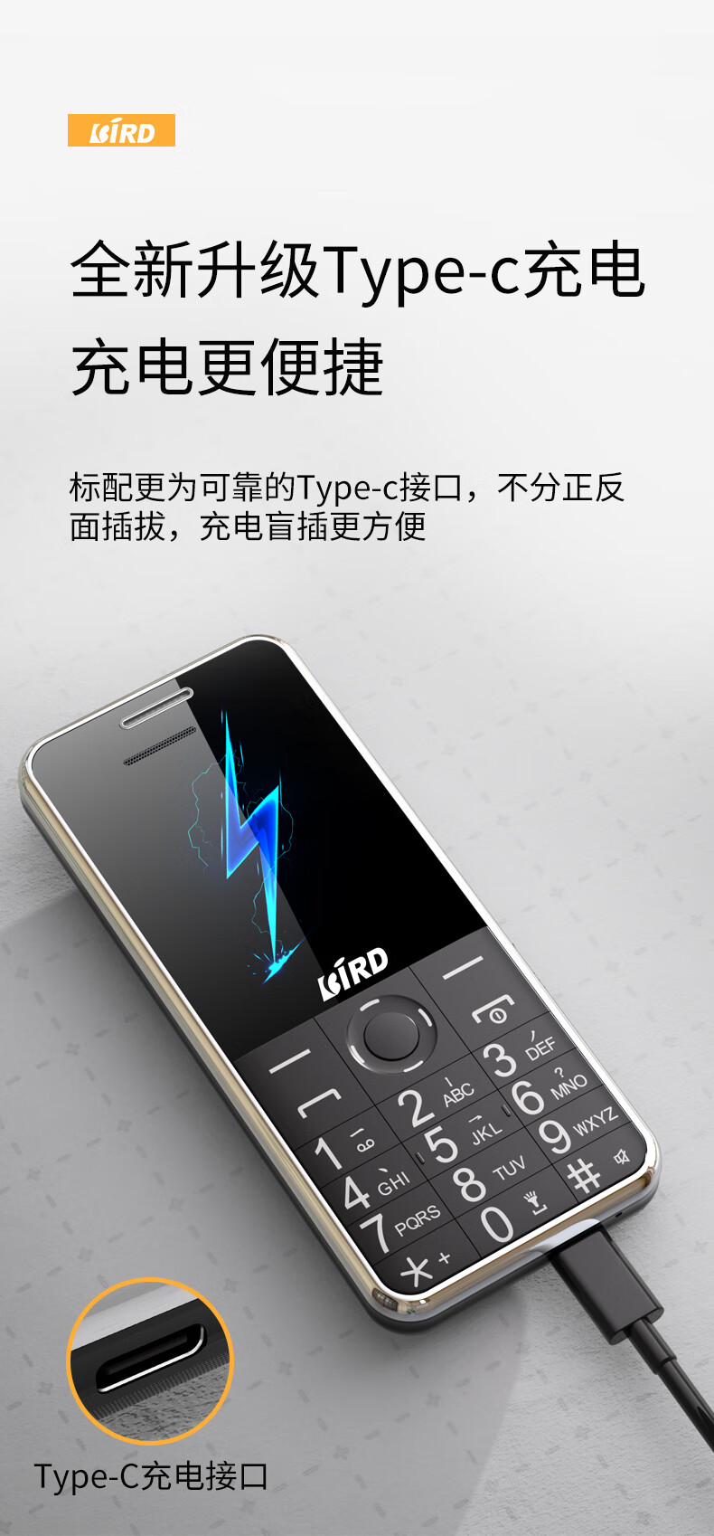 波导(BiRD)D1 老人机学生移动联通电信4G全网通功能机超长待机2025新款老年手机大屏大音量大字体大按键 黑色