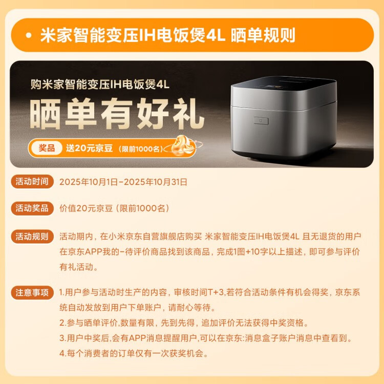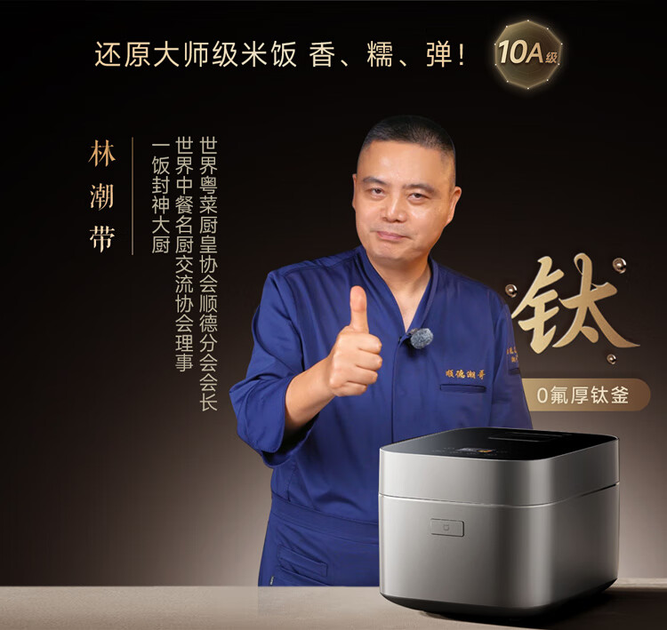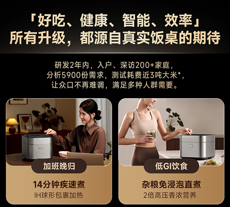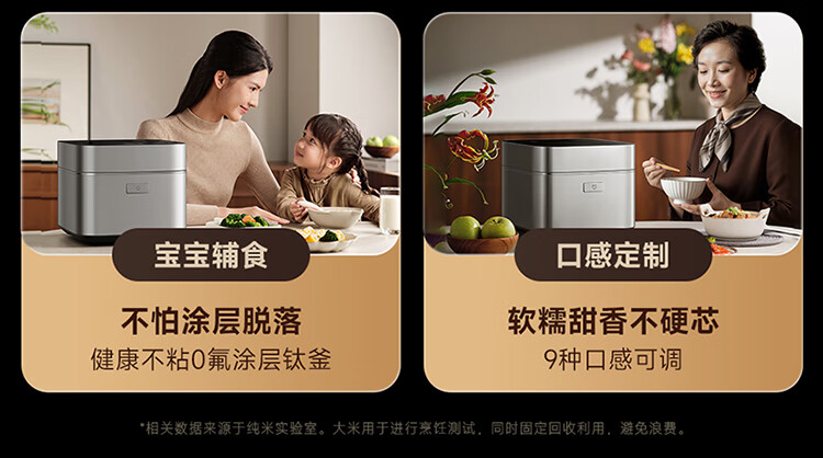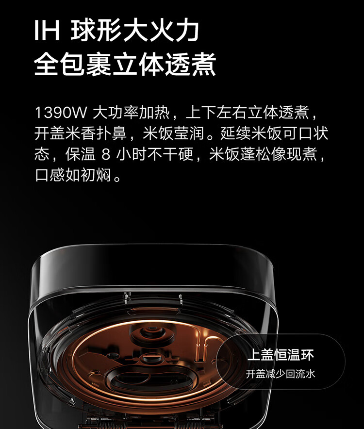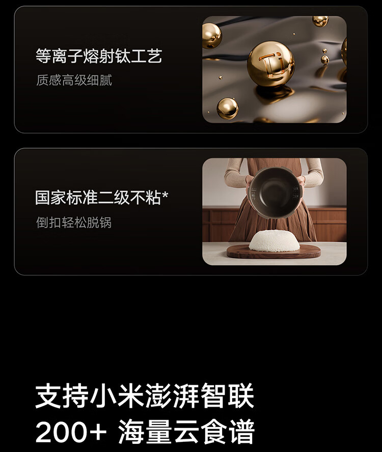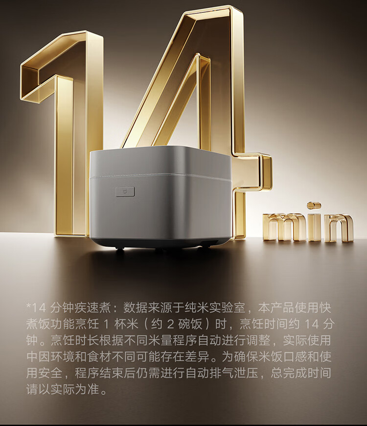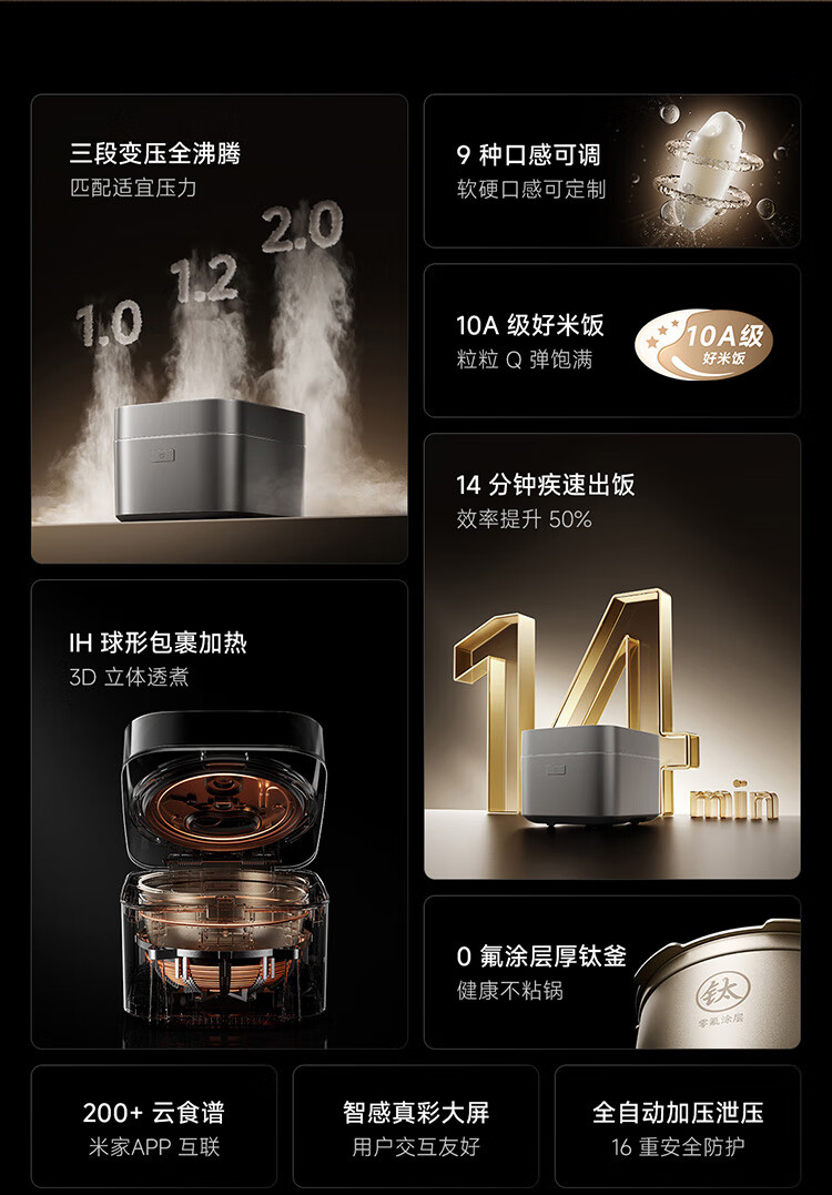 米家小米电饭煲0氟涂层钛内胆不粘4L家用4-5人 IH变压3D加热 14分钟快煮 智能APP多功能煮饭锅煮粥锅