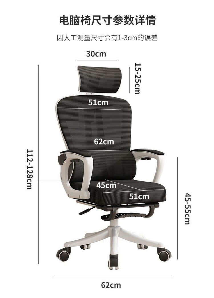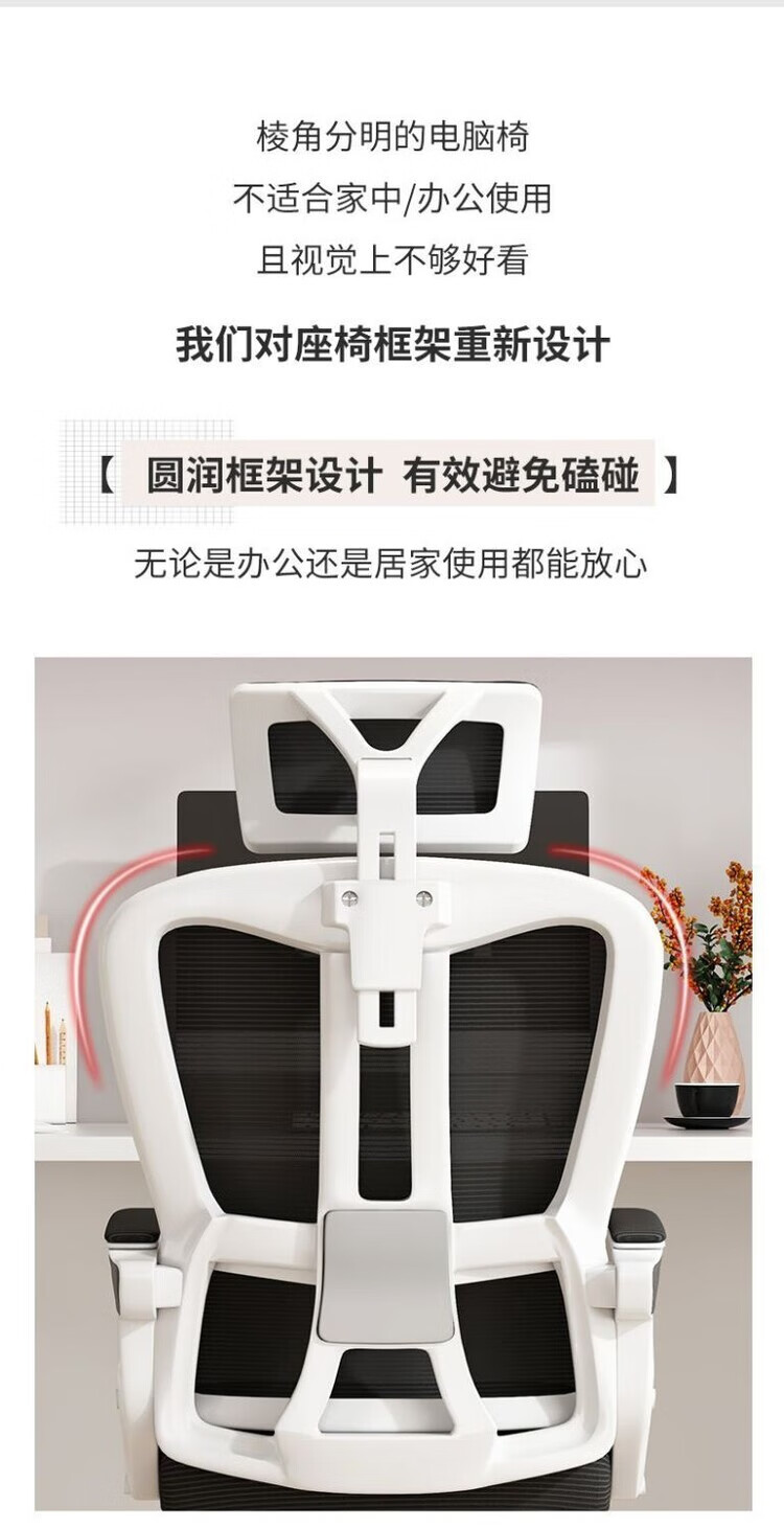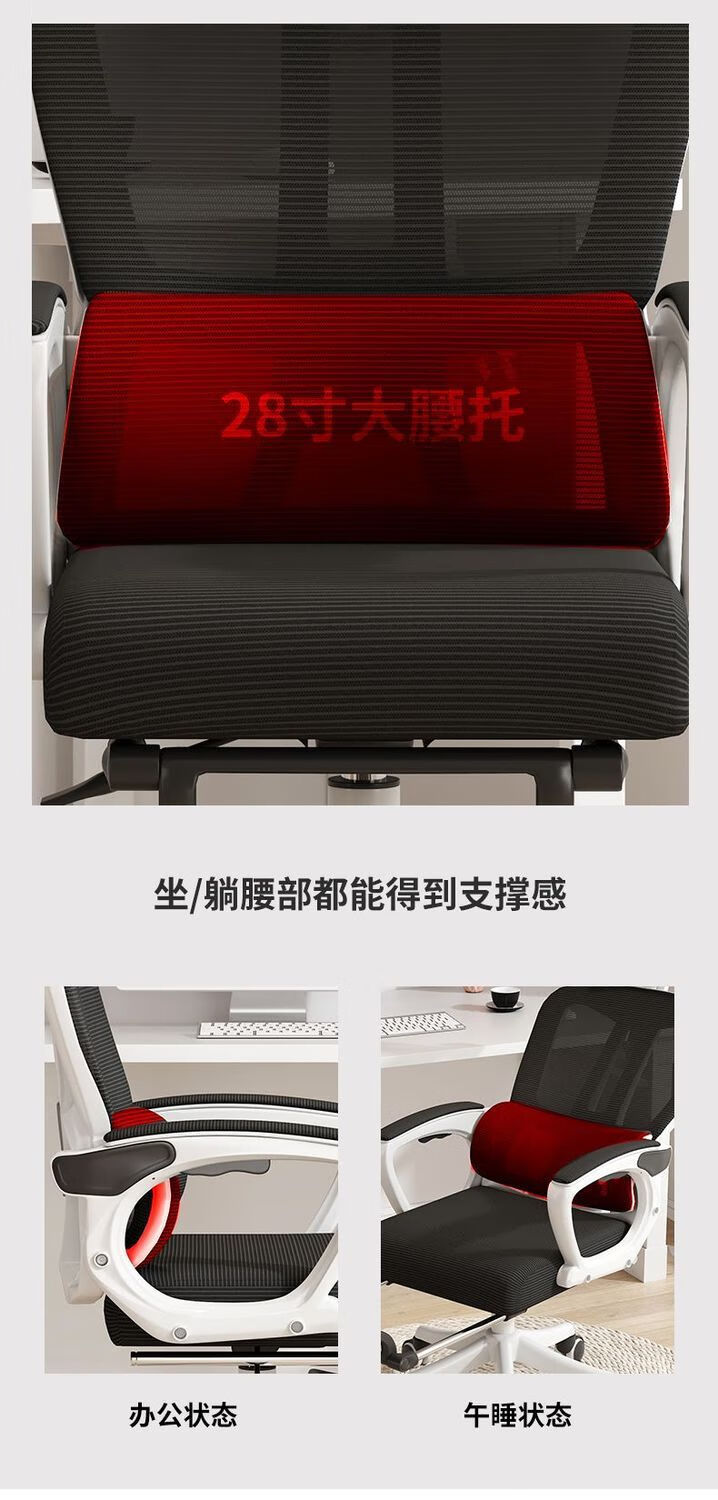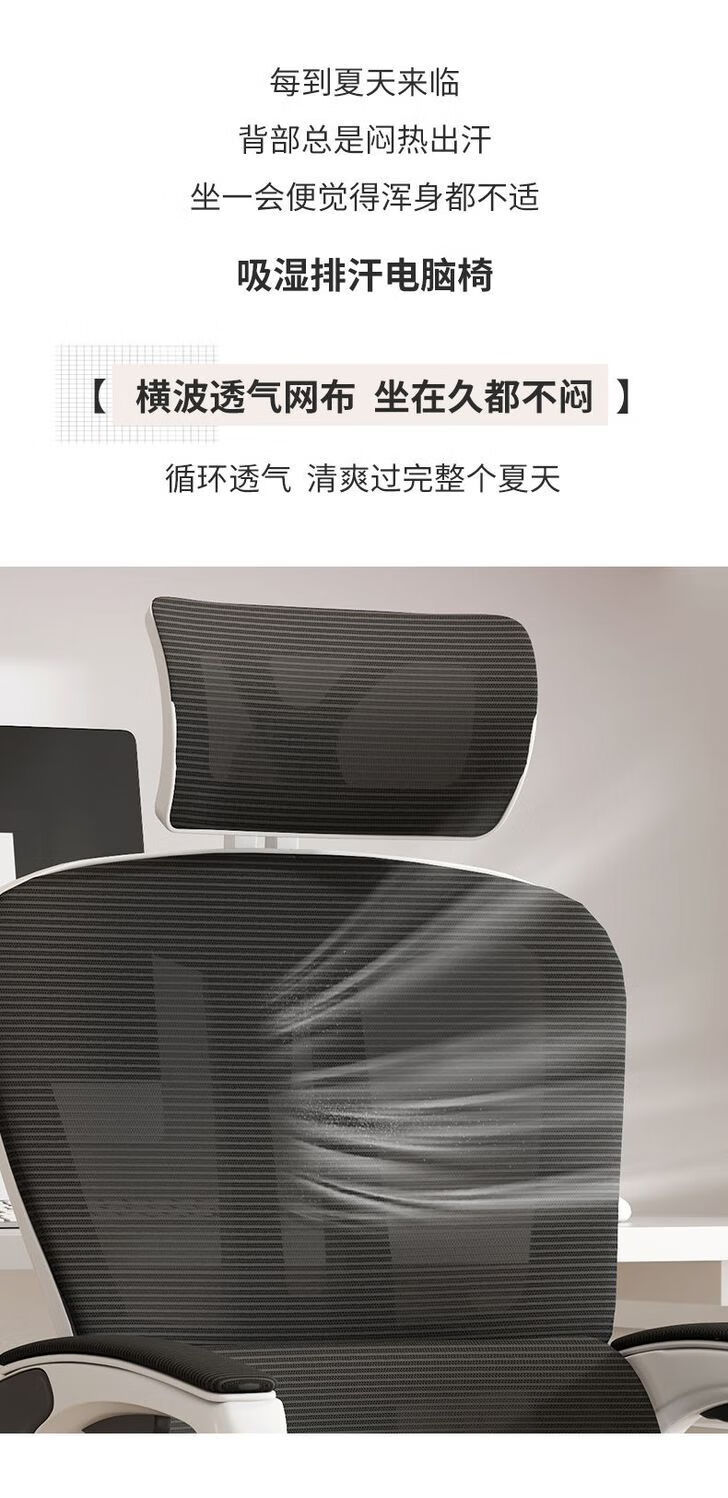 弘星隆电脑椅家用人体工学椅子靠背学习写字椅书房座椅办公椅电竞游戏椅 白框黑网可躺丨3D腰靠+3D头枕