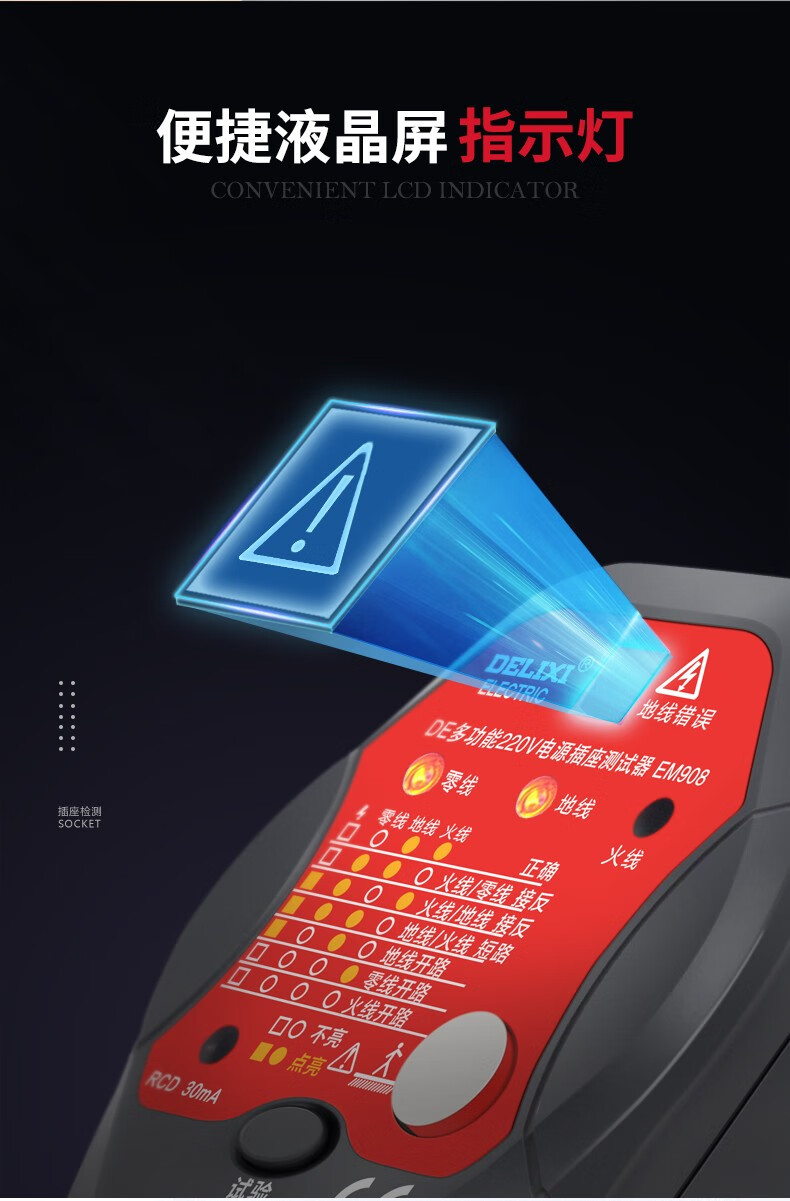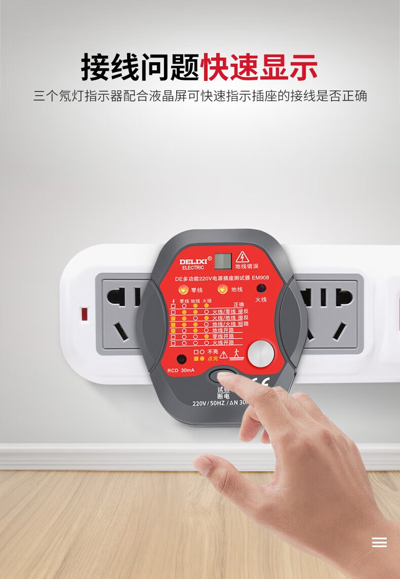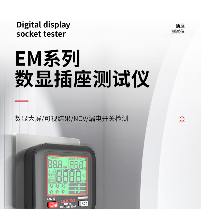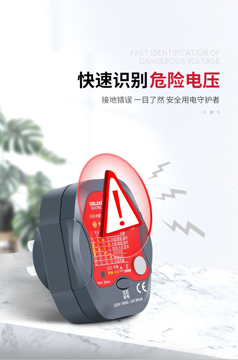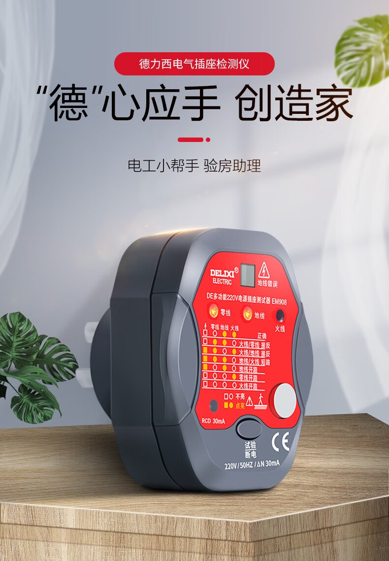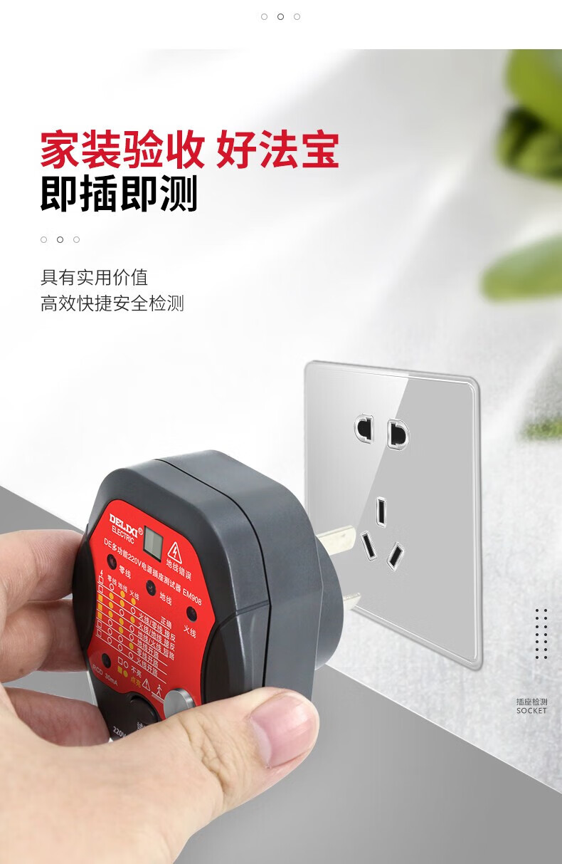 德力西(DELIXI)开关插座验电器检测器 相位极性漏电电源零线地线火线开关器 数显插座检测仪