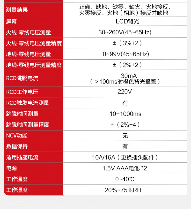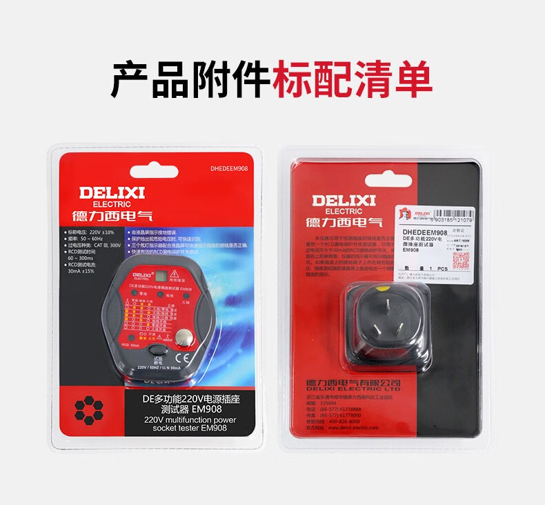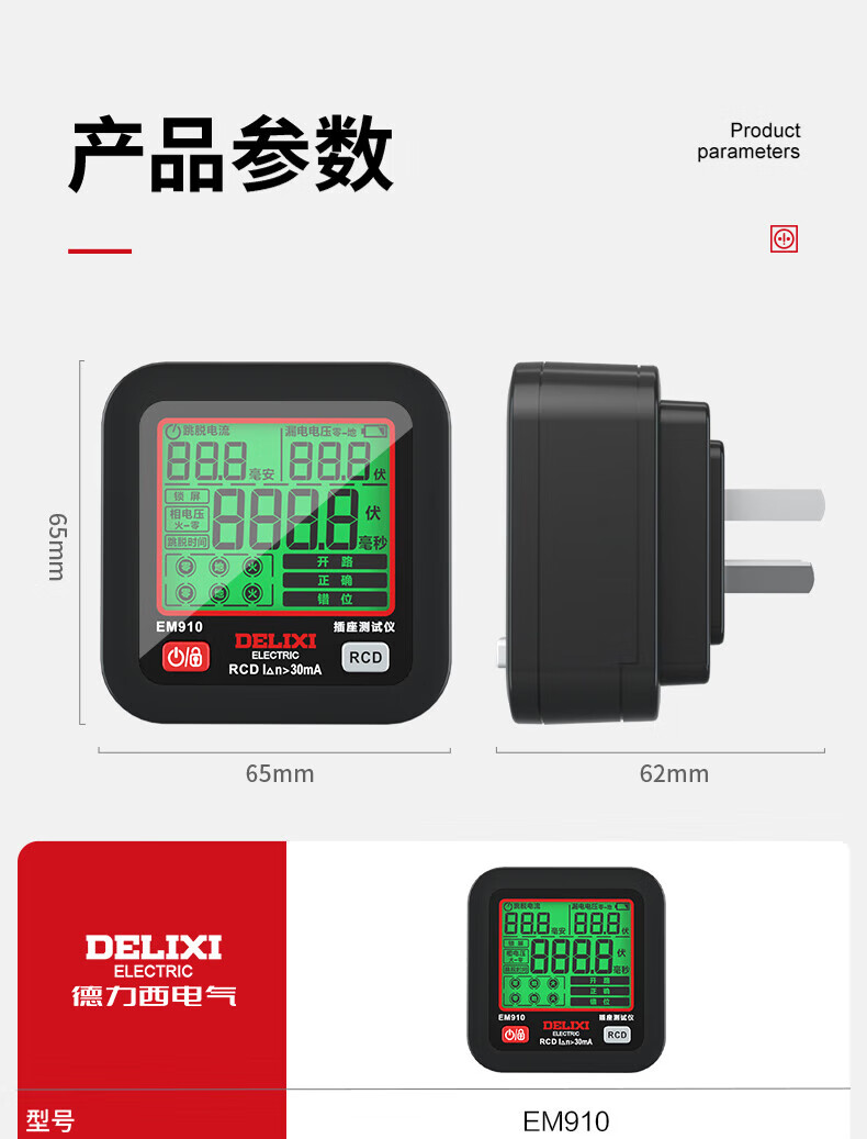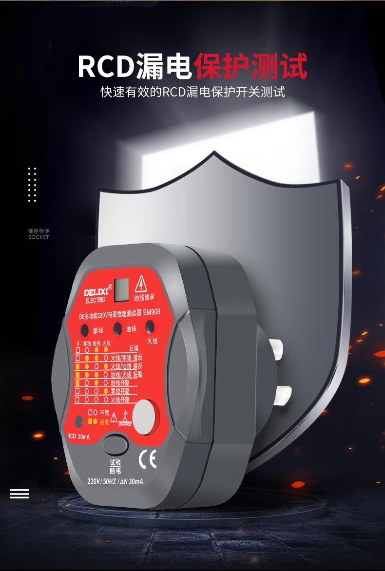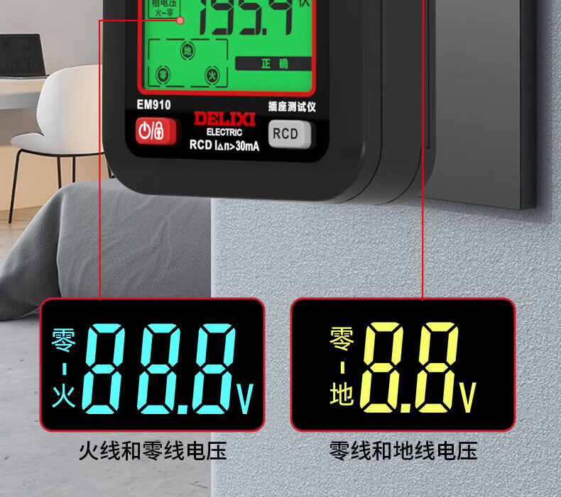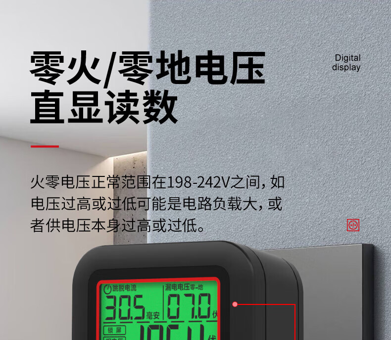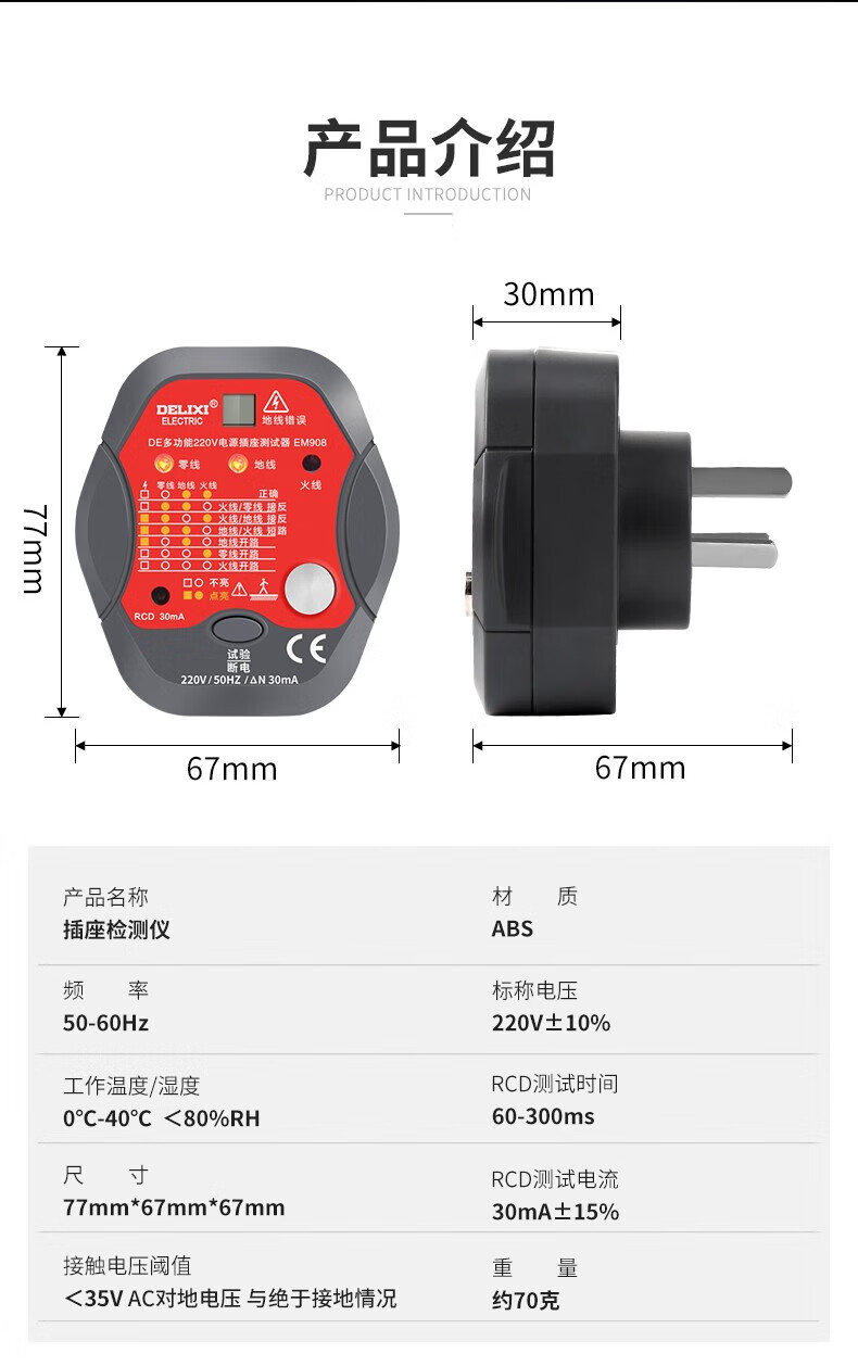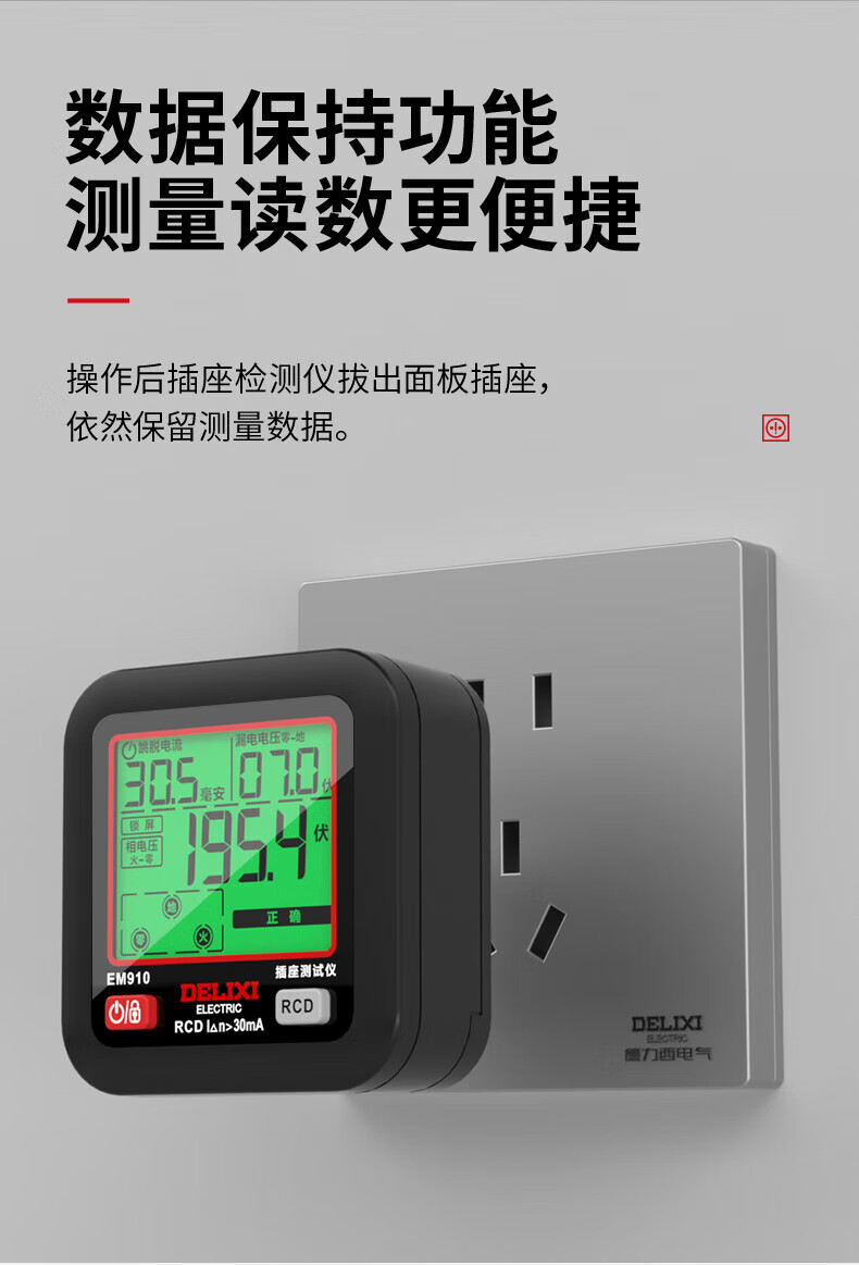 德力西(DELIXI)开关插座验电器检测器 相位极性漏电电源零线地线火线开关器 数显插座检测仪