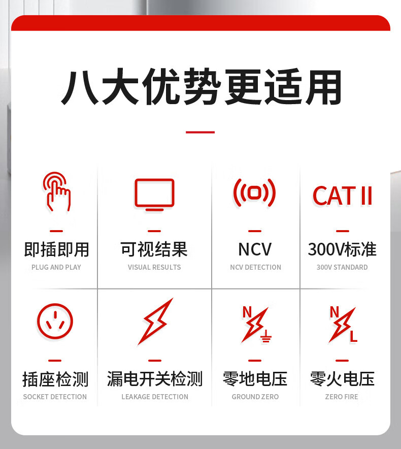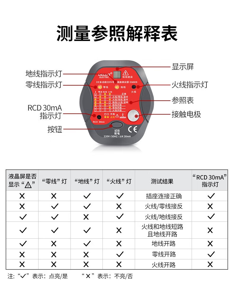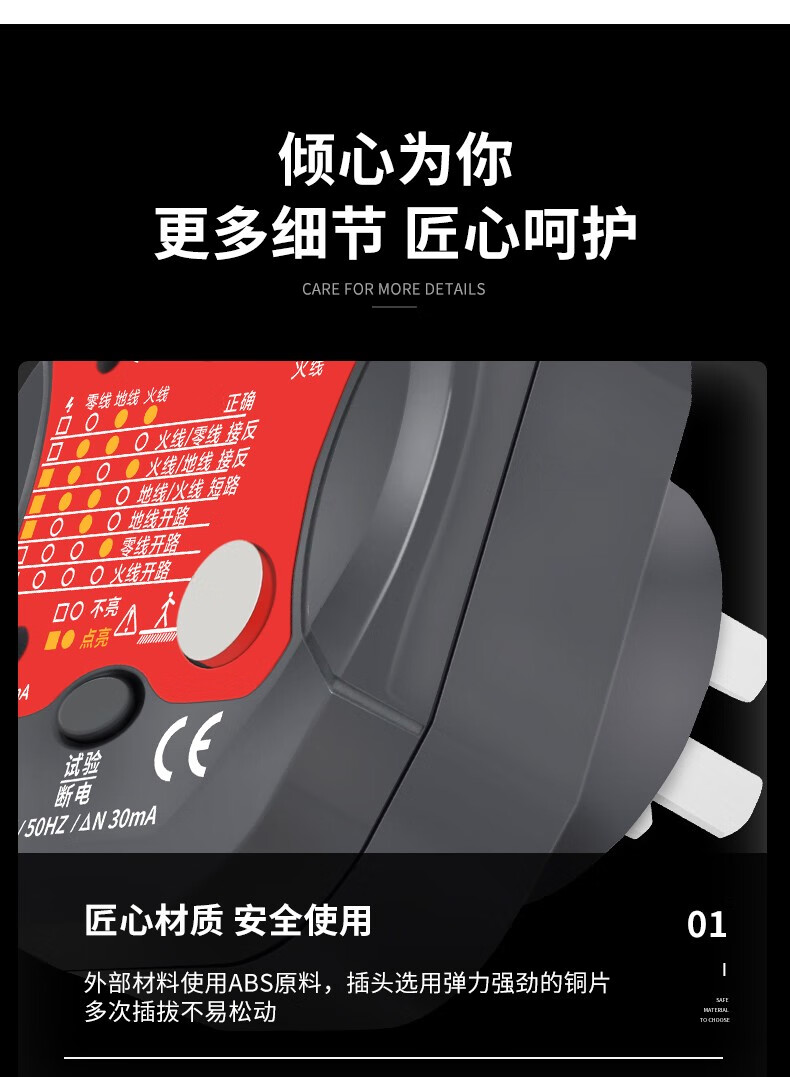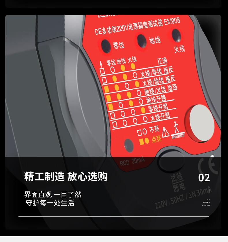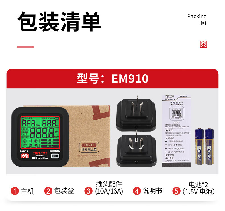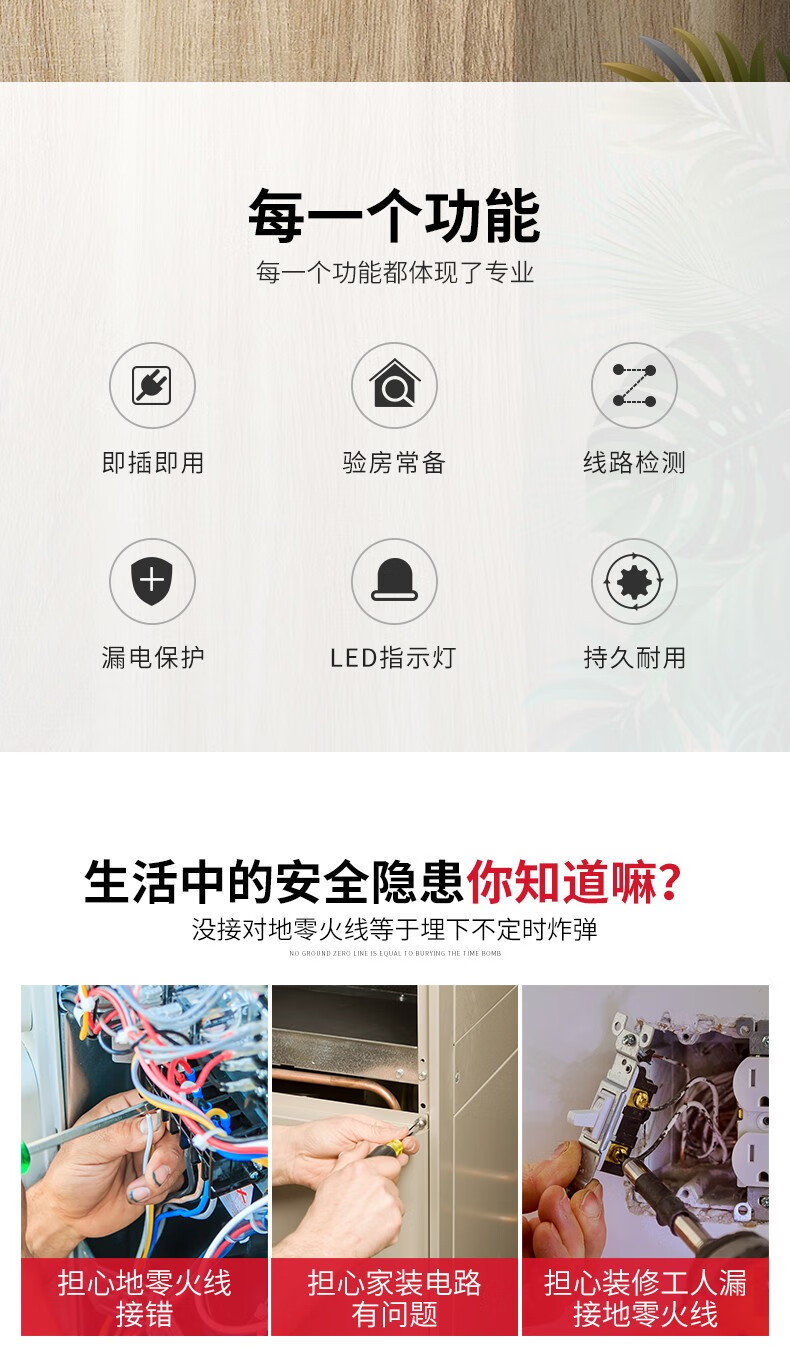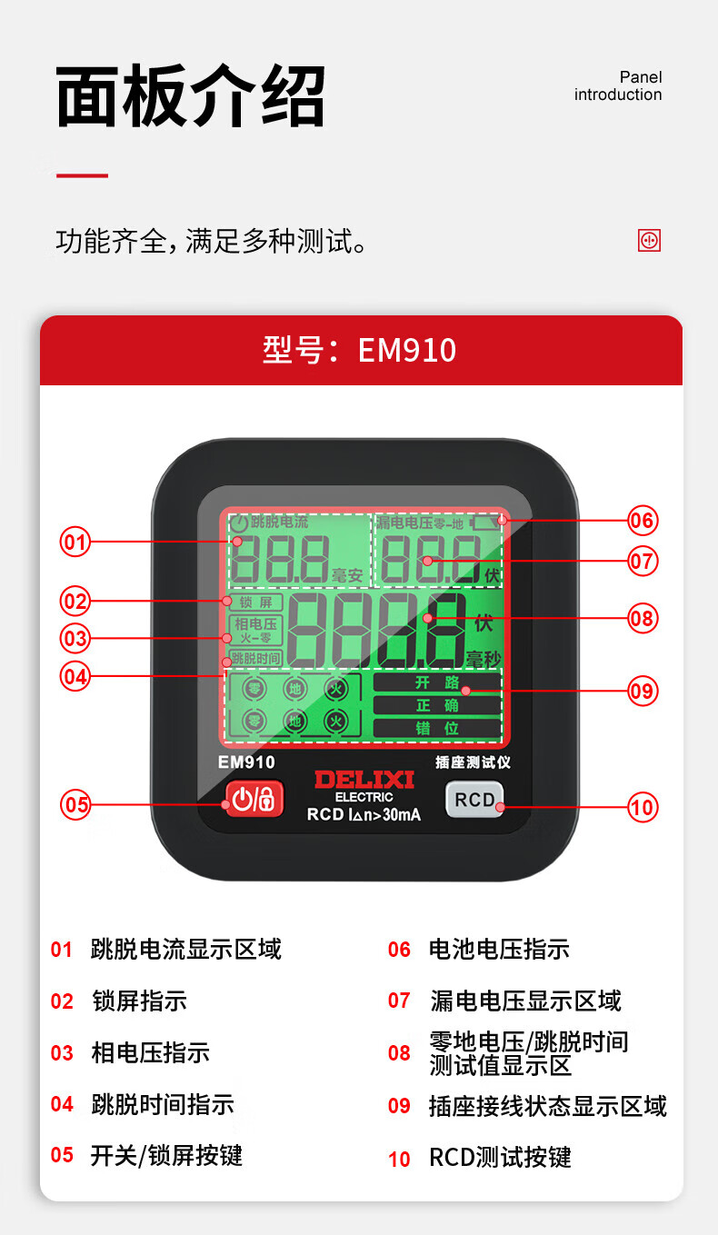 德力西(DELIXI)开关插座验电器检测器 相位极性漏电电源零线地线火线开关器 数显插座检测仪