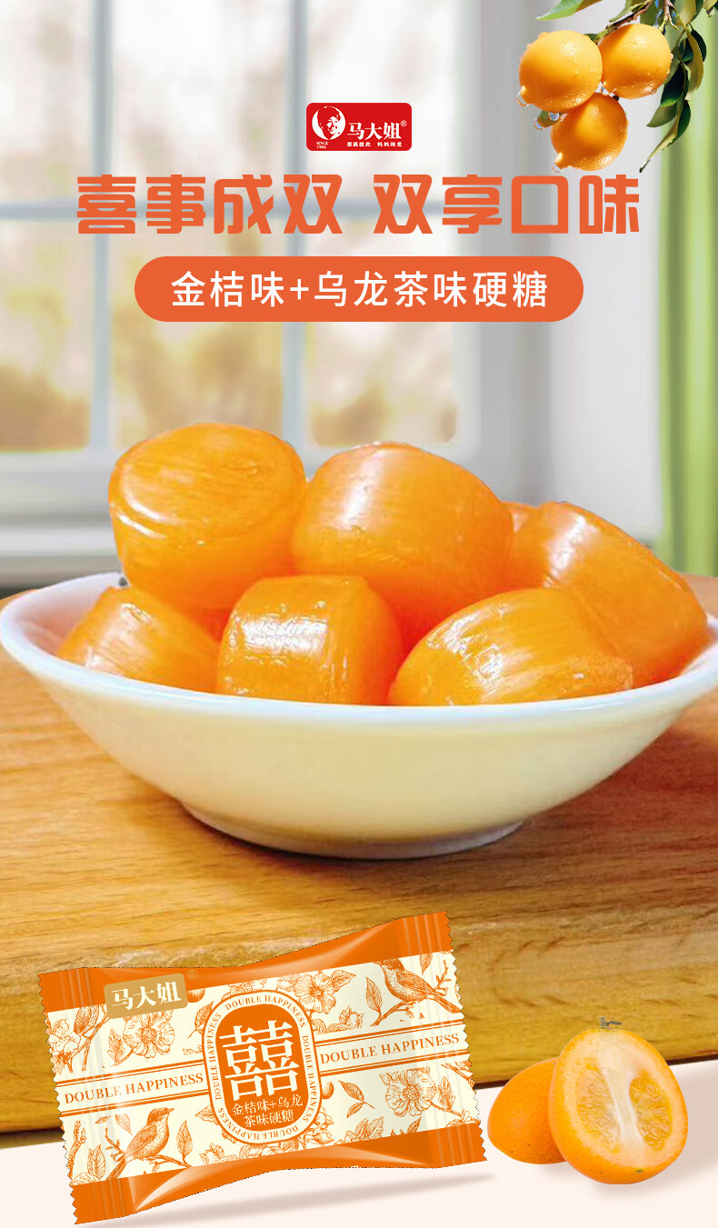 马大姐 喜糖 金桔味乌龙茶味糖果500g 伴手礼 结婚 定亲 满月喜事硬糖