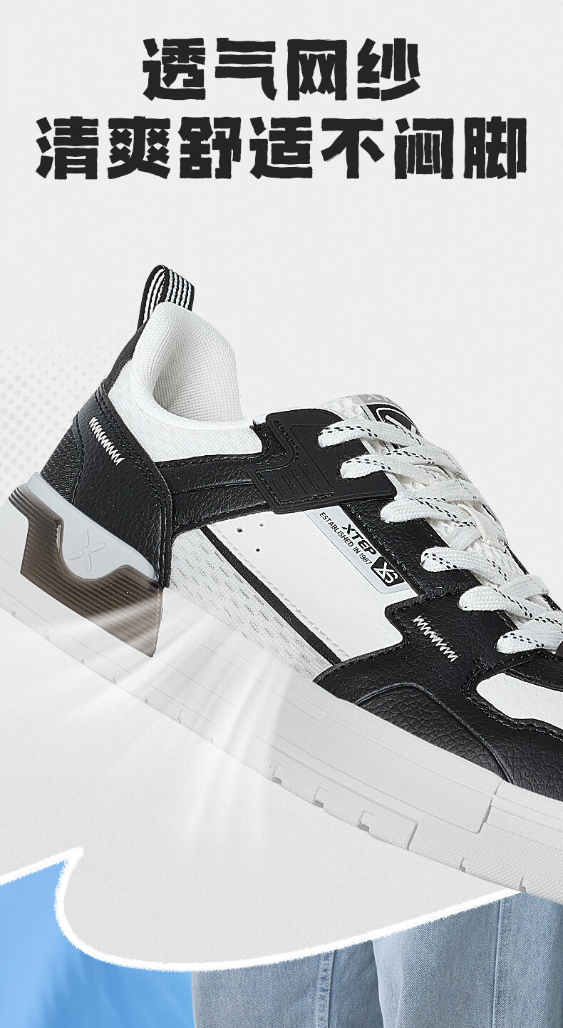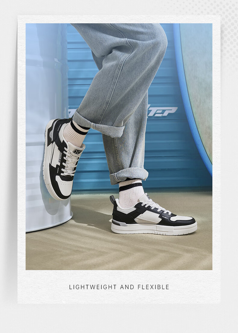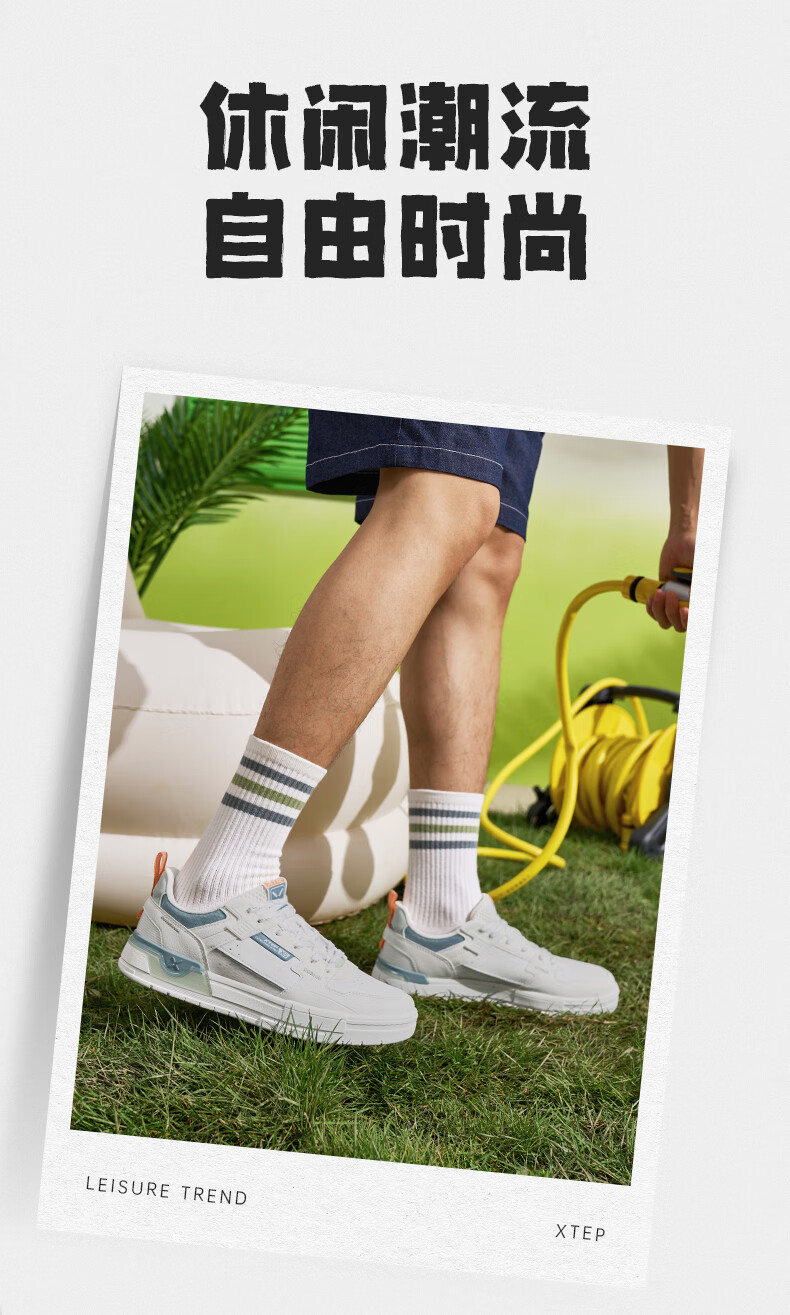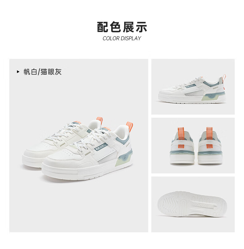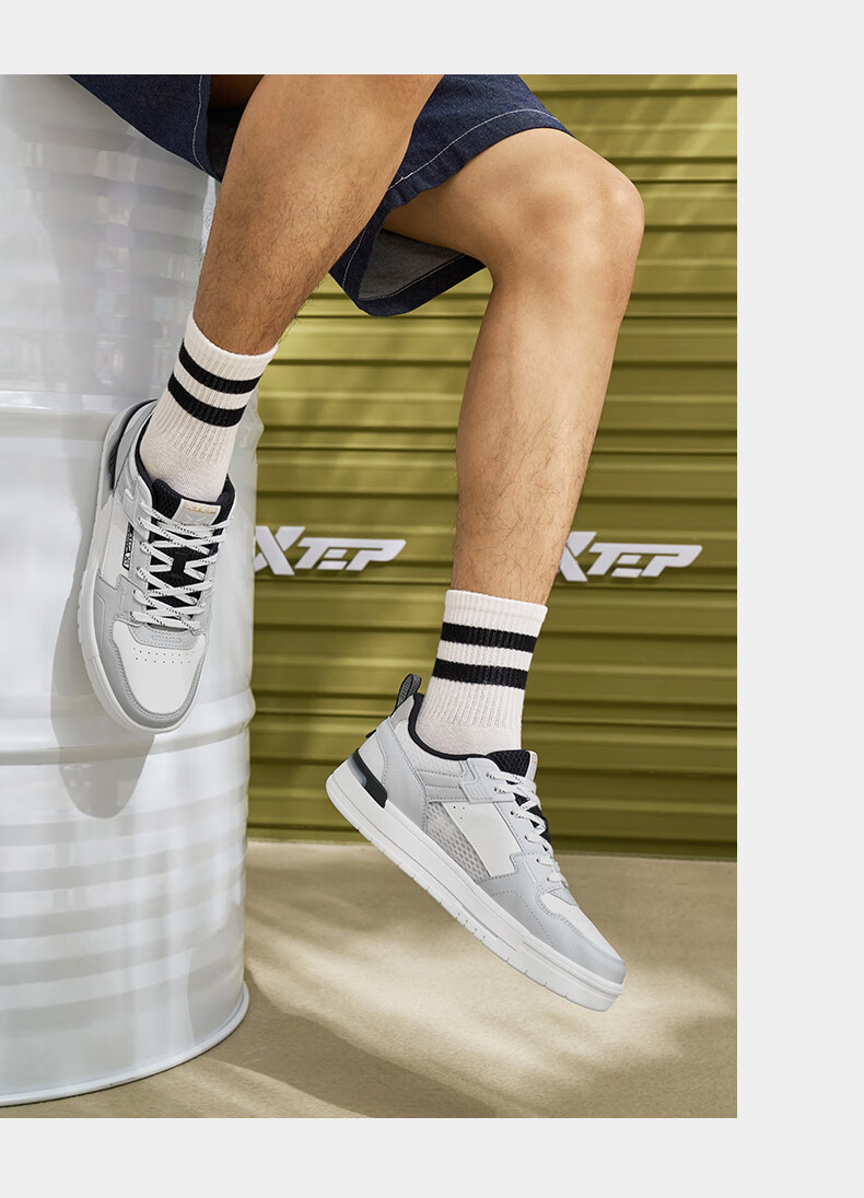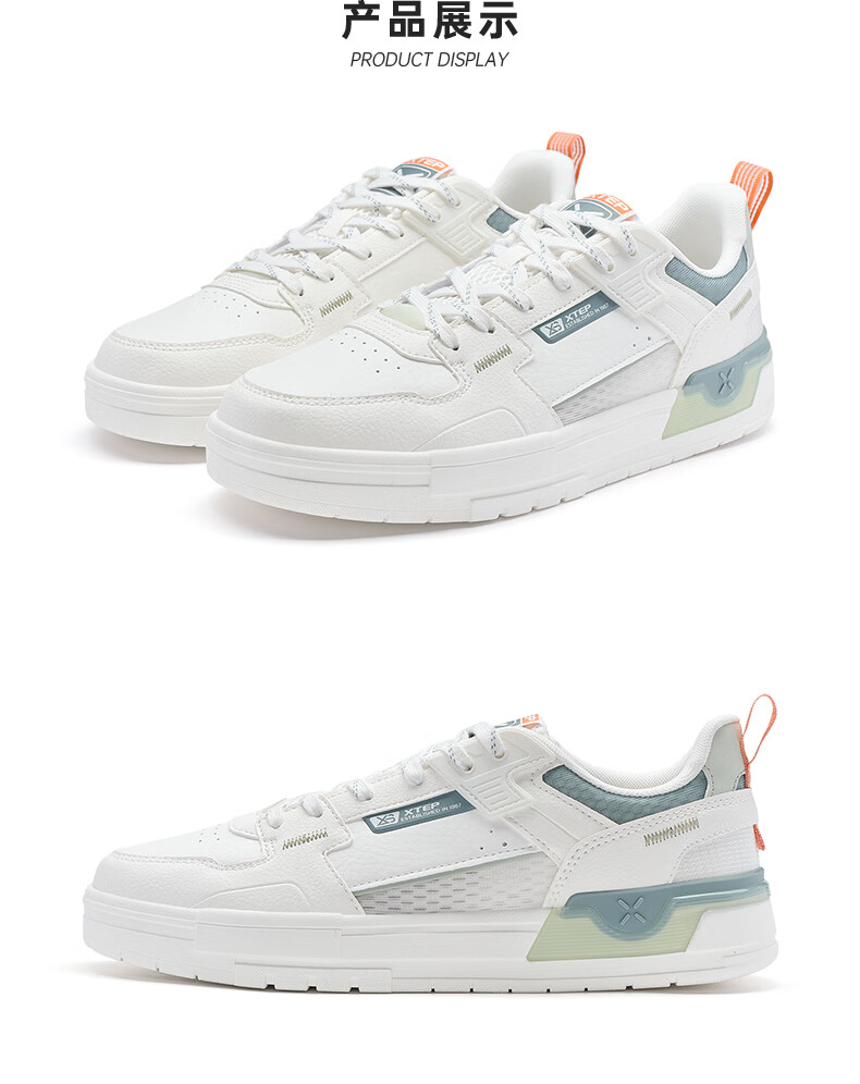 特步裂变板鞋男夏季新款厚底休闲鞋时尚百搭滑板鞋976219310036 月石灰/帆白(男) 42
