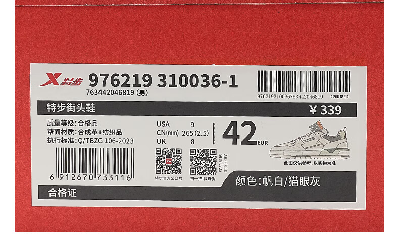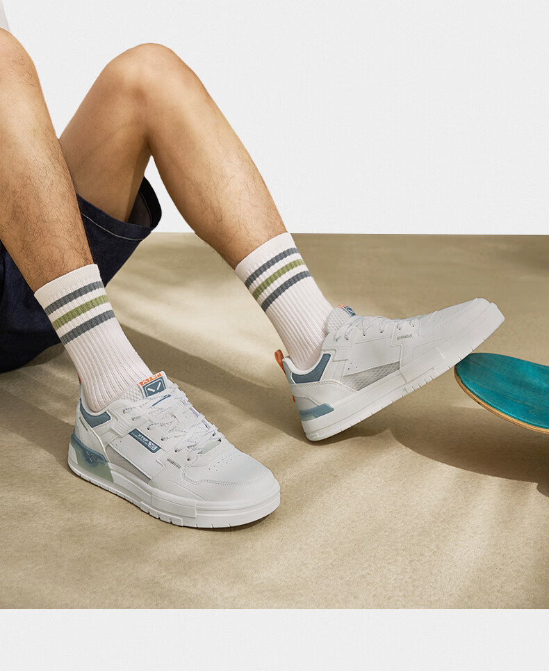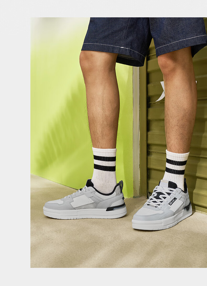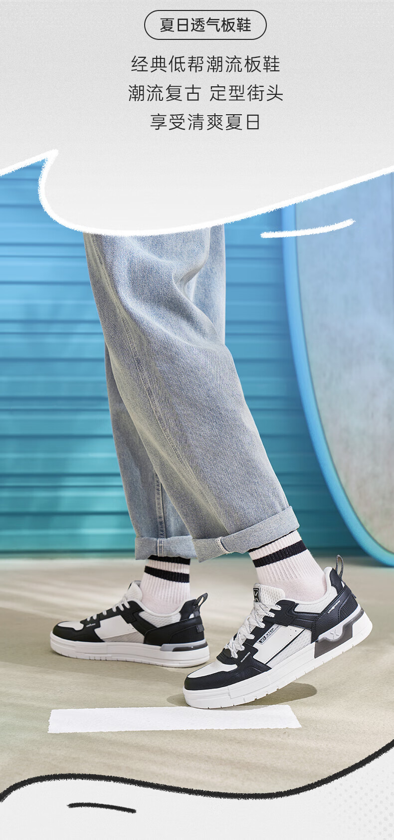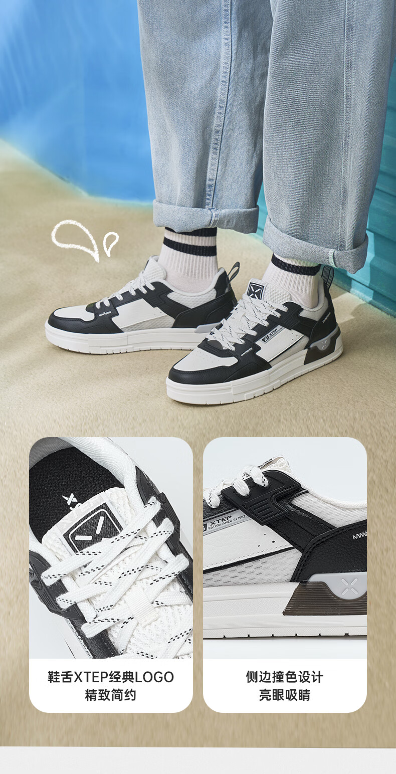 特步裂变板鞋男夏季新款厚底休闲鞋时尚百搭滑板鞋976219310036 月石灰/帆白(男) 42