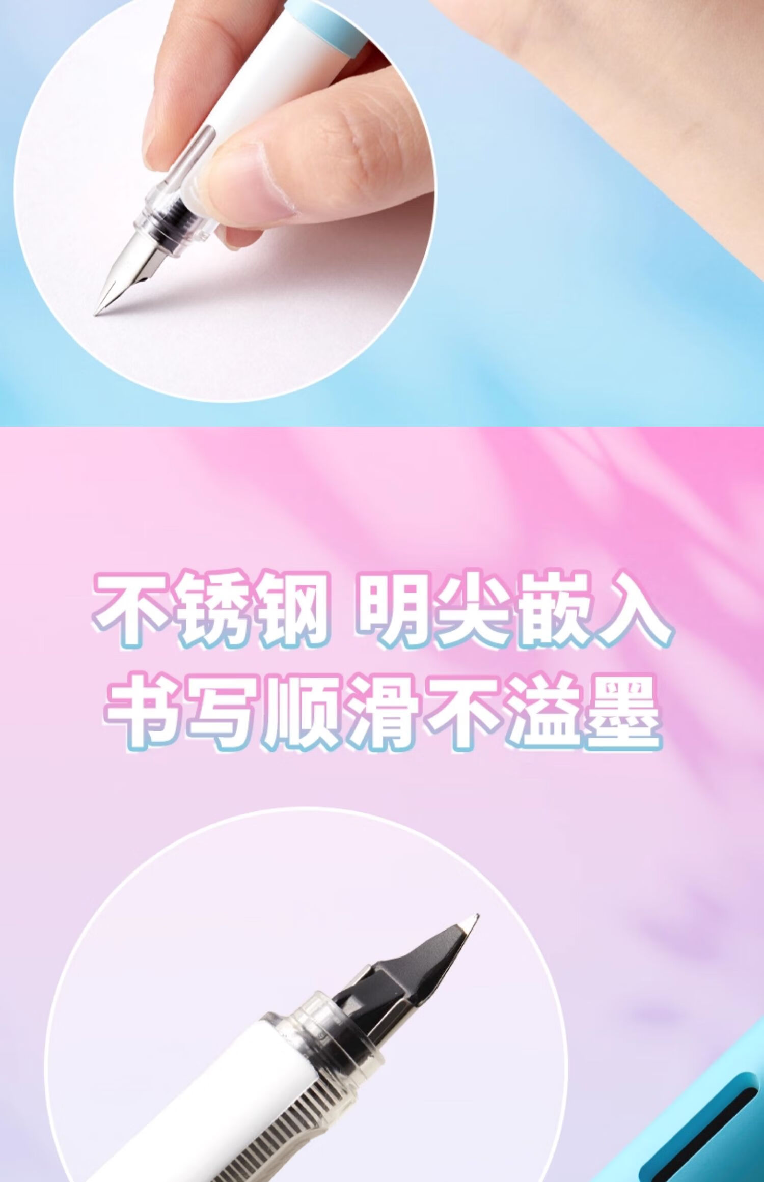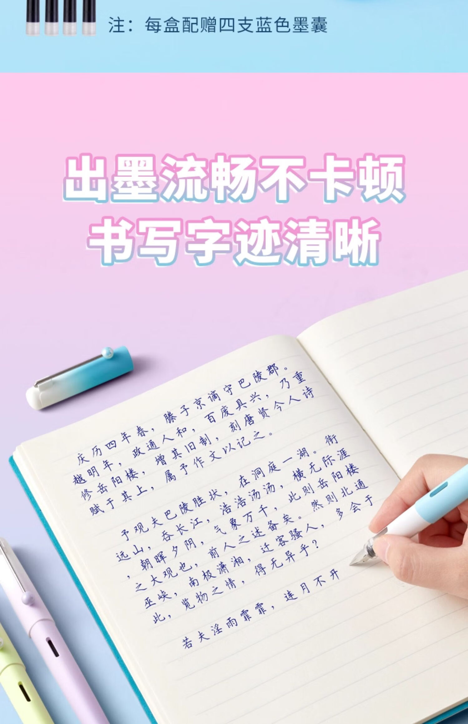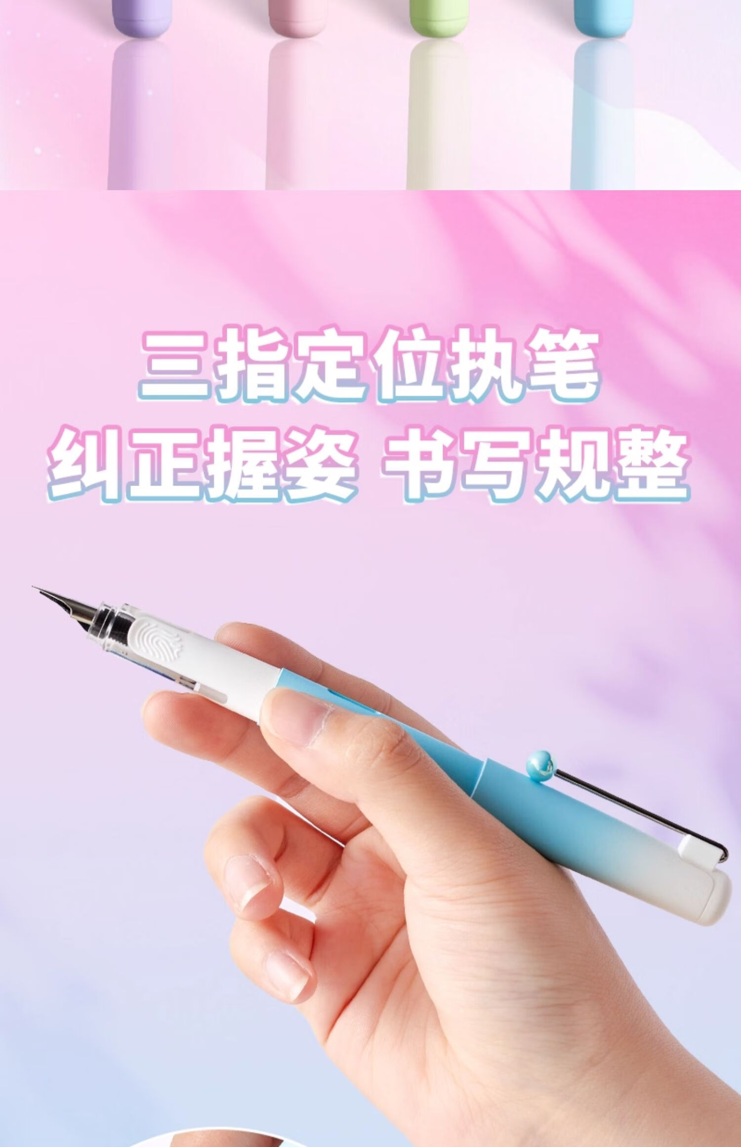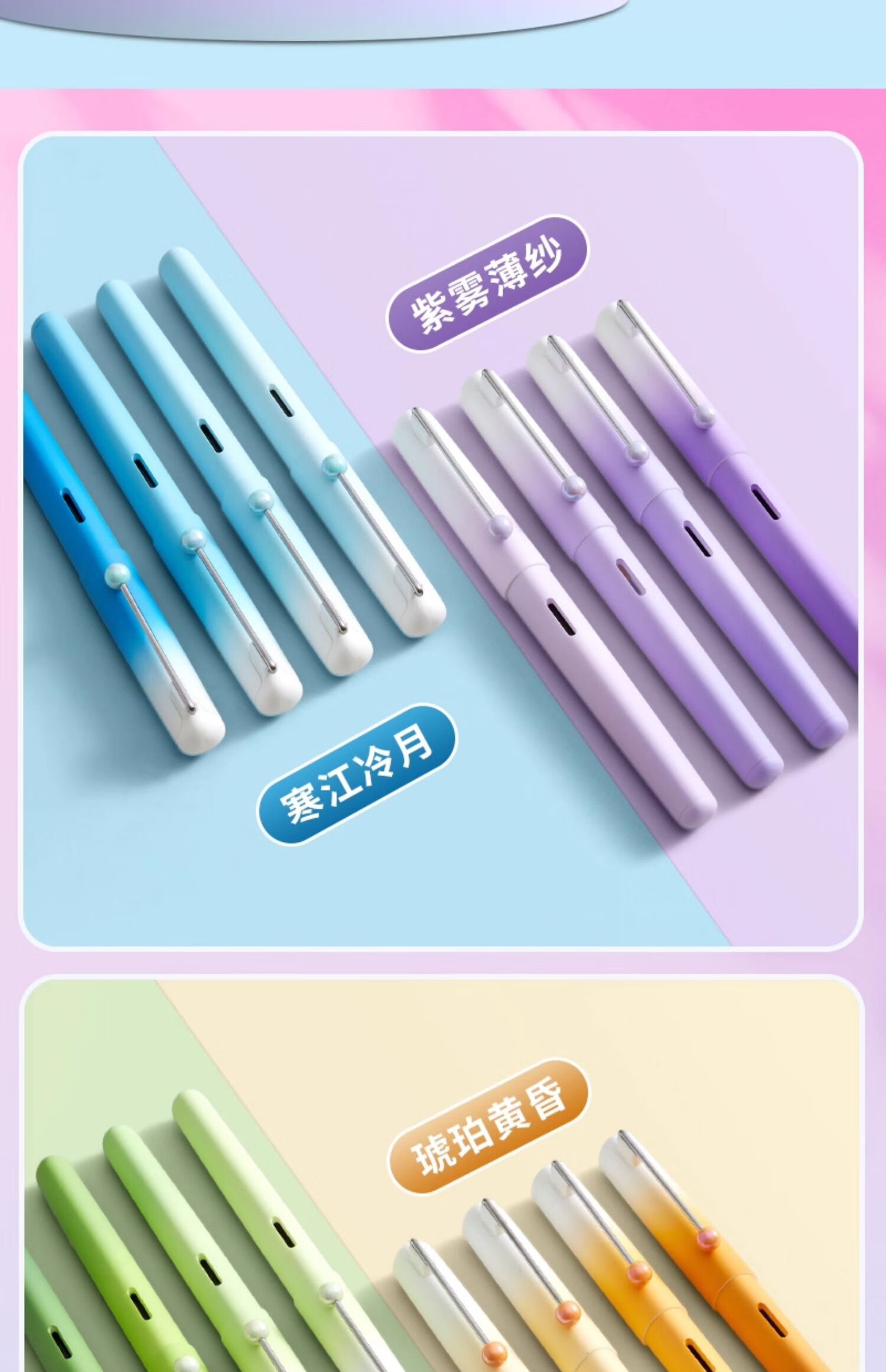 六品堂正姿钢笔钢笔小学生字帖练字专用可换墨囊渐变高颜值高档精致专用可换墨囊渐变高颜值高档精致 EF尖-三角优握钢笔-煦色韶光-粉